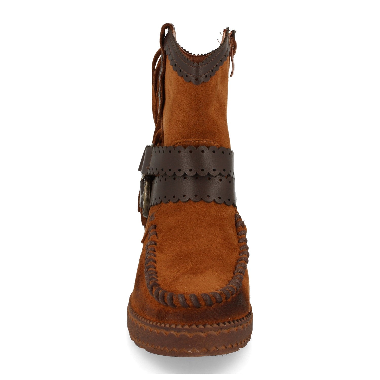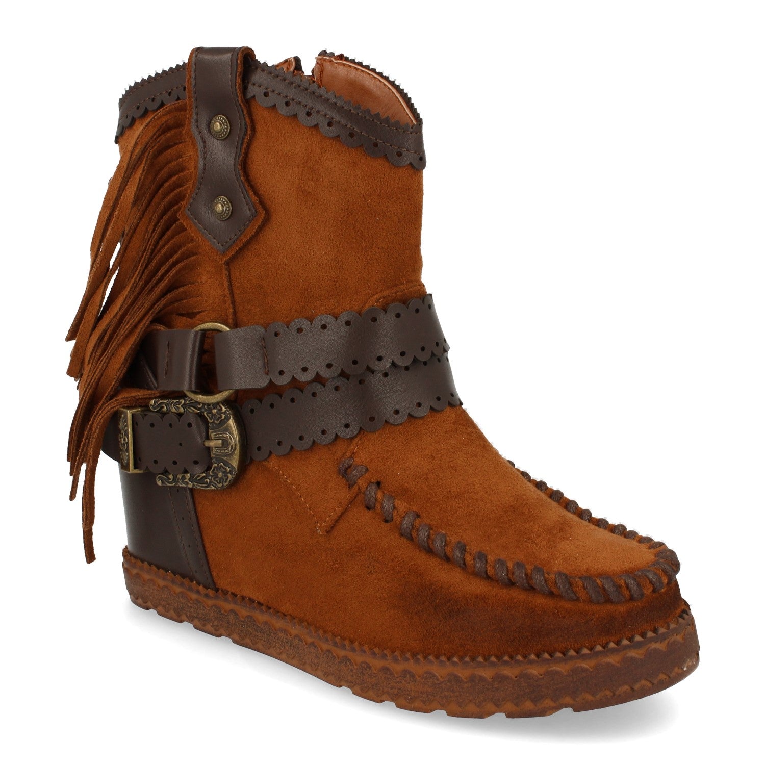 Bota de Estilo Indio Correas con Hebilla Flecos en Caña Cuña Interior Cierre de Cremallera Otoño Invierno 2020