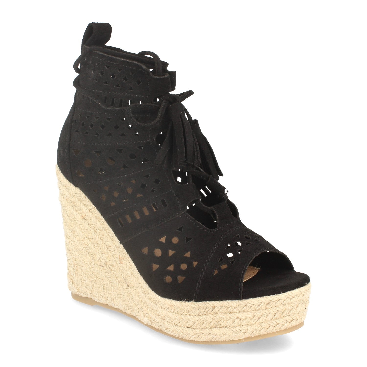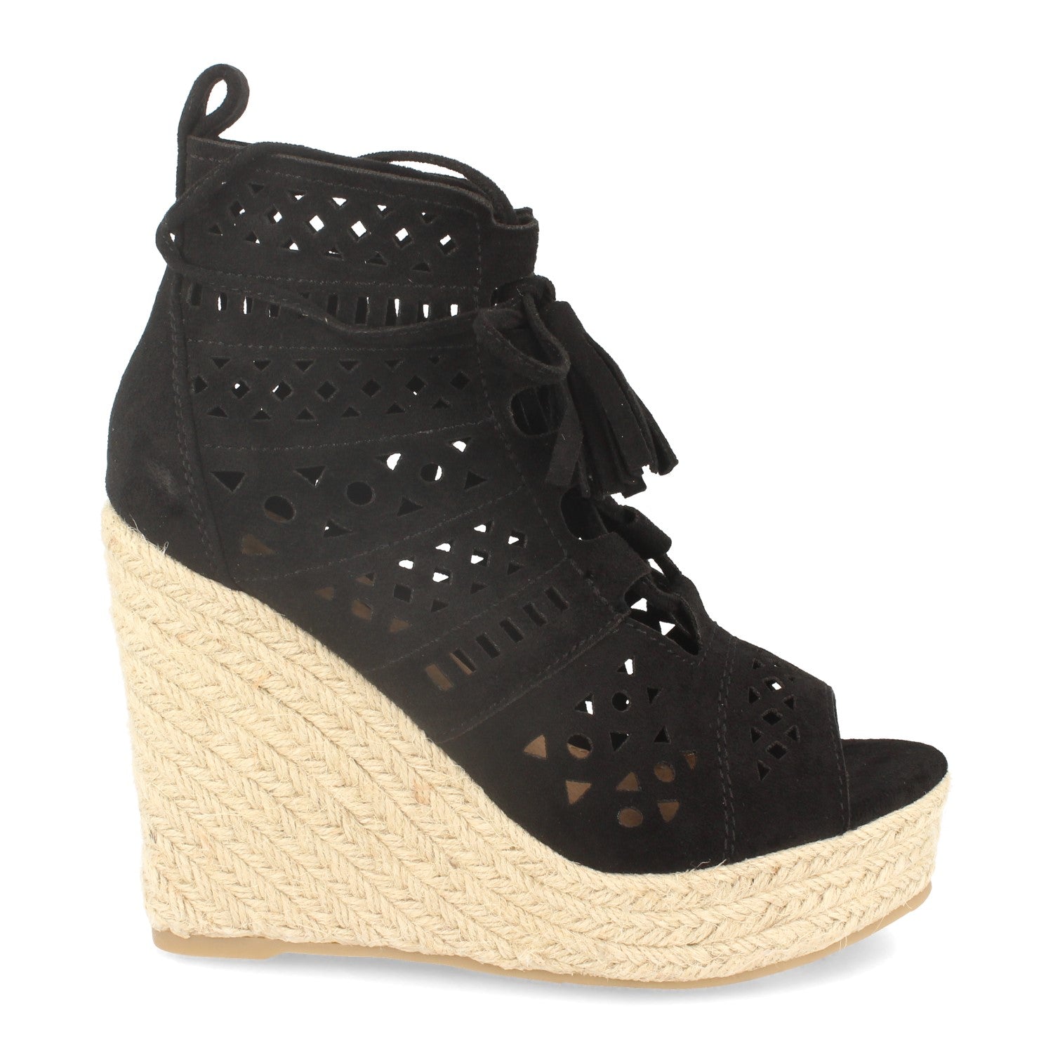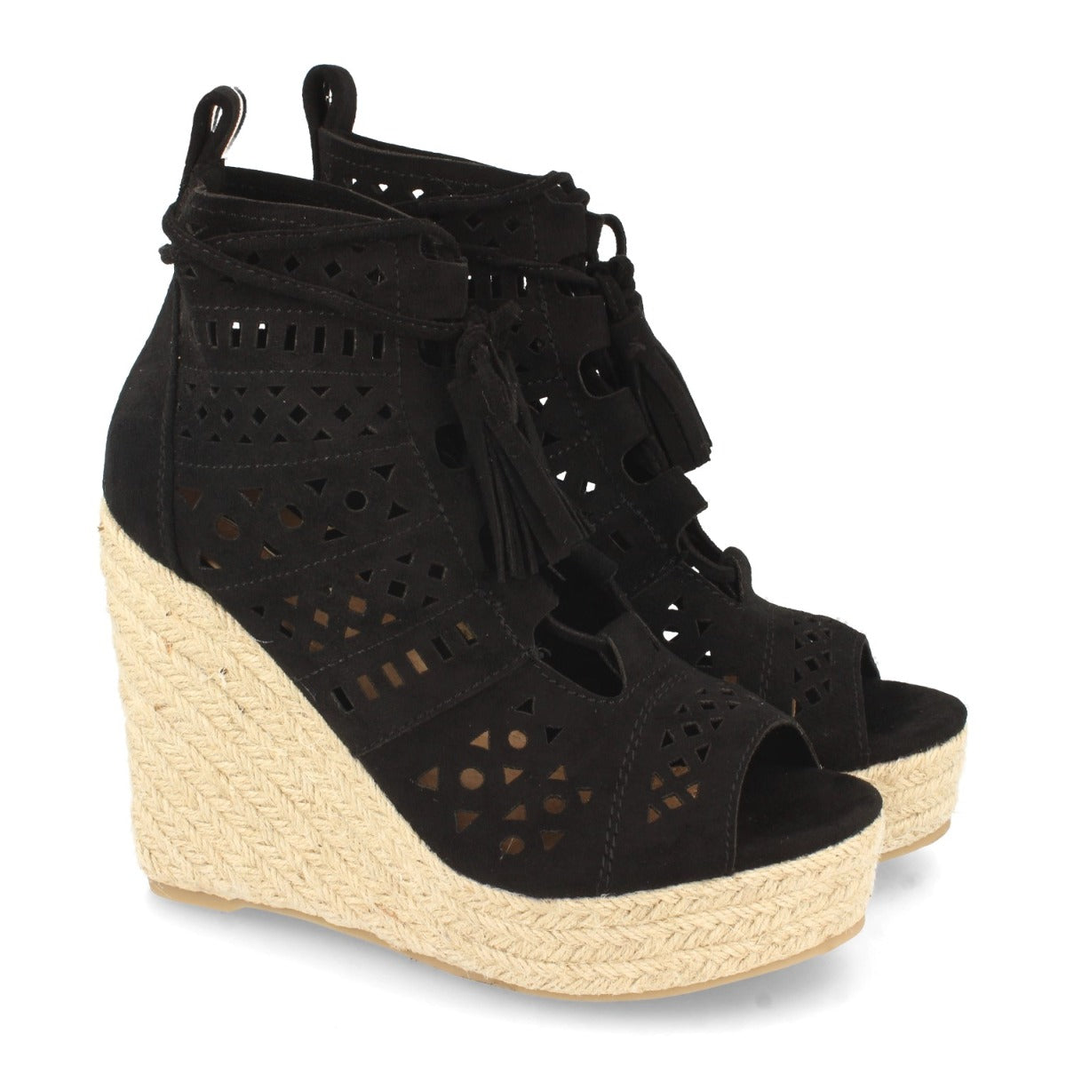 Sandalia de Cuña con Yute Calados Cierre de Cordones con Borlas Primavera Verano 2020