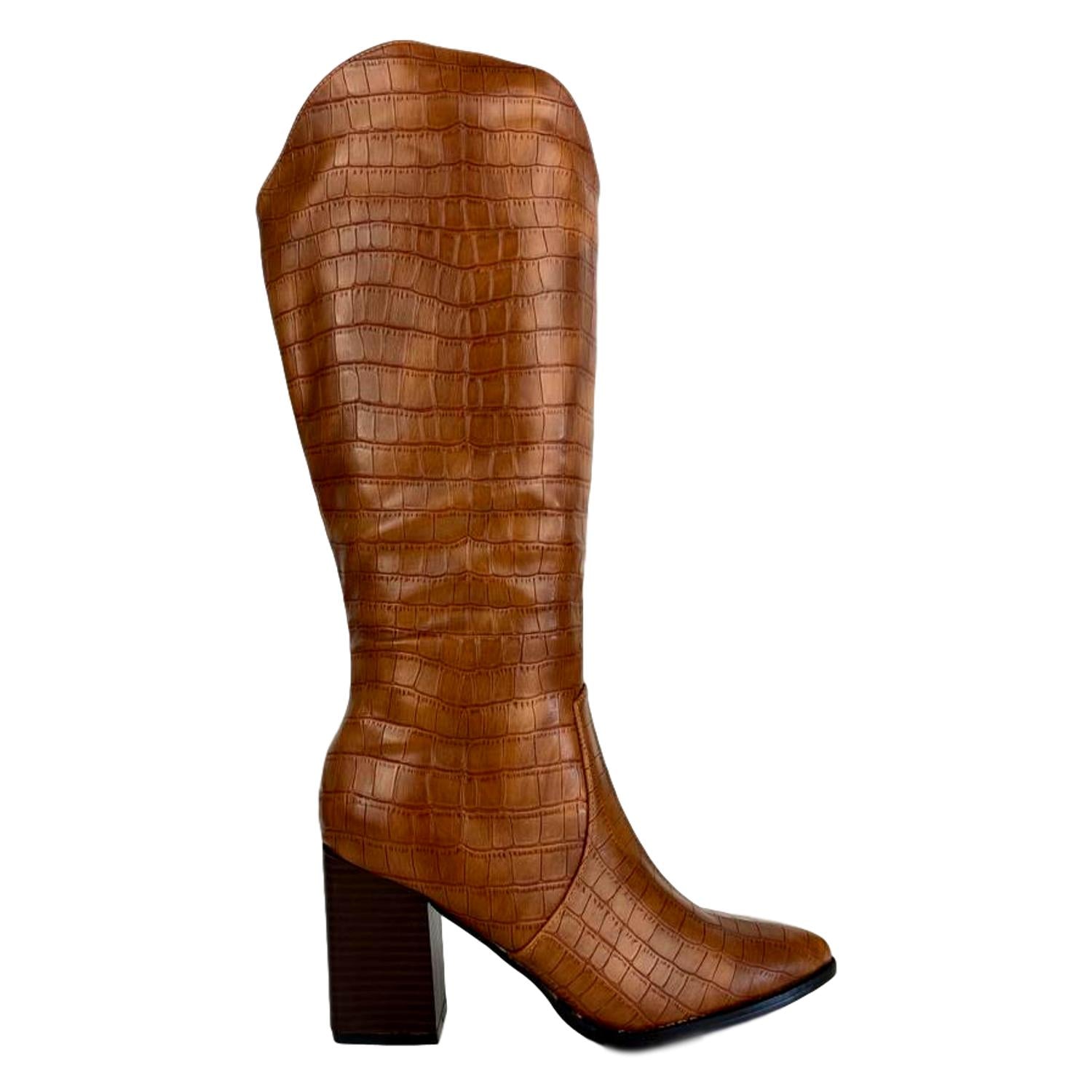 Bota Alta de Tacón Comodas con Estampado de Cocodrilo de Punta Fina y Cierre de Cremallera Otoño Invierno 2020