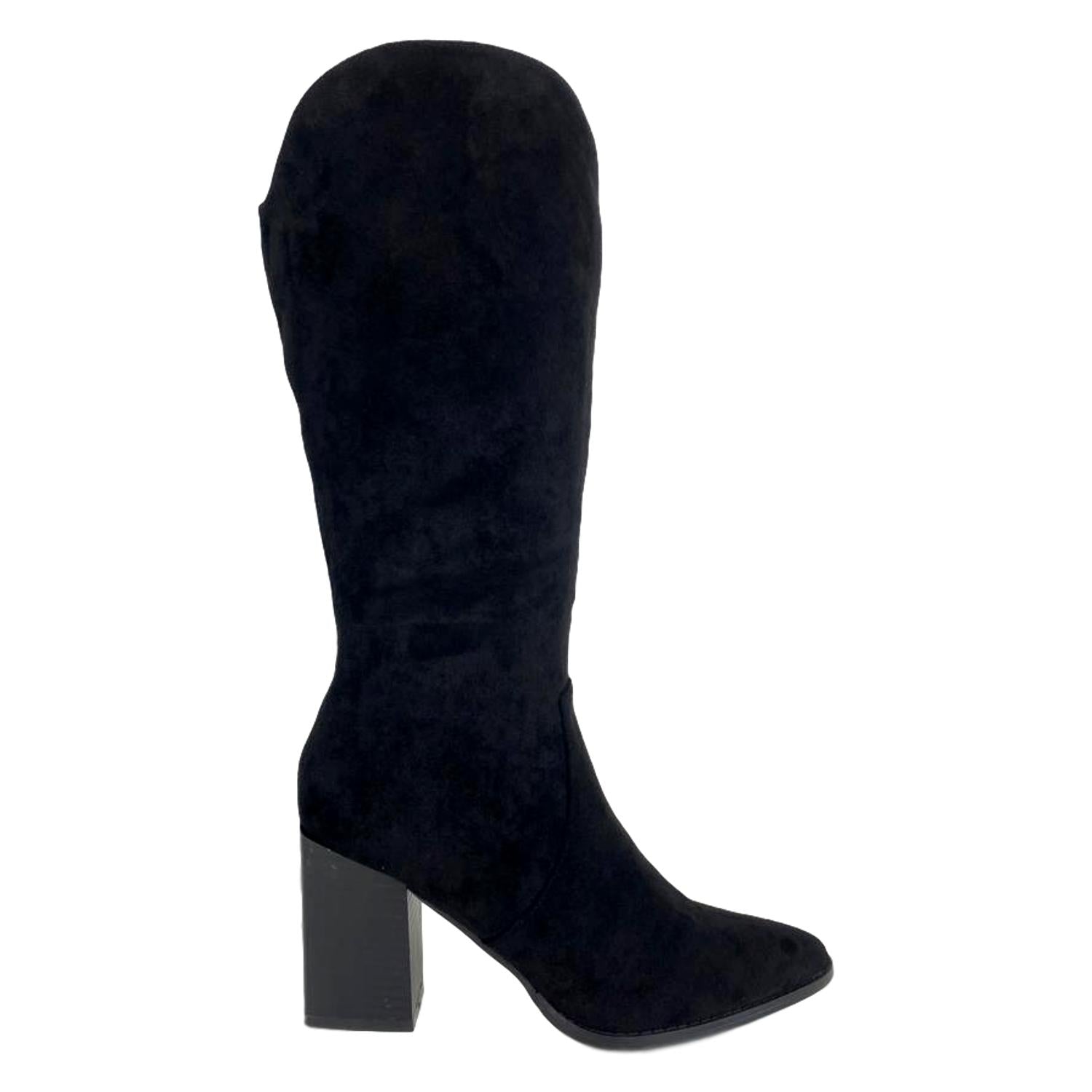 Bota Alta de Tacón Comodas con Estampado Liso de Punta Fina y Cierre de Cremallera Otoño Invierno 2020