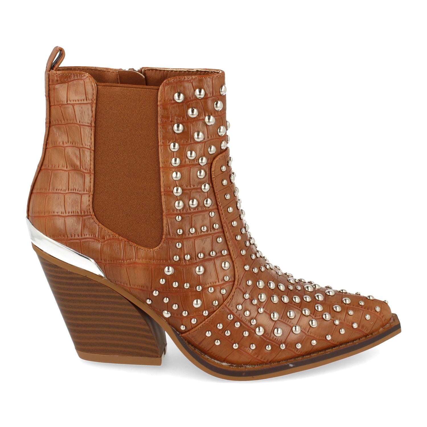 Botín de Tacón para Mujer Adornado con Tachuelas Detalle Metalico en Talón Elástico en el Tobillo y Cierre de Cremallera Otoño Invierno 2020