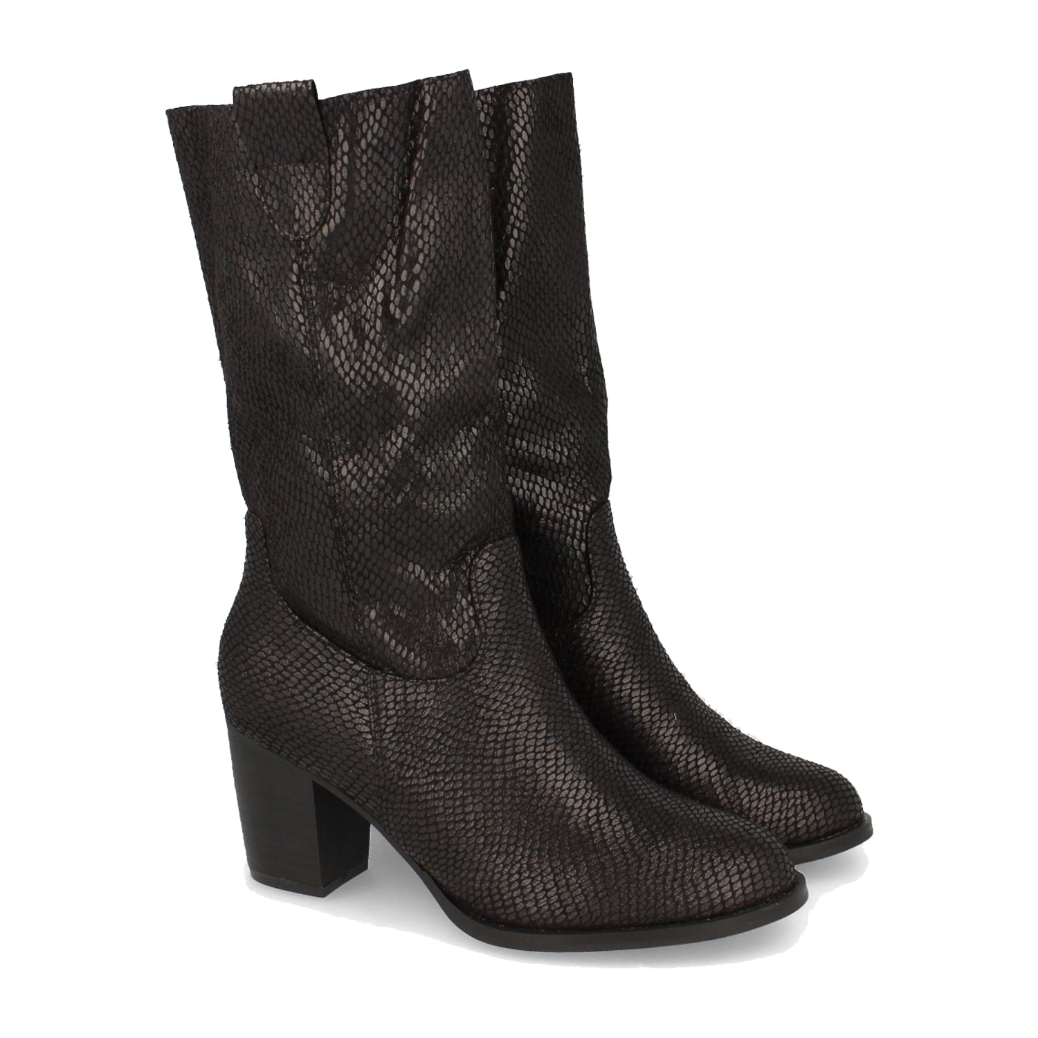 Bota de Mujer con Tacón Estampado de Serpientem y Cierre de Cremallera Otoño Invierno 2020