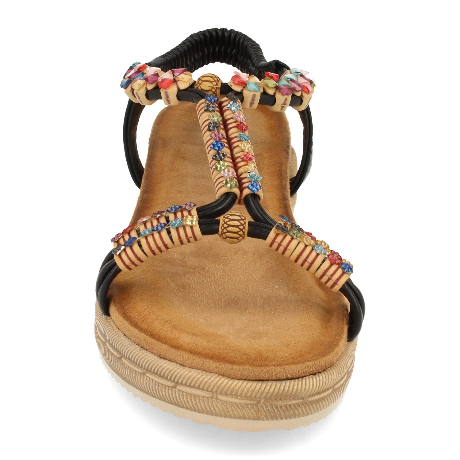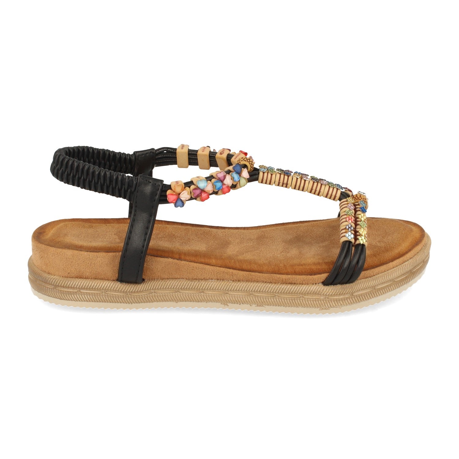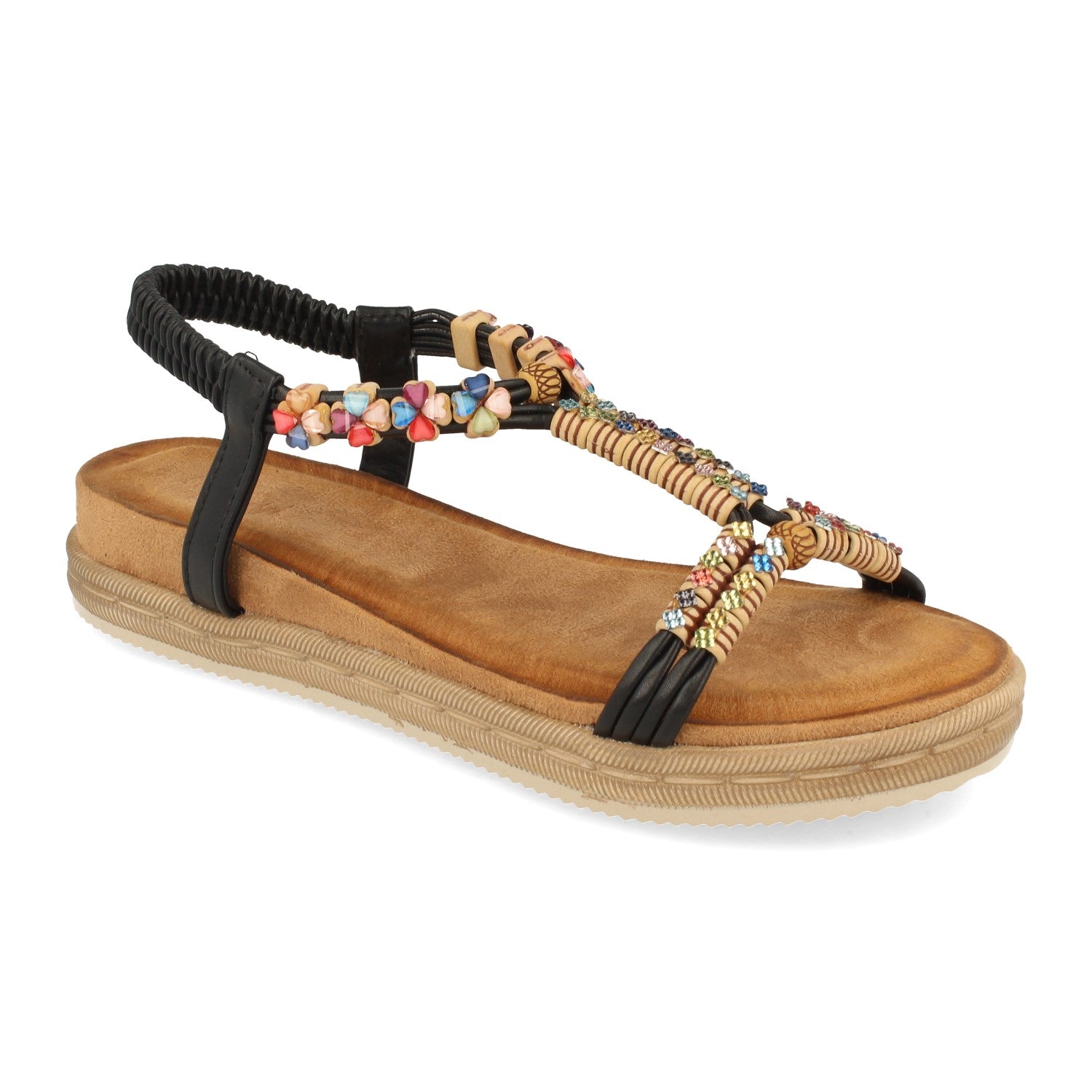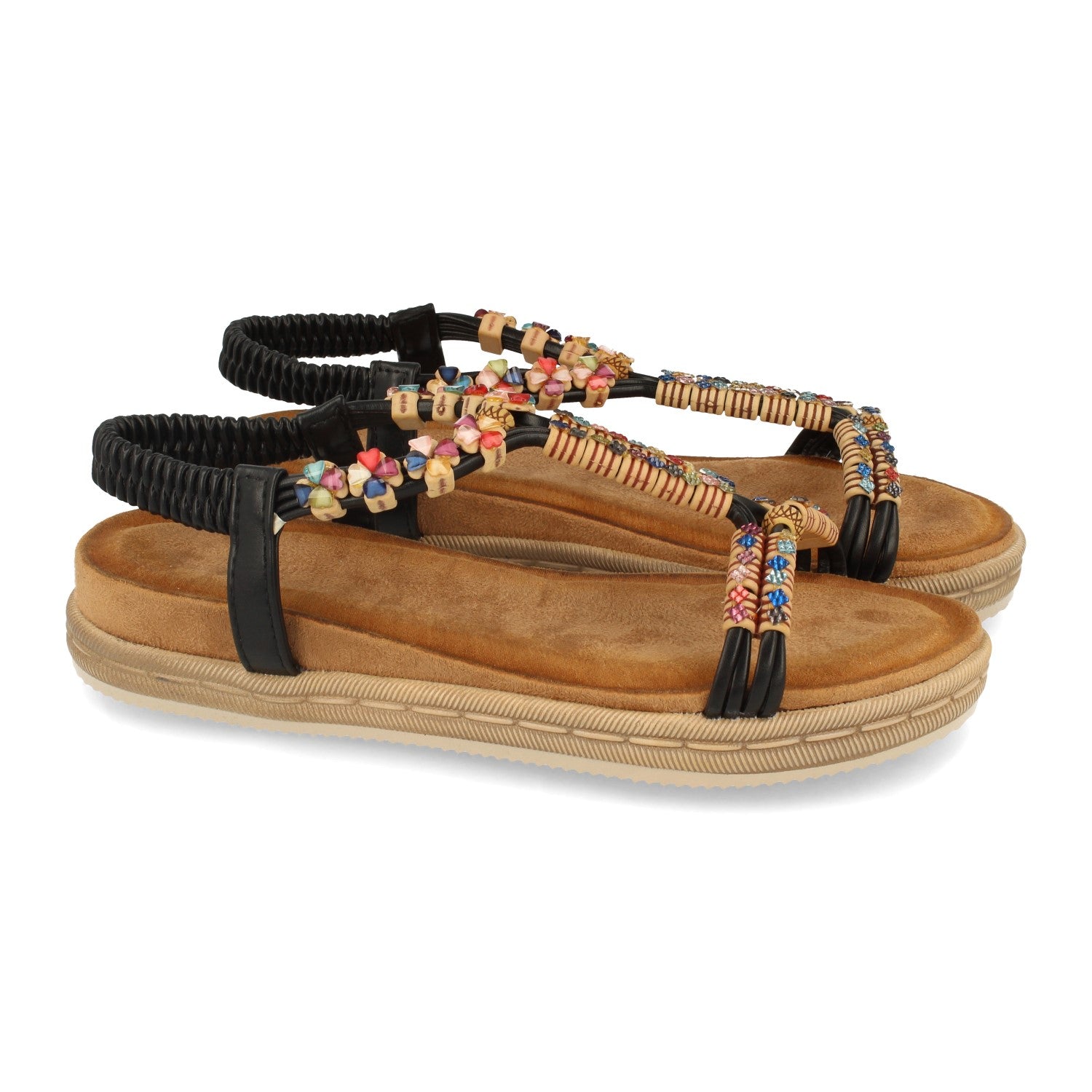 Sandalia Plana para Mujer con Adornos de Colores en Pala Cierre de Ajuste en Talon Primavera Verano 2021