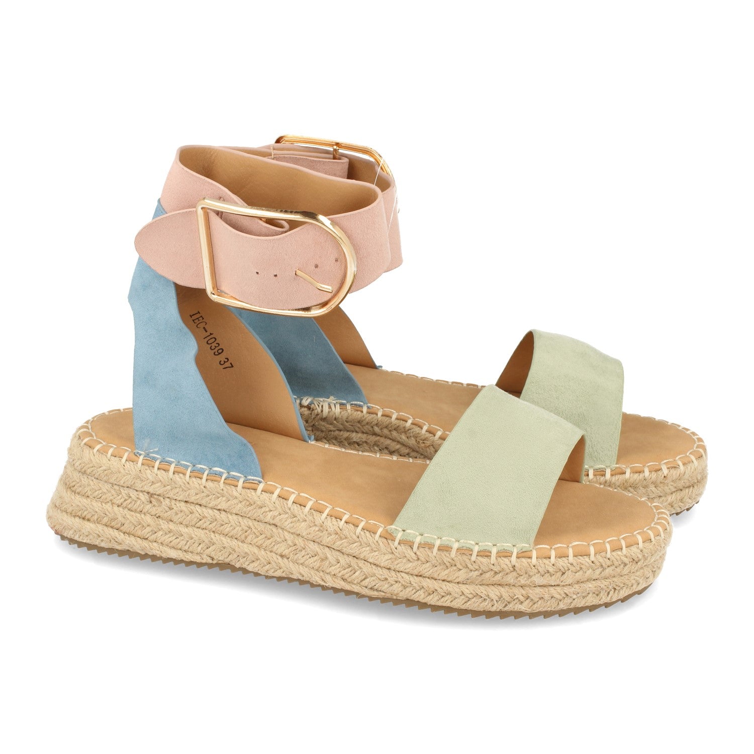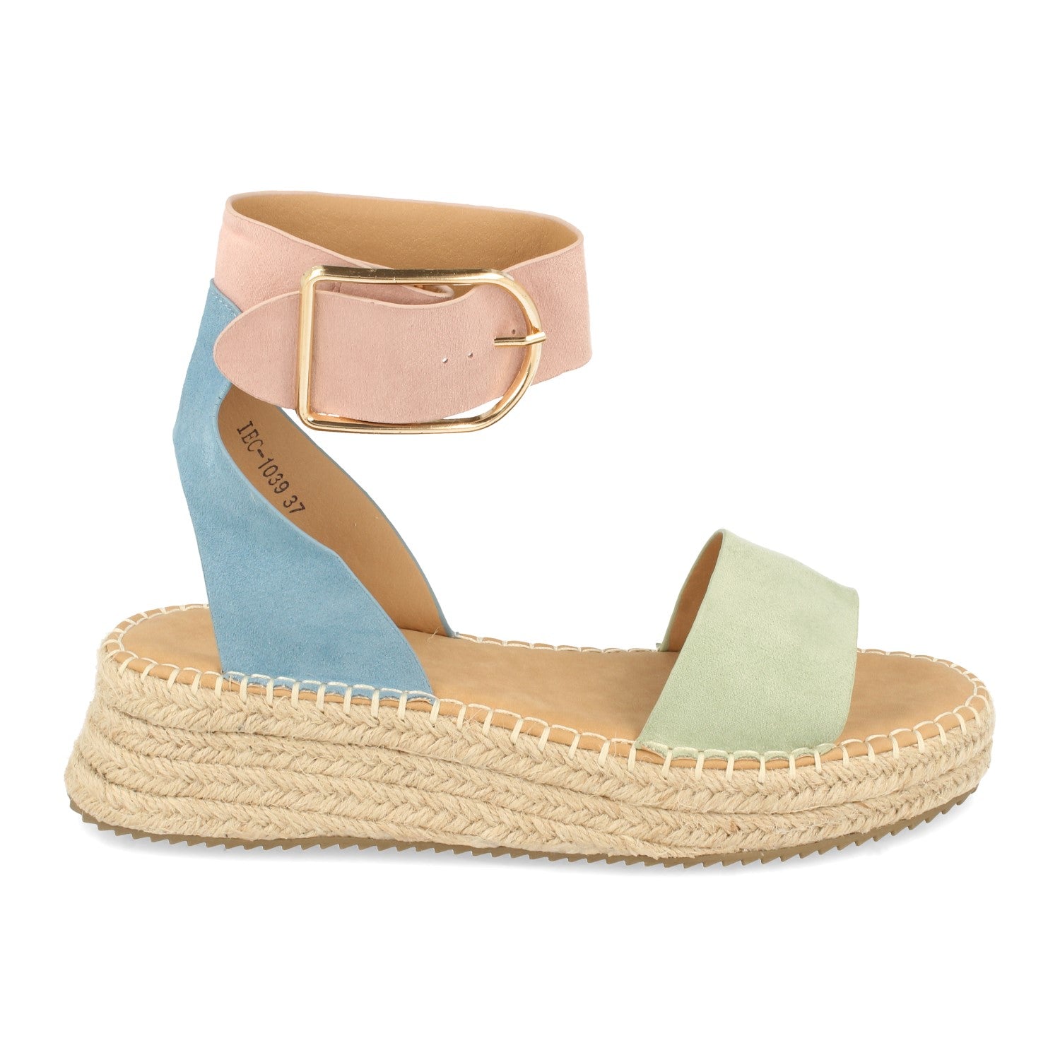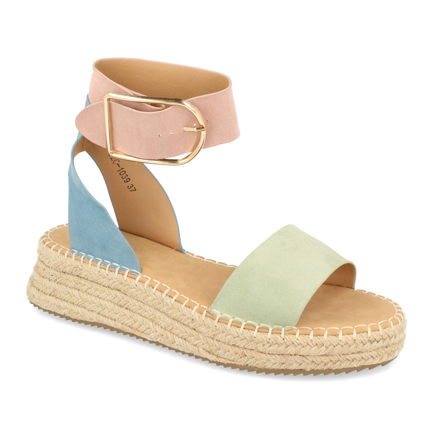 Sandalia Plana para Mujer con Yute Pala Fina Talon Abierto y Cierre de Hebilla en el Tobillo Primavera Verano 2021