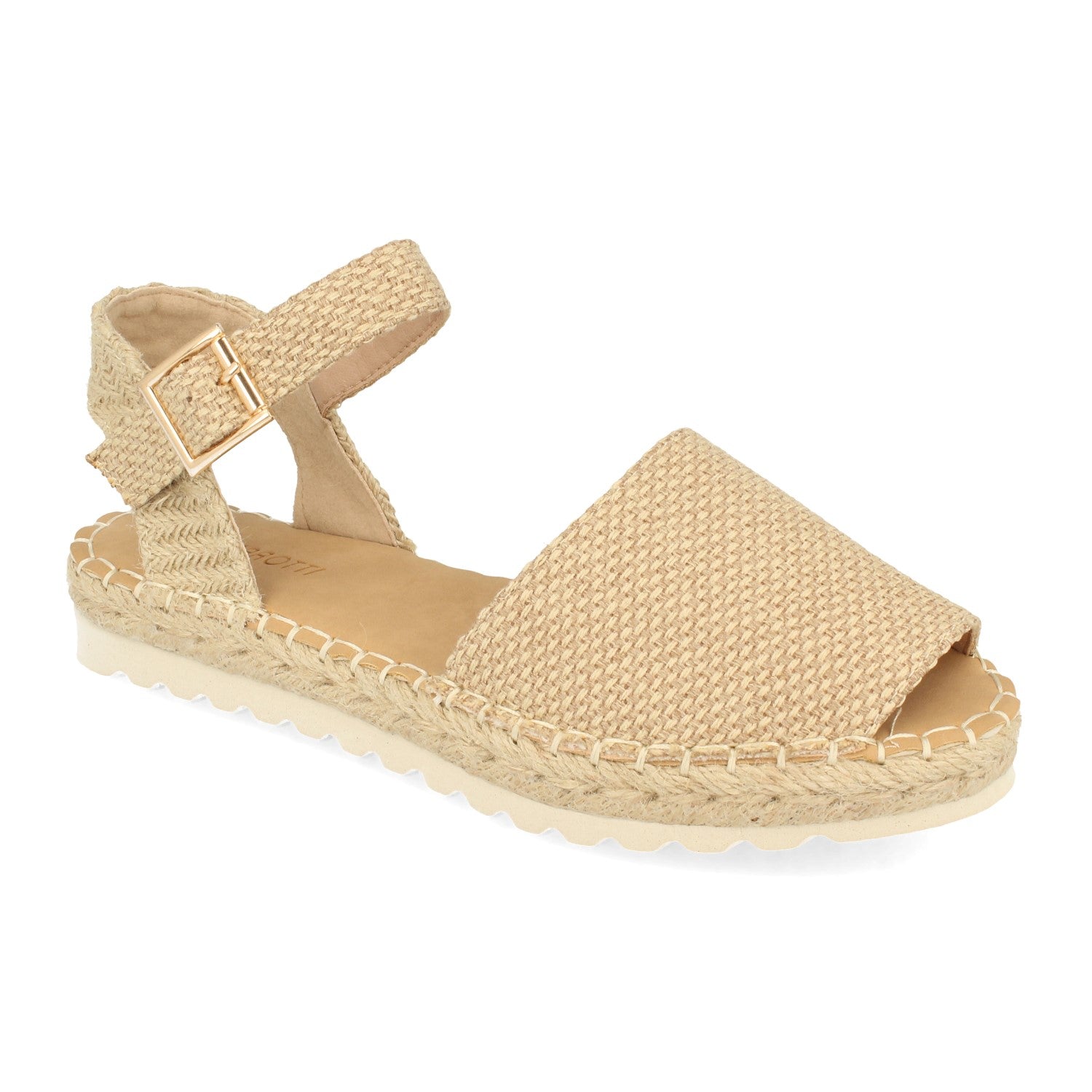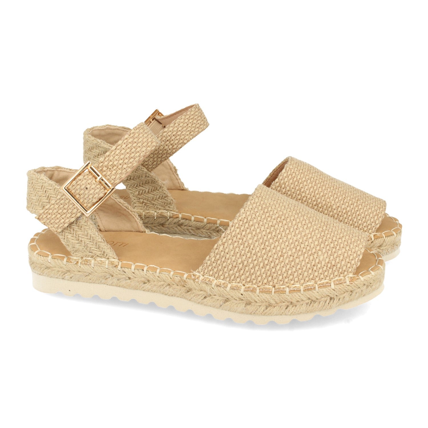 Sandalia Plana para Mujer con Yute Pala de Rafia y Cierre de Hebilla Primavera Verano 2021