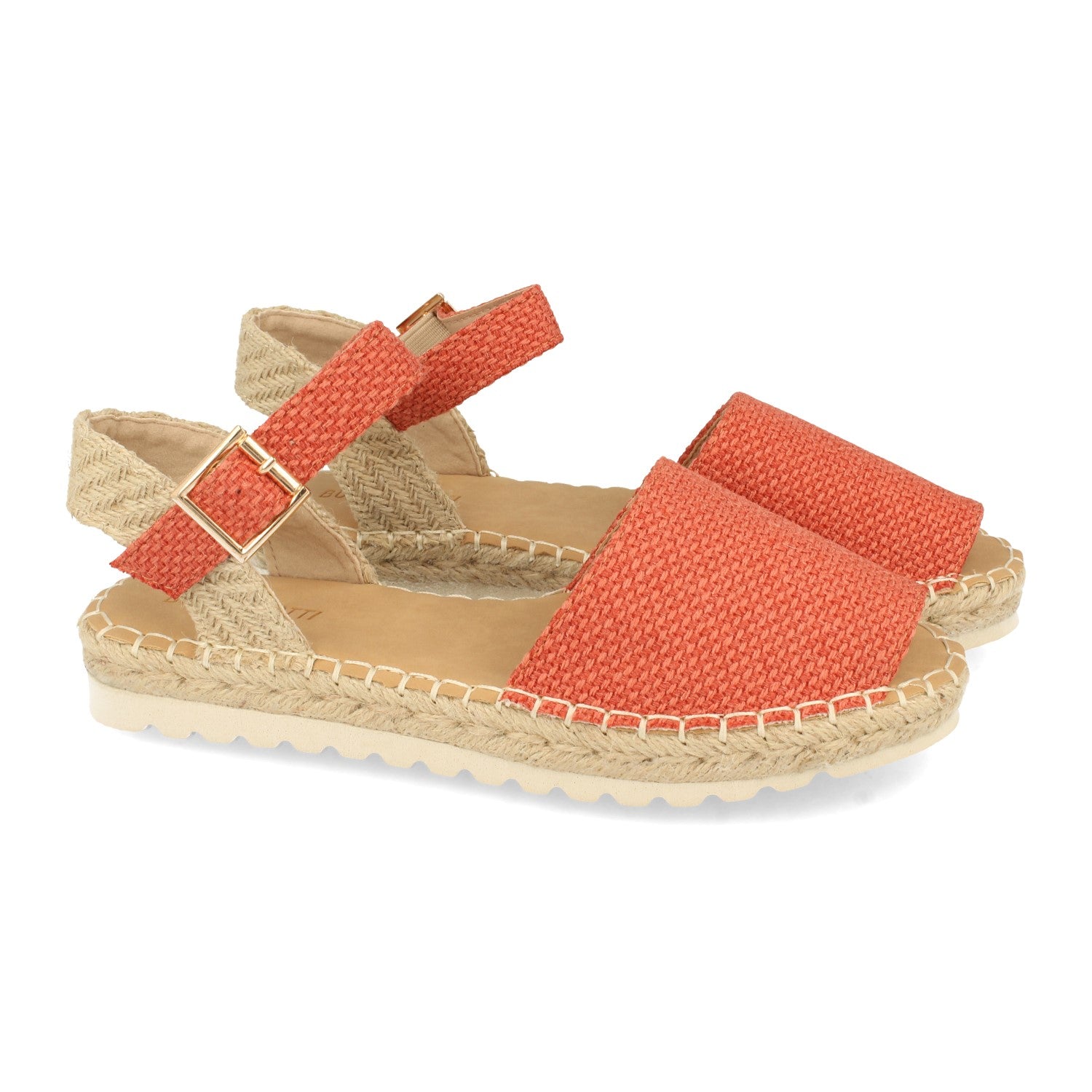 Sandalia Plana para Mujer con Yute Pala de Rafia y Cierre de Hebilla Primavera Verano 2021