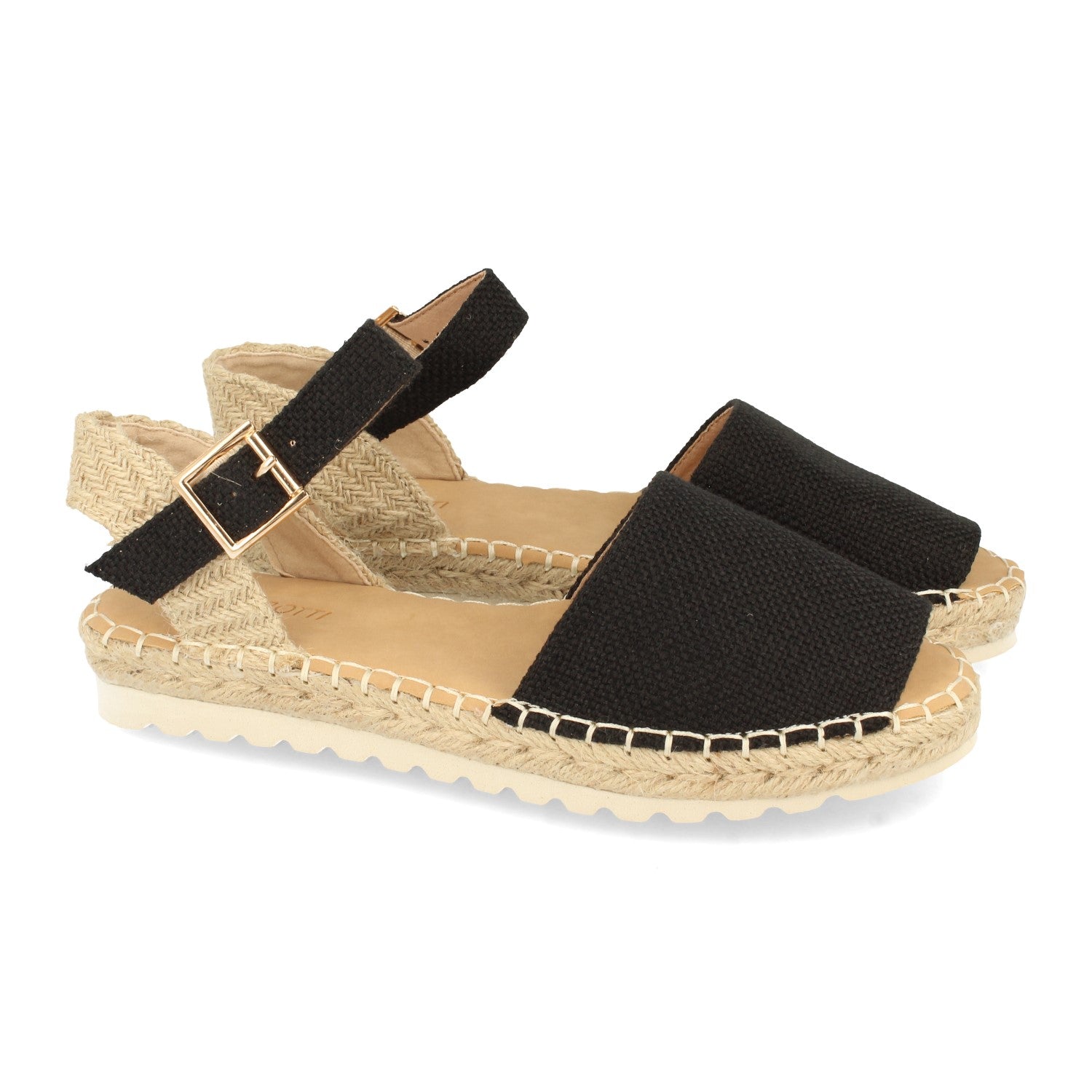 Sandalia Plana para Mujer con Yute Pala de Rafia y Cierre de Hebilla Primavera Verano 2021