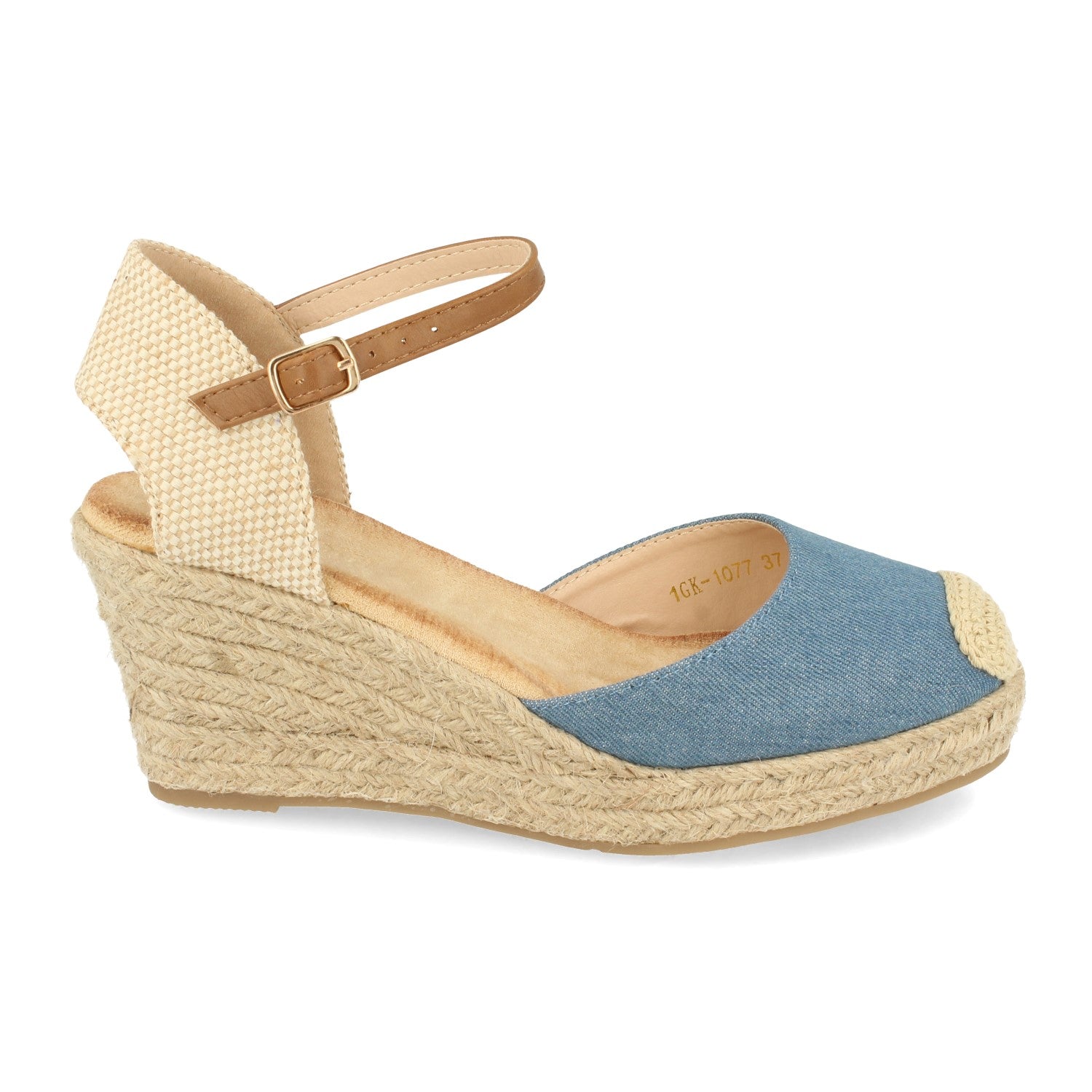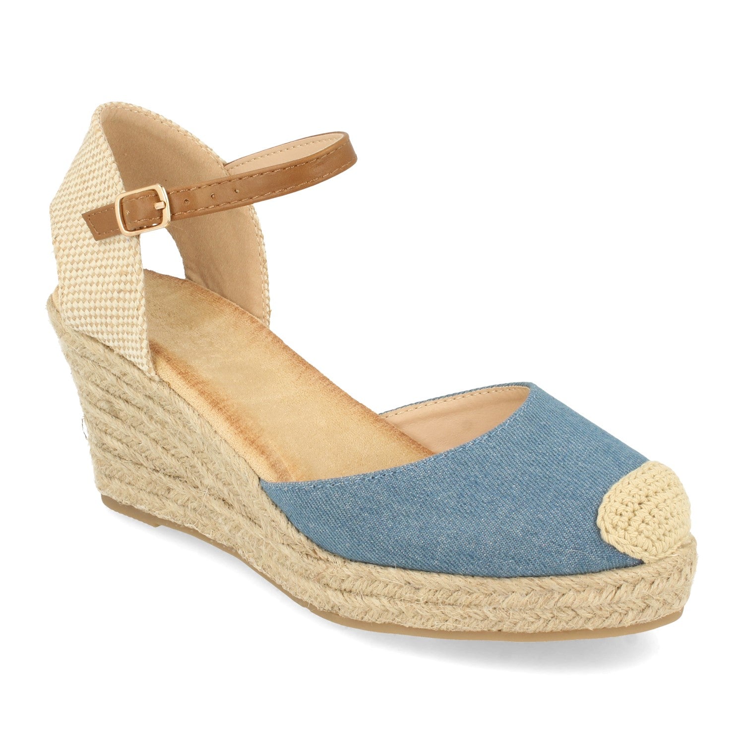 Sandalia de Cuña con Yute Estilo Valenciana Pala Cerrada Talon de Rafia y Cierre de Hebilla en el Tobillo Primavera Verano 2021