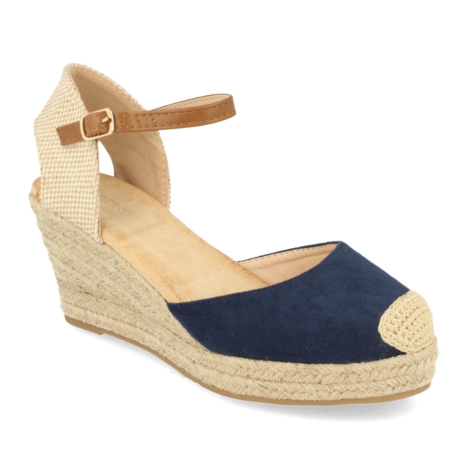 Sandalia de Cuña con Yute Estilo Valenciana Pala Cerrada Talon de Rafia y Cierre de Hebilla en el Tobillo Primavera Verano 2021