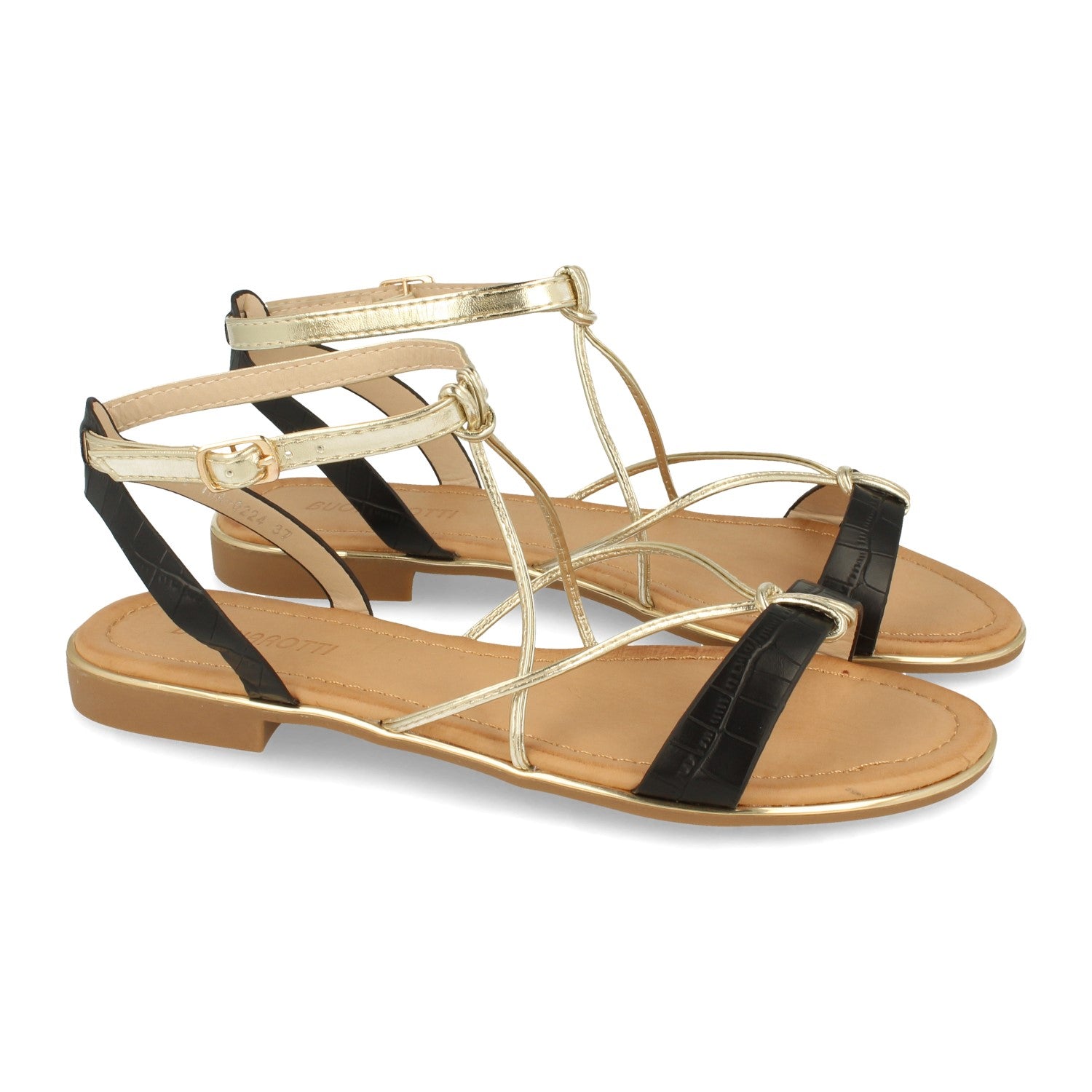 Sandalia Plana para Mujer con Estampado de Cocodrilo Sujeción de Tiras con Cierre de Hebilla Primavera Verano 2021