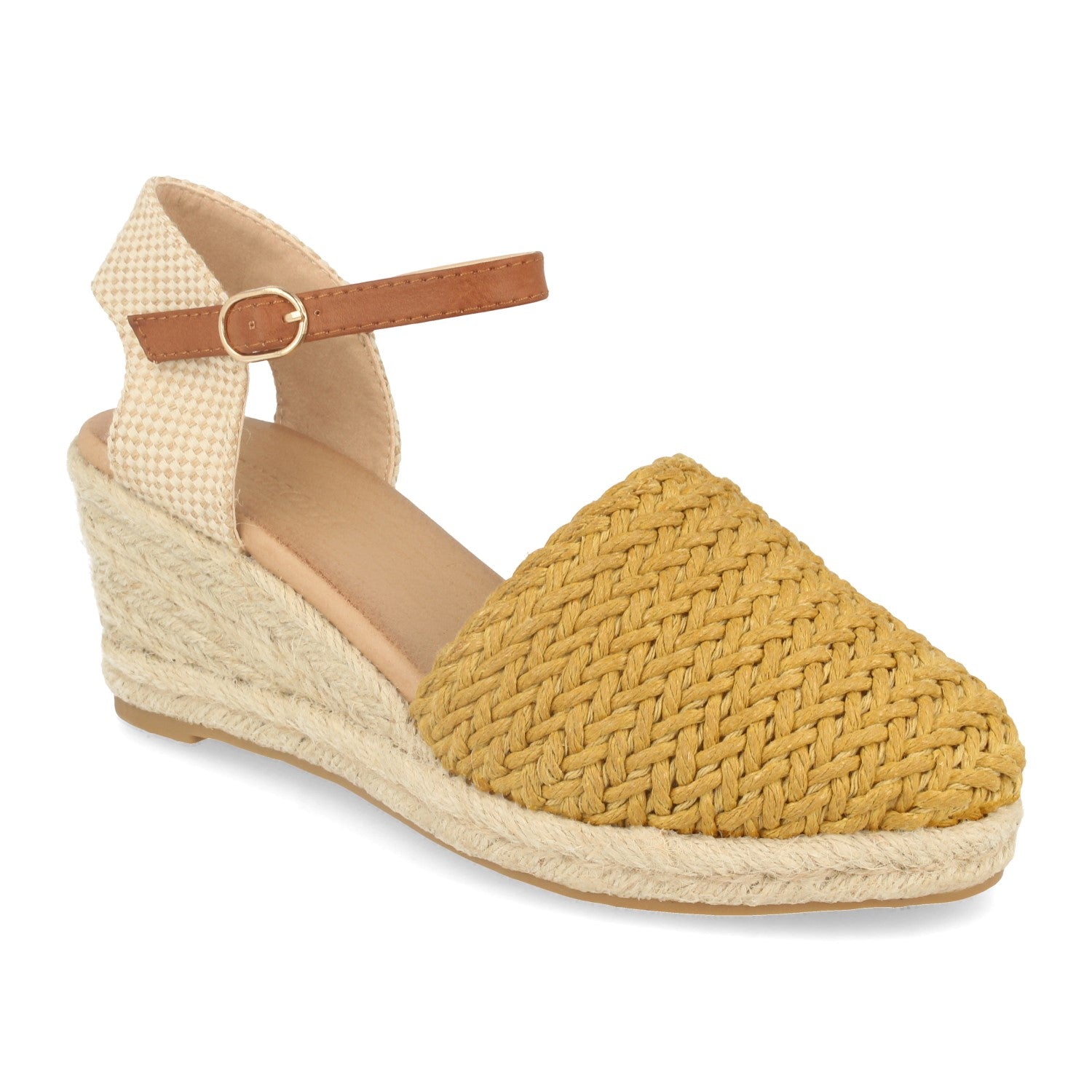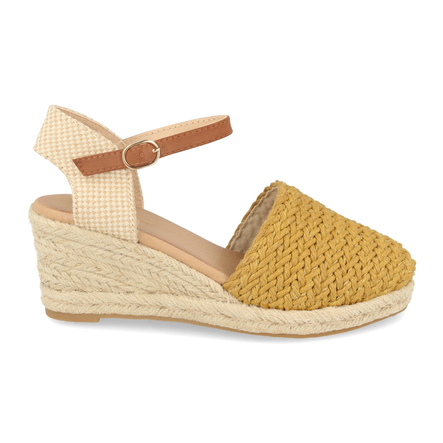 Sandalia para Mujer con Cuña de Yute Pala Cerrada de Rafia Talon Abierto y Cierre de Hebilla Primavera Verano 2020