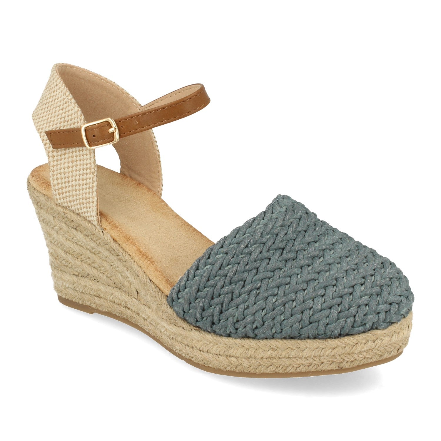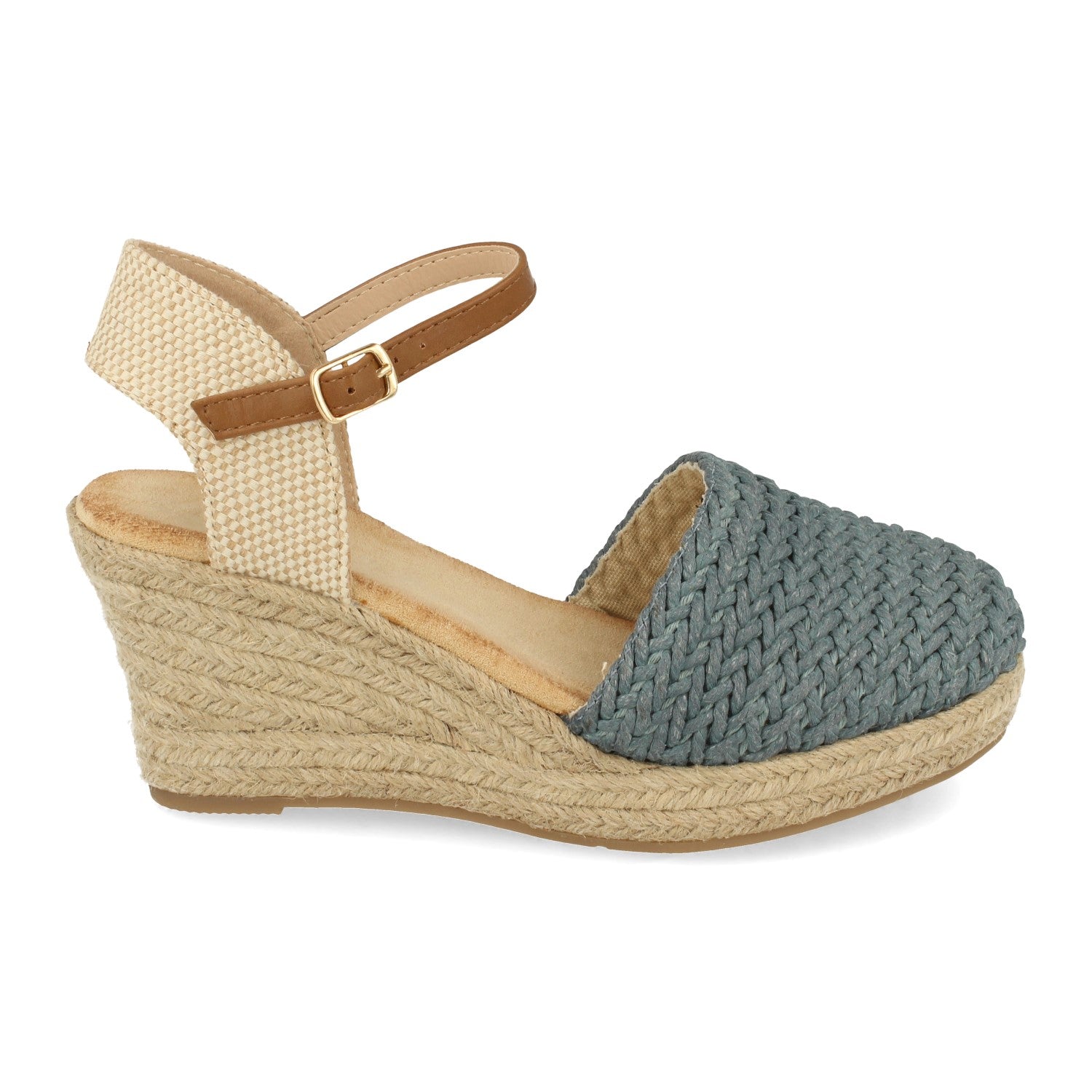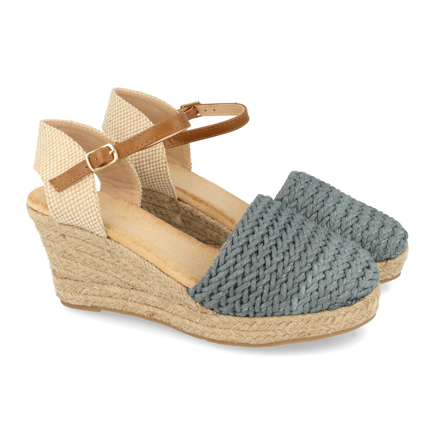 Sandalia para Mujer con Cuña de Yute Pala Cerrada de Rafia Talon Abierto y Cierre de Hebilla Primavera Verano 2021