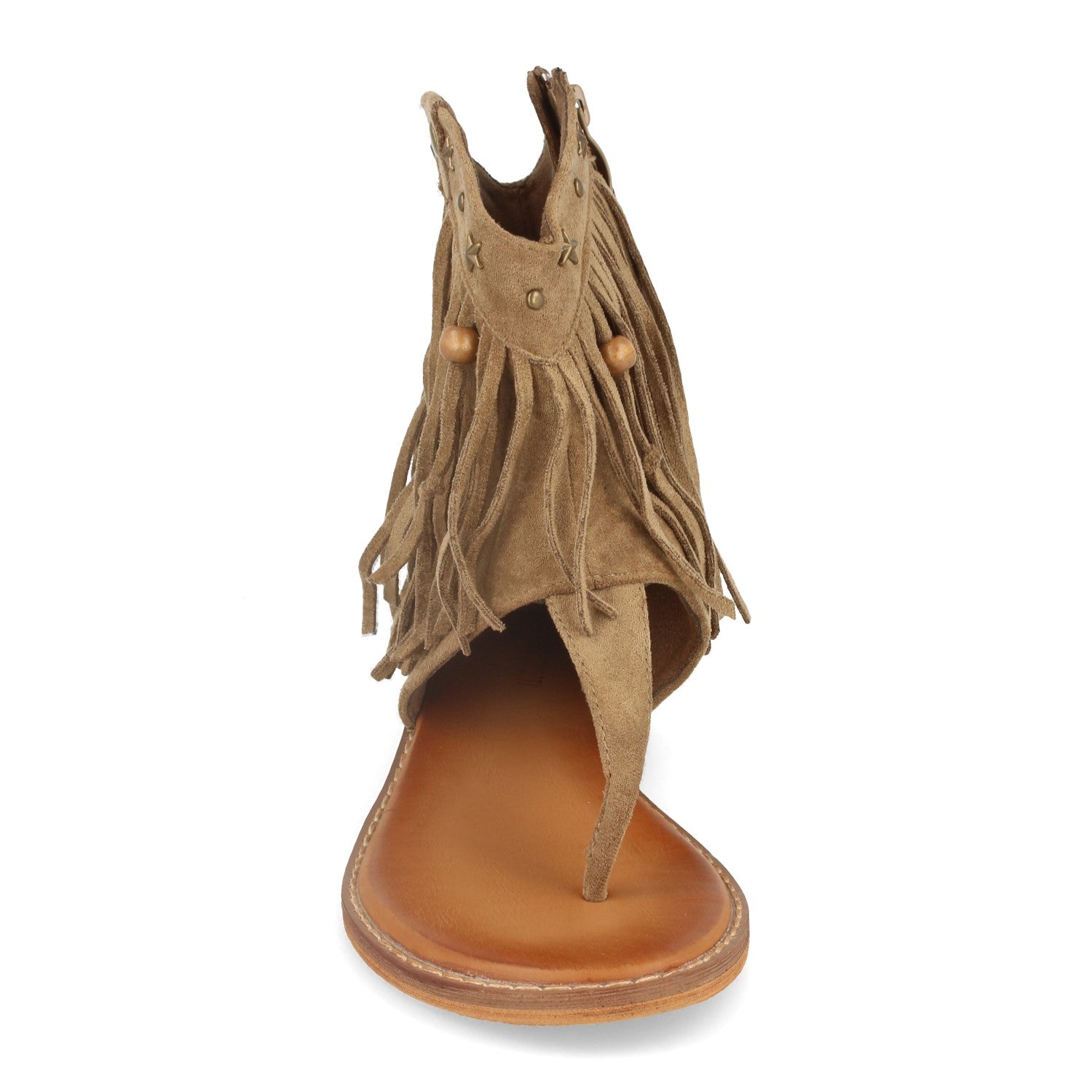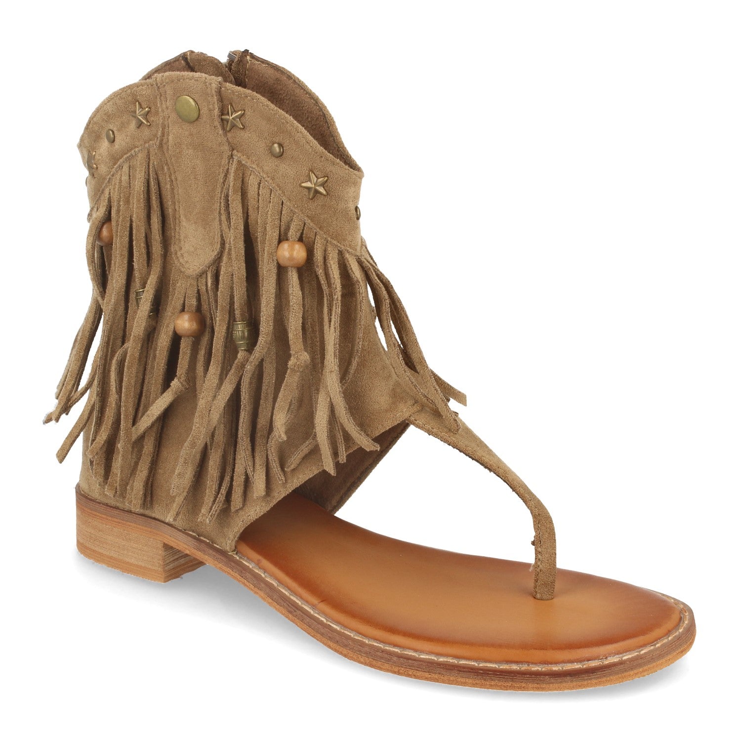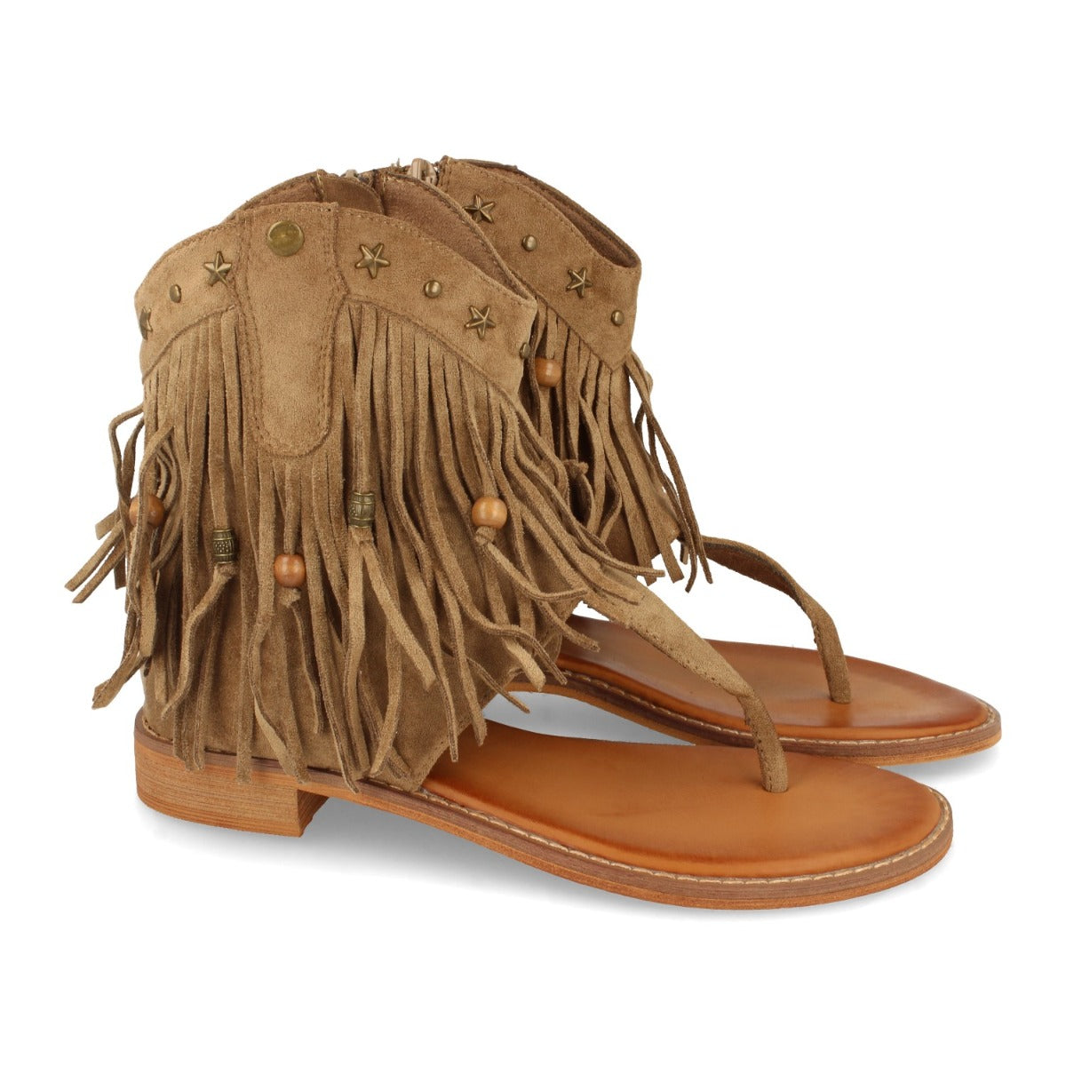 Sandalia de Esclava con Suela Plana Flecos Detalles Metalicos y Cierre de Cremallera Primavera Verano 2020