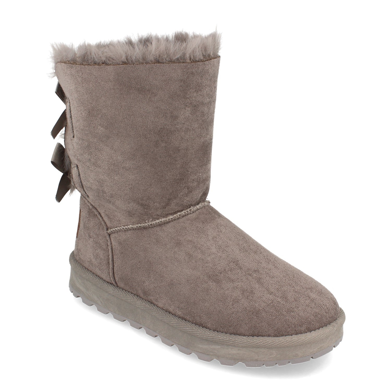 Botín Plano para Mujer Estilo Australiano Forrado de Pelo de Punta Redonda y con Lazos en el Contrafuerte como Detalle Otoño Invierno 2020