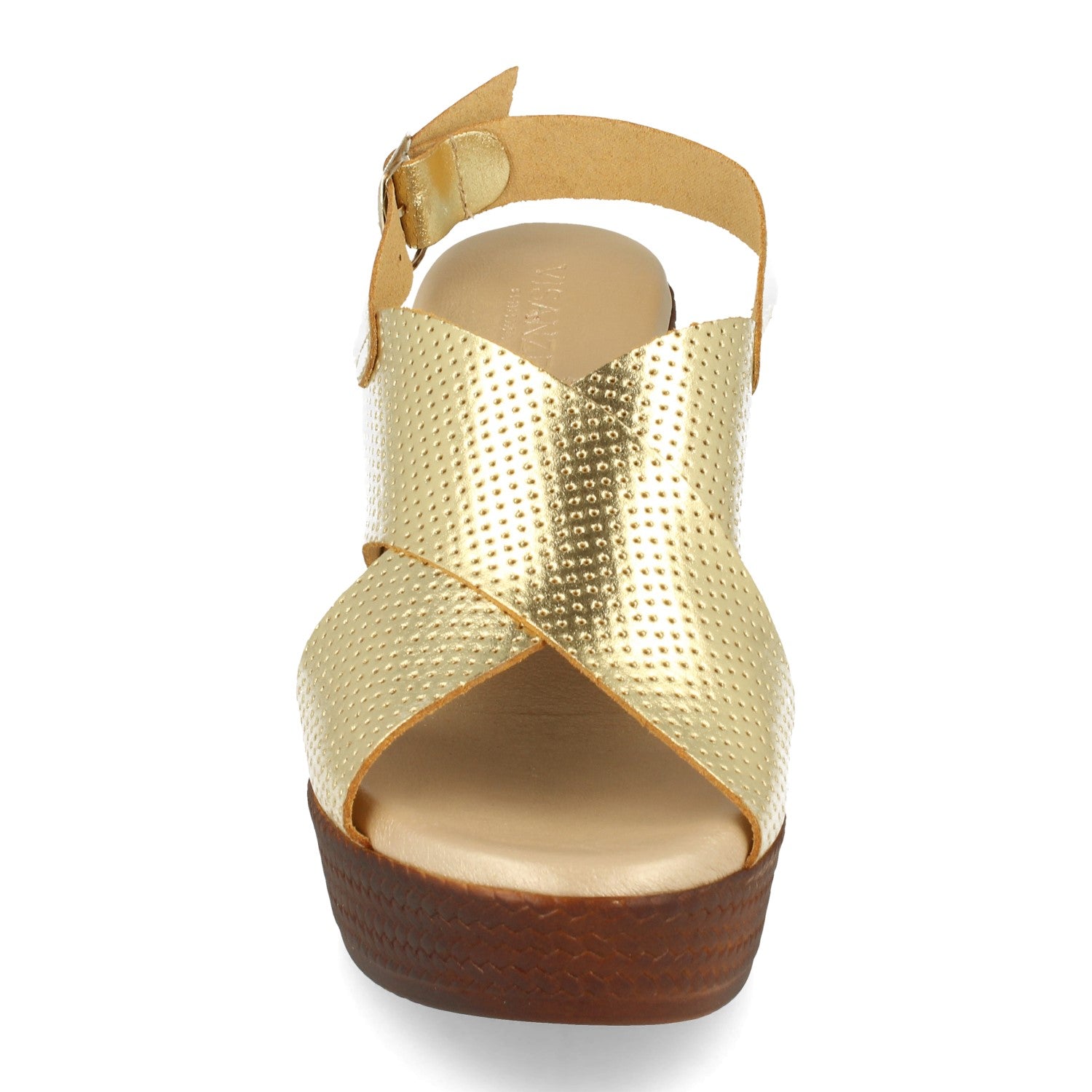 Sandalia para Mujer de Cuña Palas Cruzadas con Calados y Cierre de Hebilla Fabricado con Piel Primavera Verano 2021