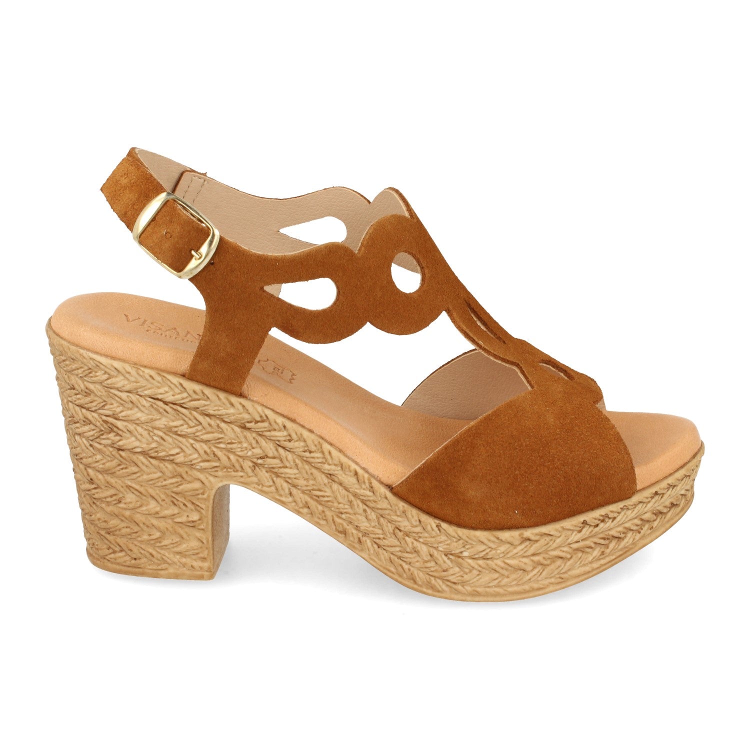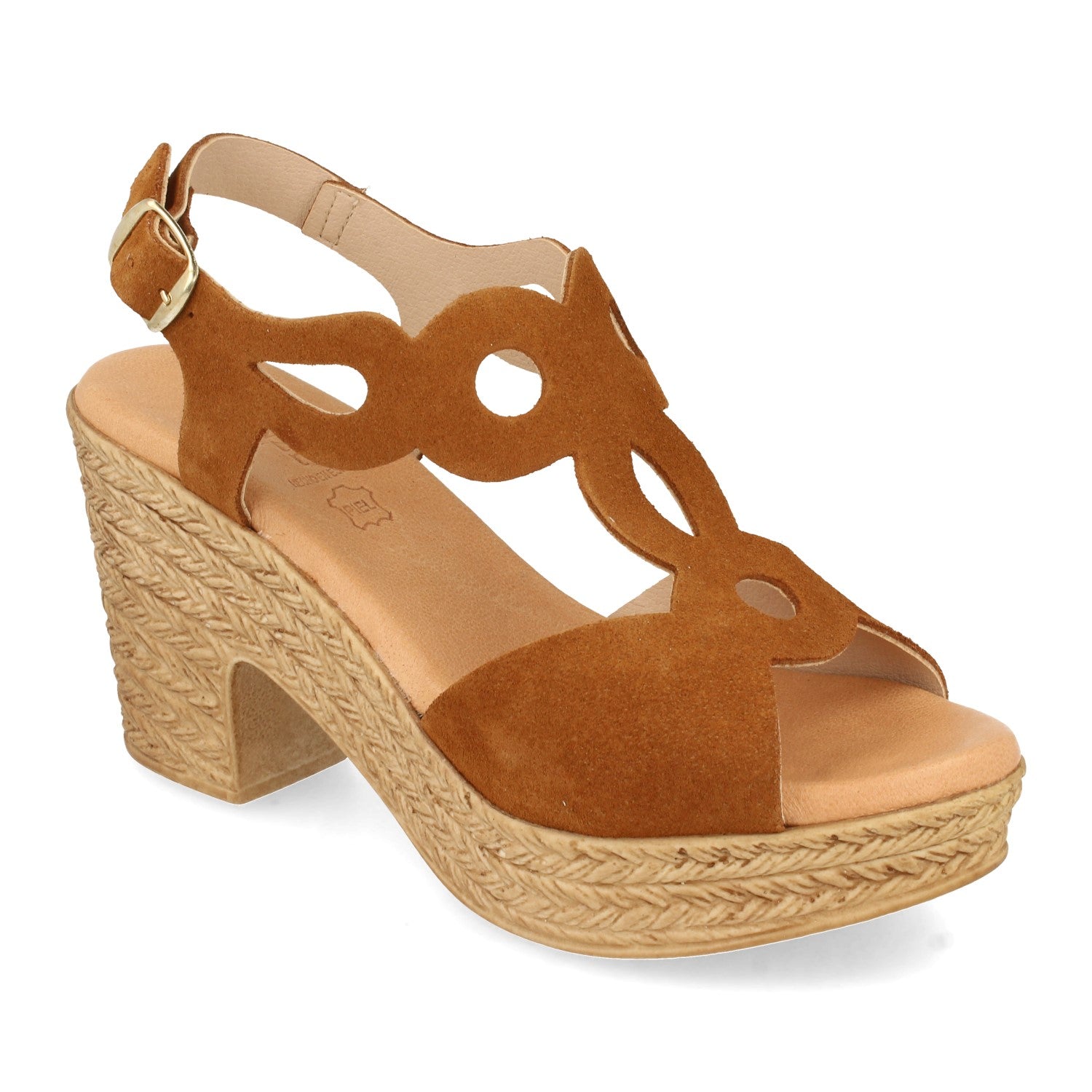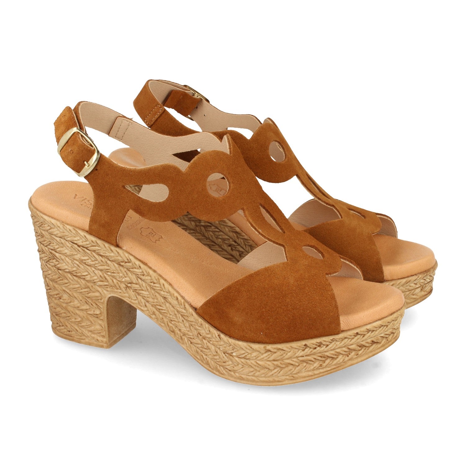Sandalia de Tacón para Mujer Pala en T con Calados y Cierre de Hebilla Fabricado con Piel Primavera Verano 2021