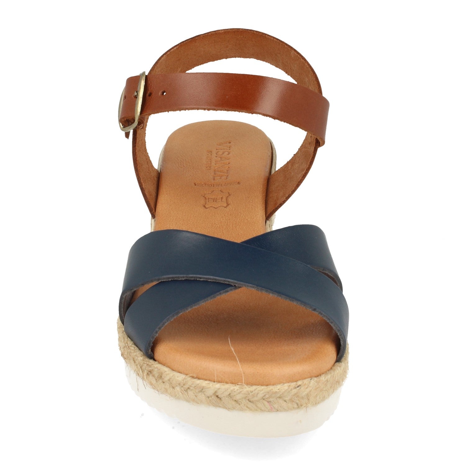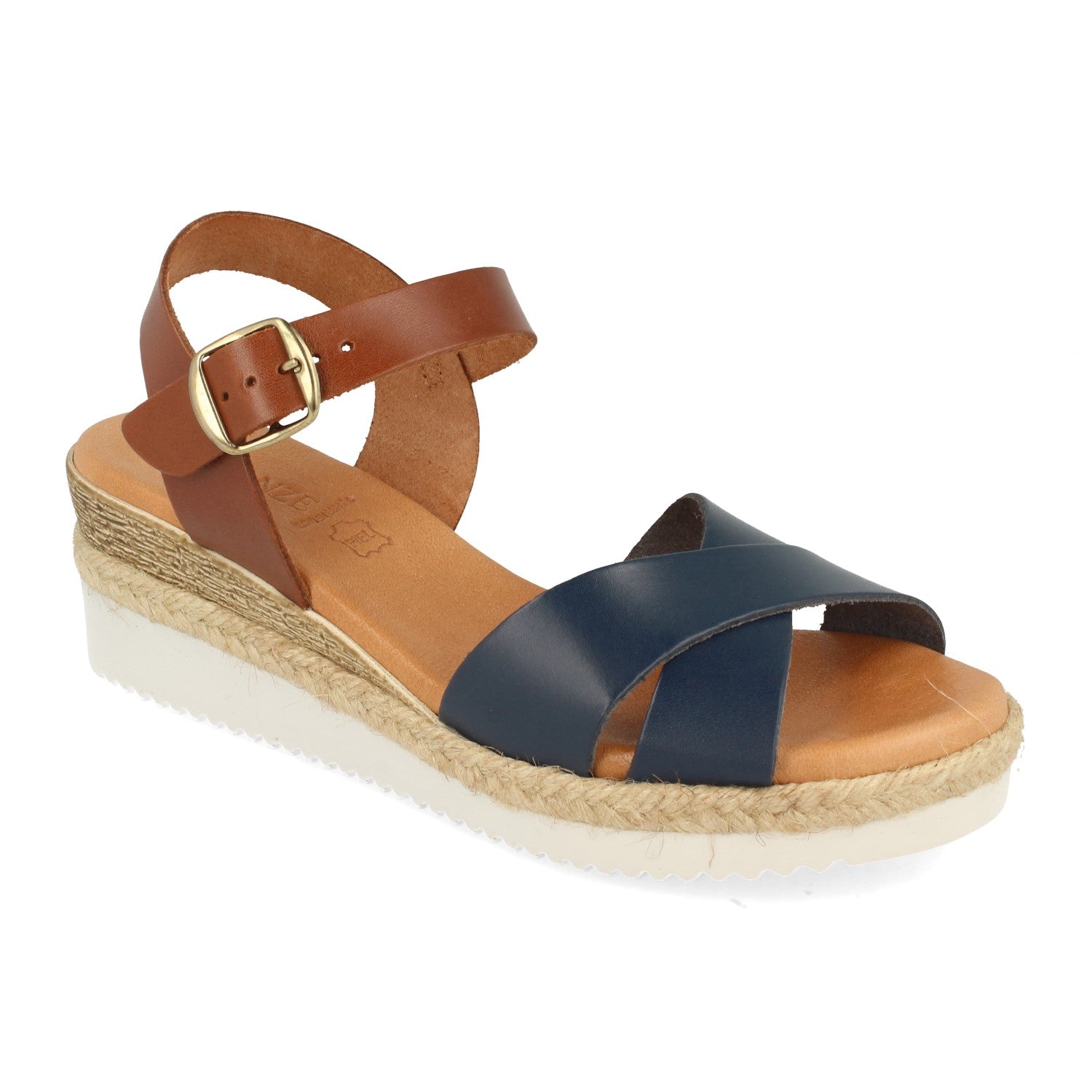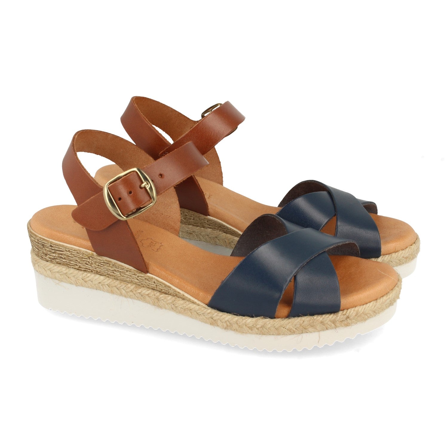 Sandalia de Cuña para Mujer Forrado con Yute Palas Cruzadas y Cierre de Hebilla Fabricado con Piel Primavera Verano 2021