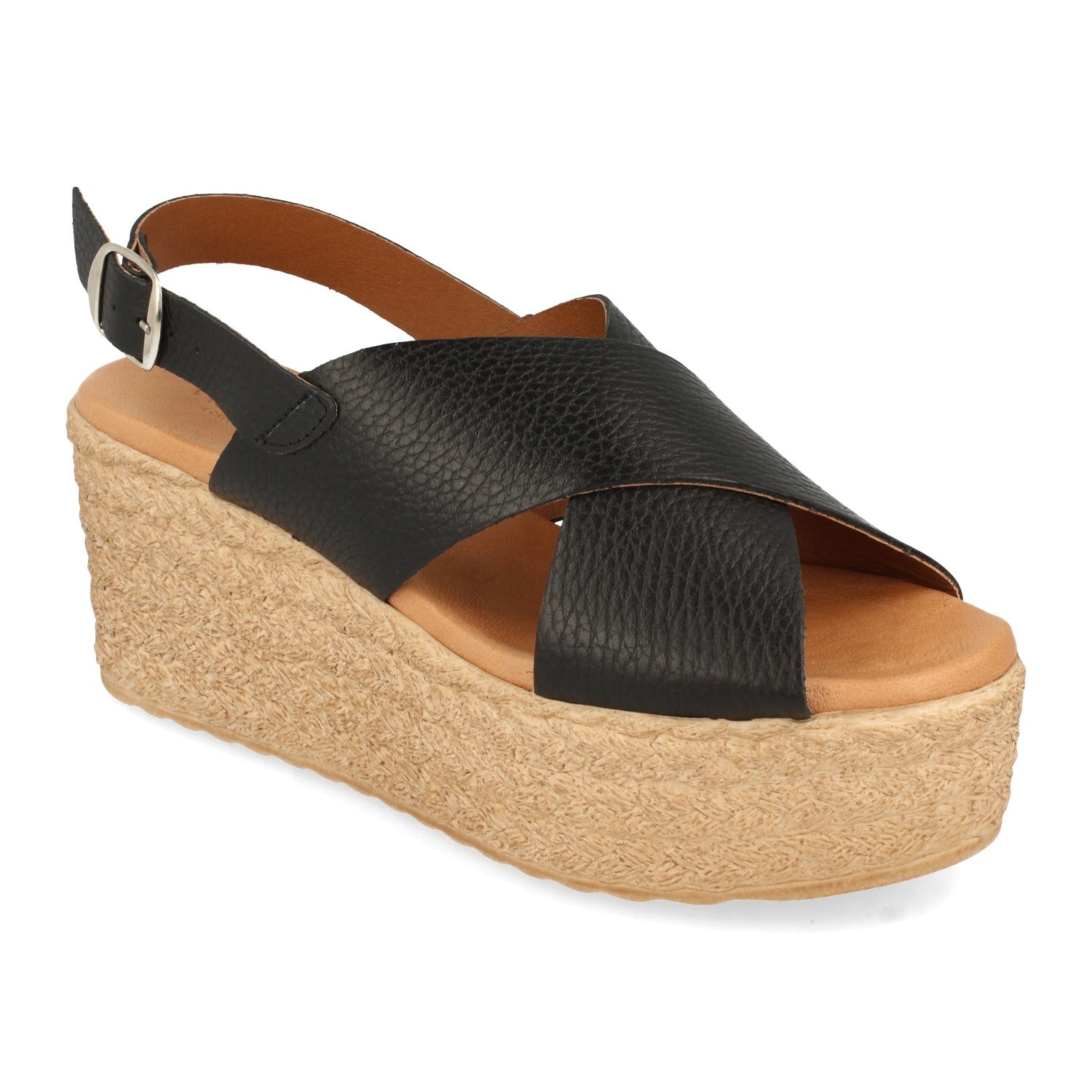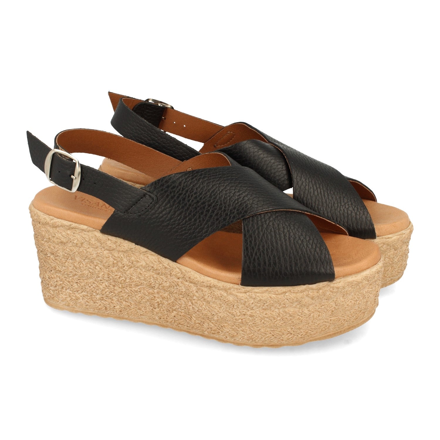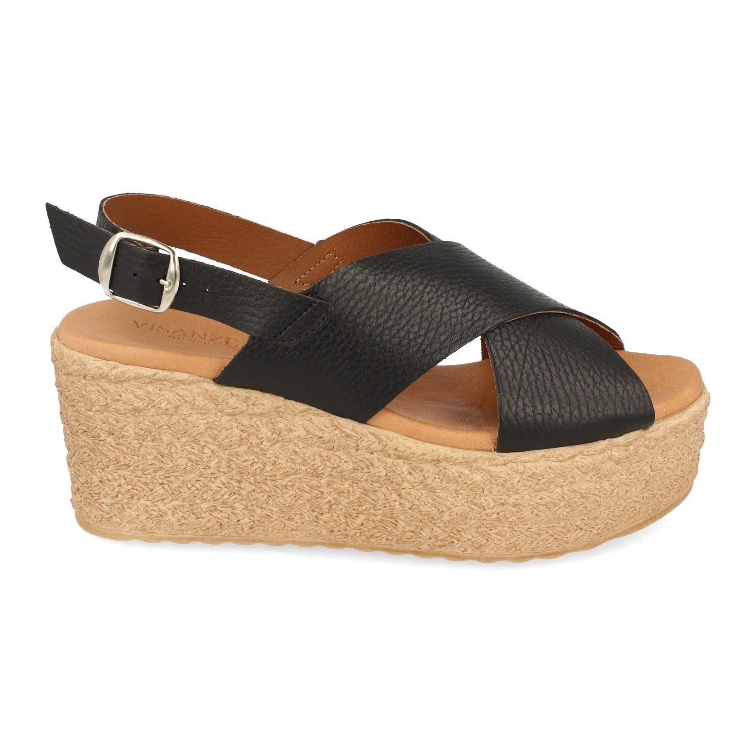 Sandalia de Plataforma para Mujer Palas Cruzadas con Efecto Arrugado y Cierre de Hebilla Fabricado con Piel Primavera Verano 2021