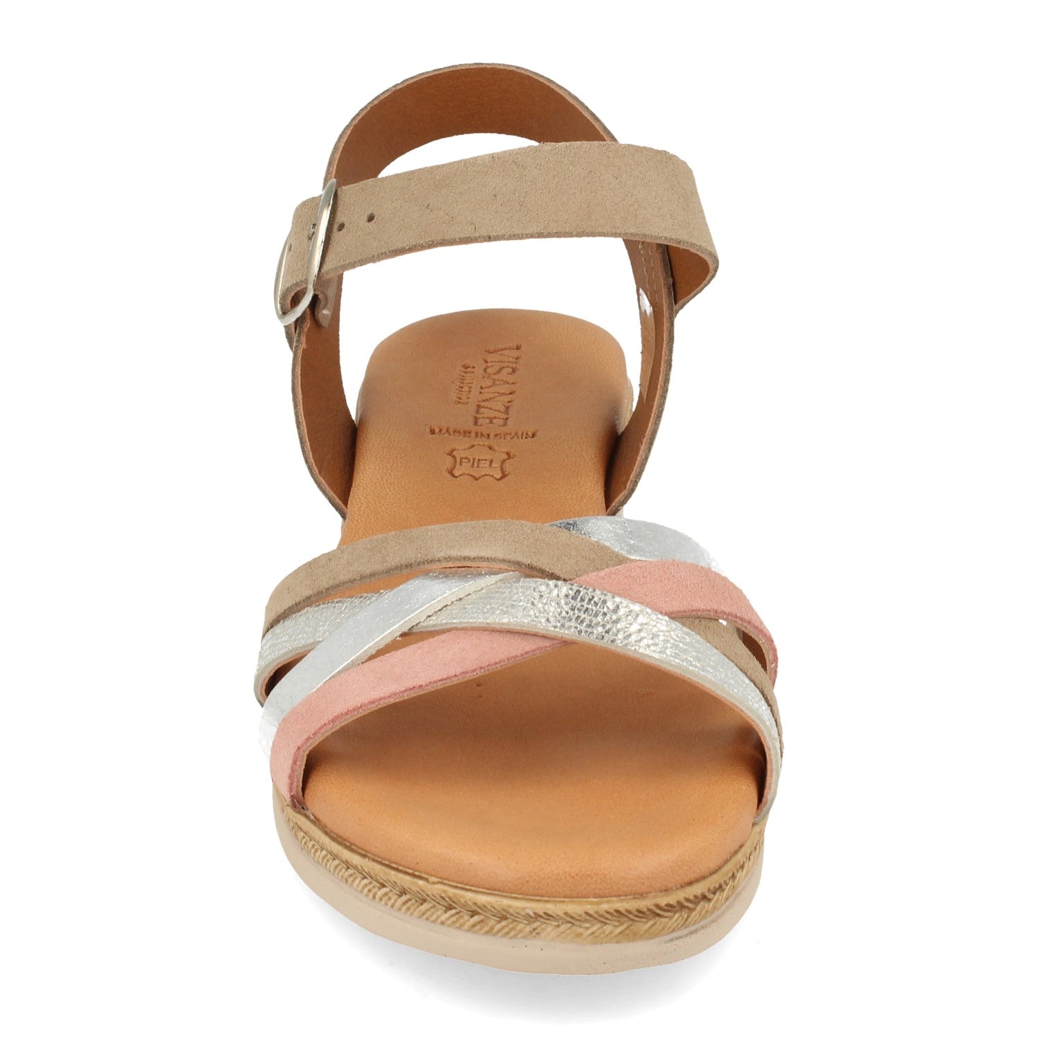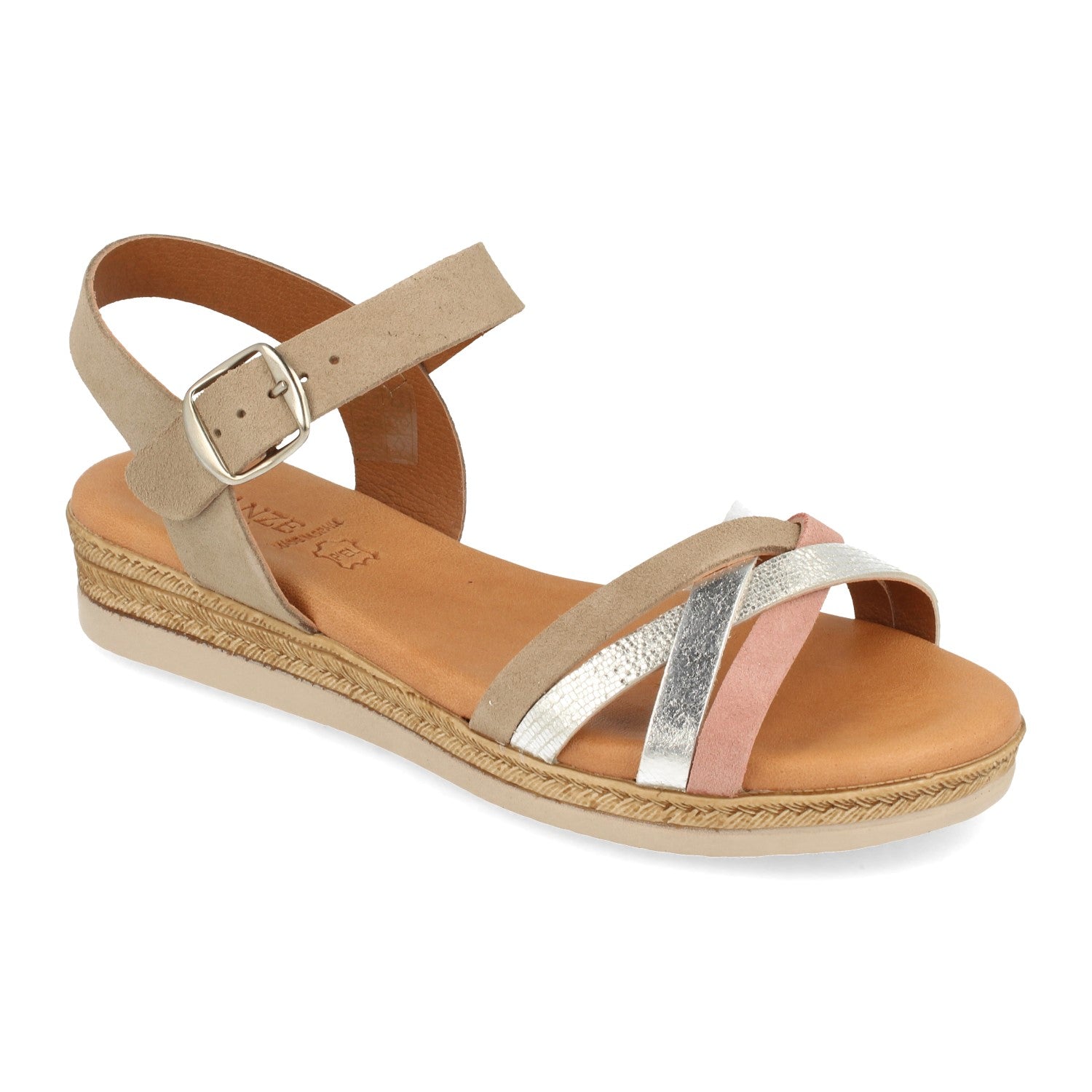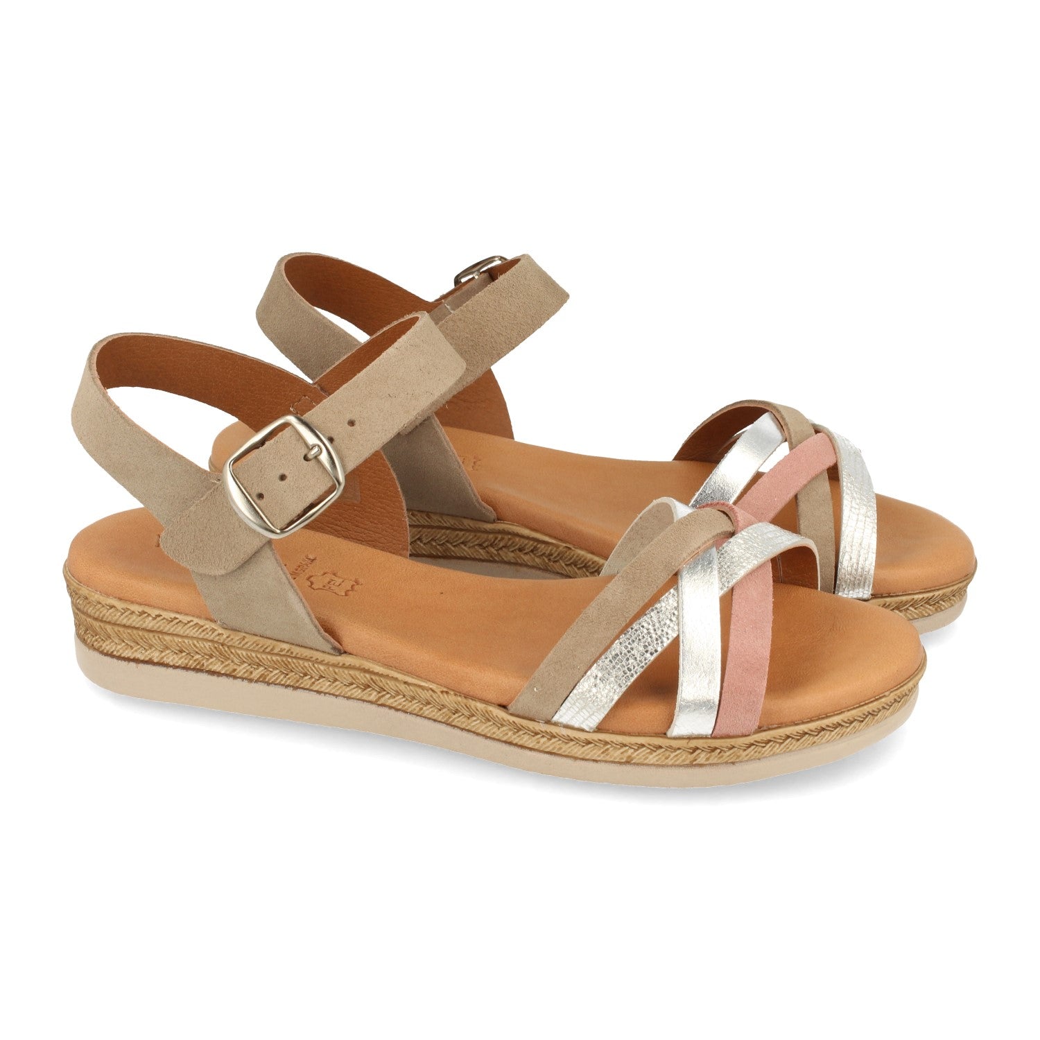 Sandalia Plana para Mujer con Palas Cruzadas con Estampado y Cierre de Hebilla Fabricado con Piel Primavera Verano 2021