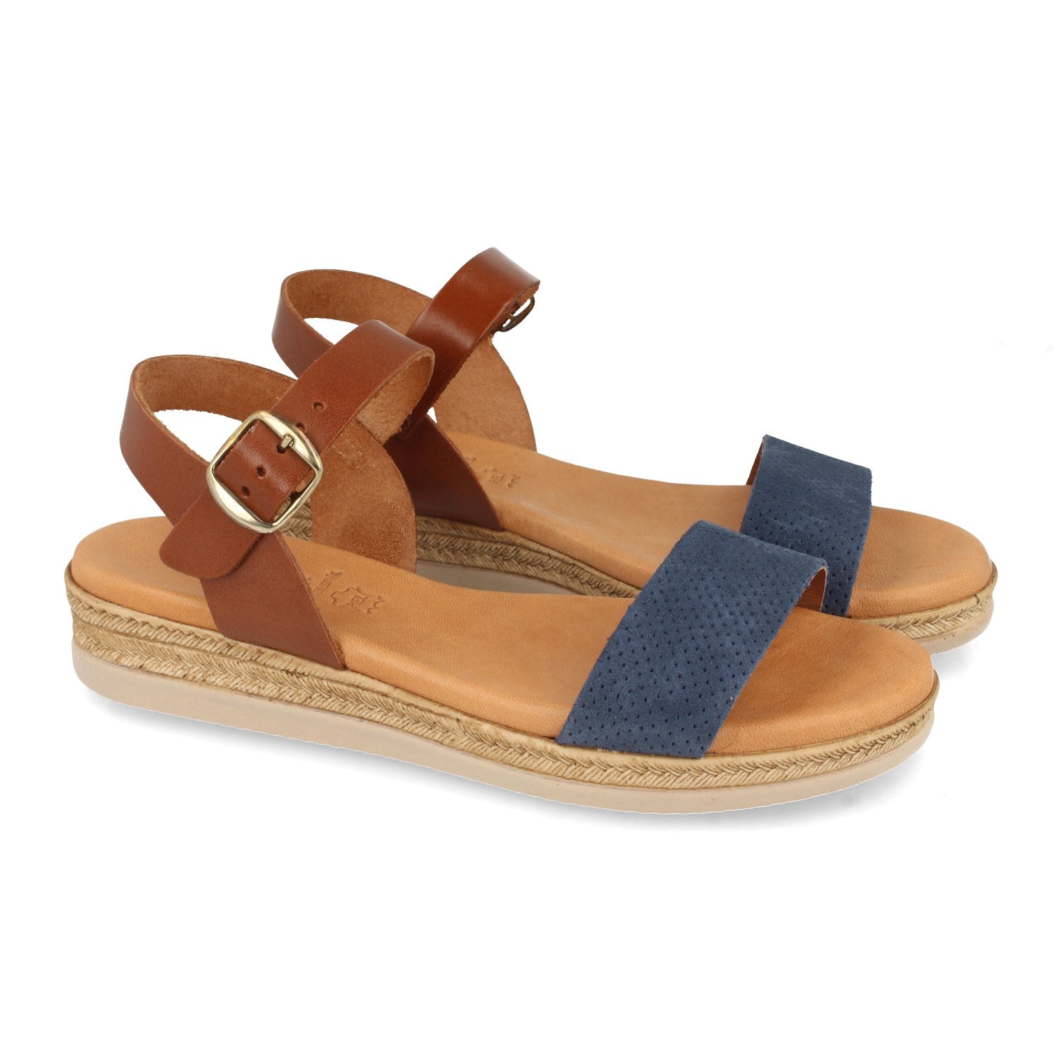 Sandalia Plana para Mujer Comodas Pala con Perforado Mil Puntos y Cierre de Hebilla Fabricado con Piel Primavera Verano 2021