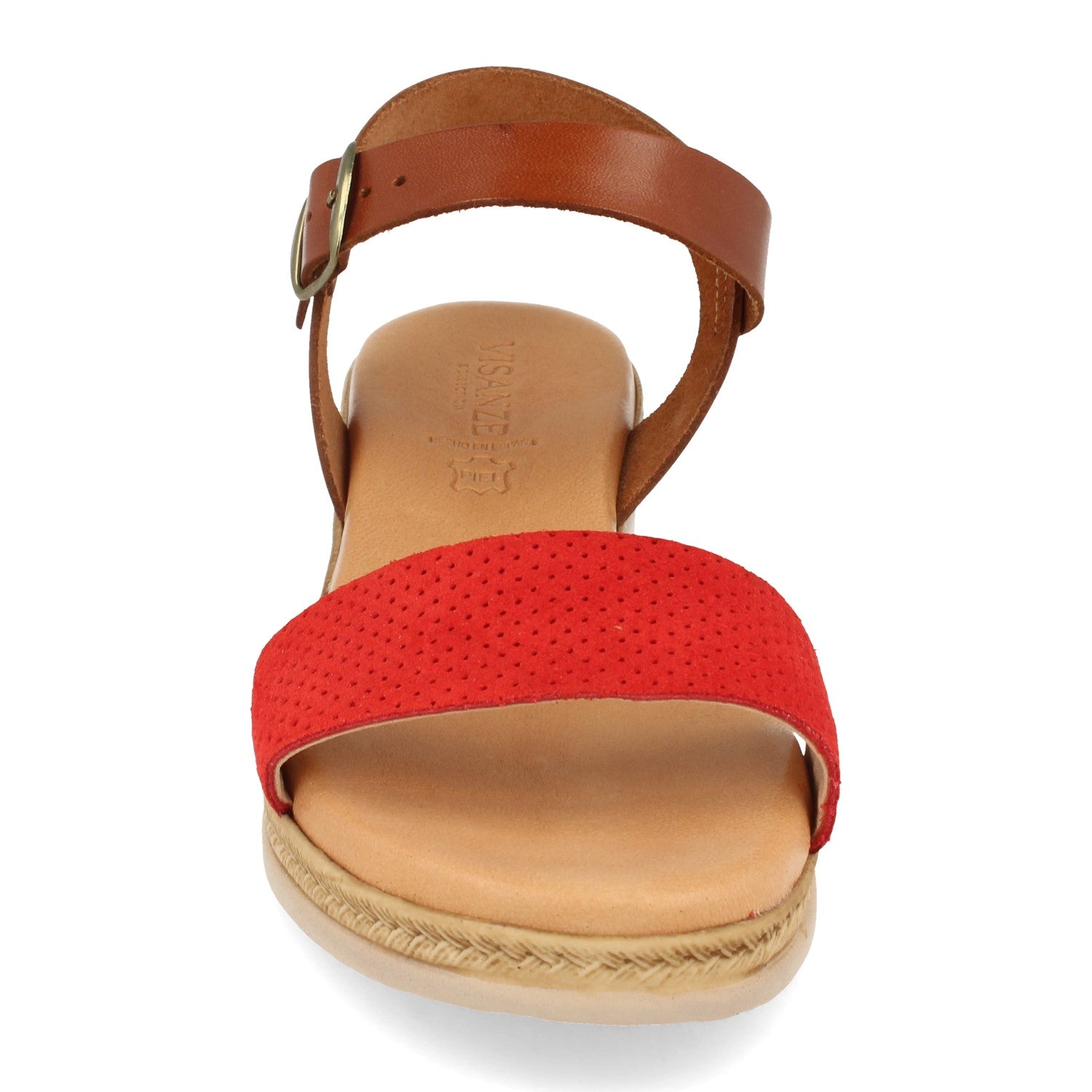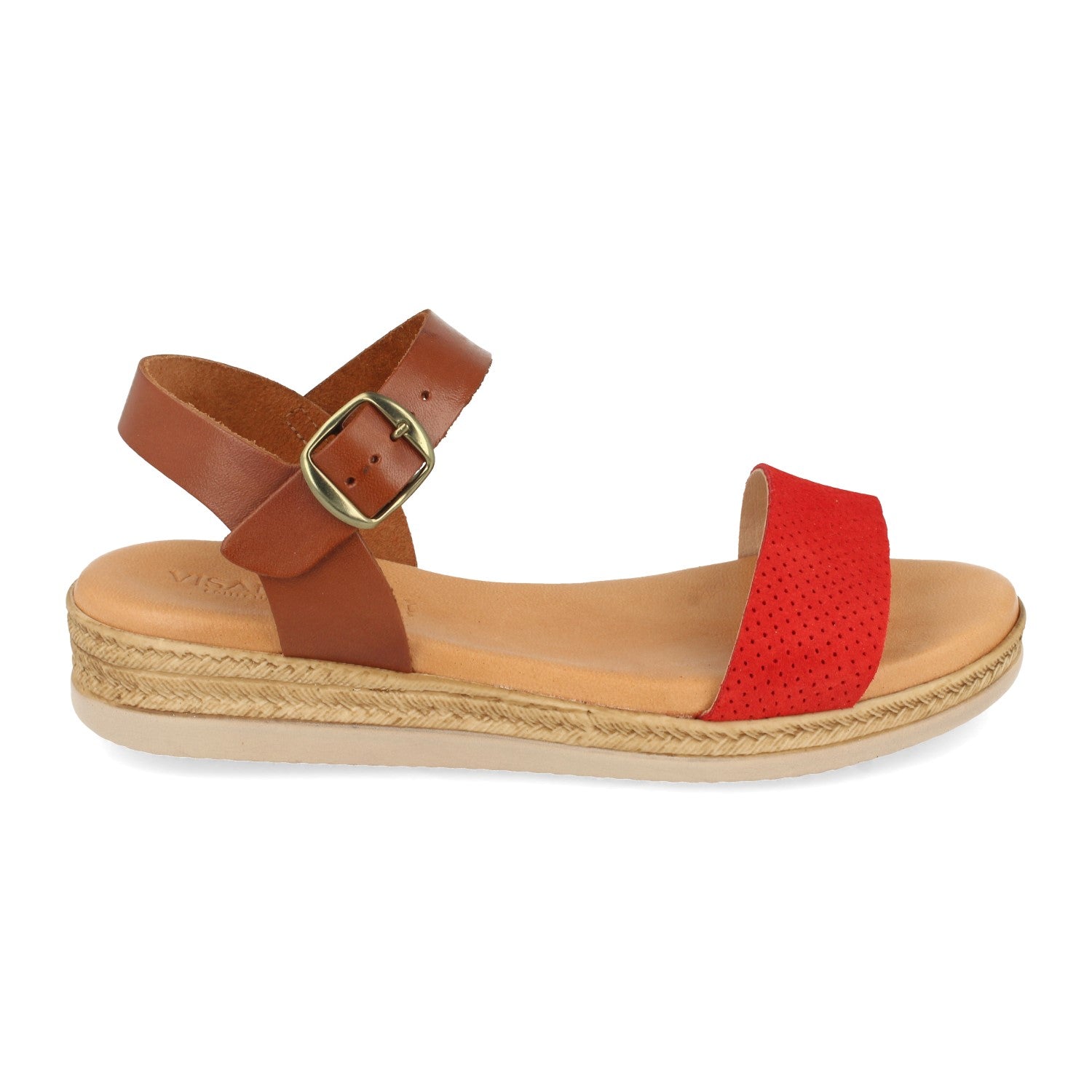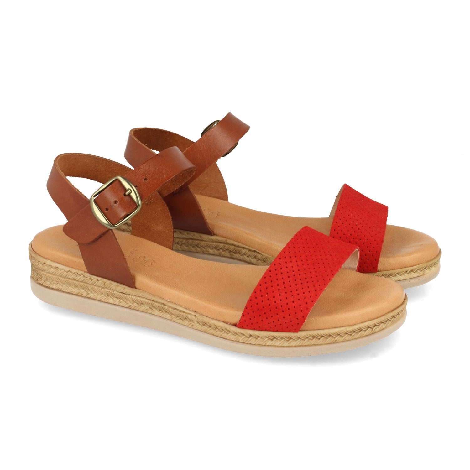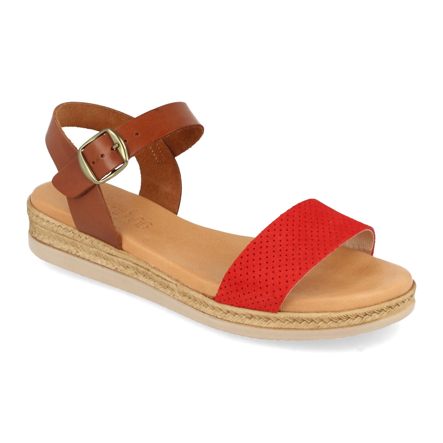 Sandalia Plana para Mujer Comodas Pala con Perforado Mil Puntos y Cierre de Hebilla Fabricado con Piel Primavera Verano 2021