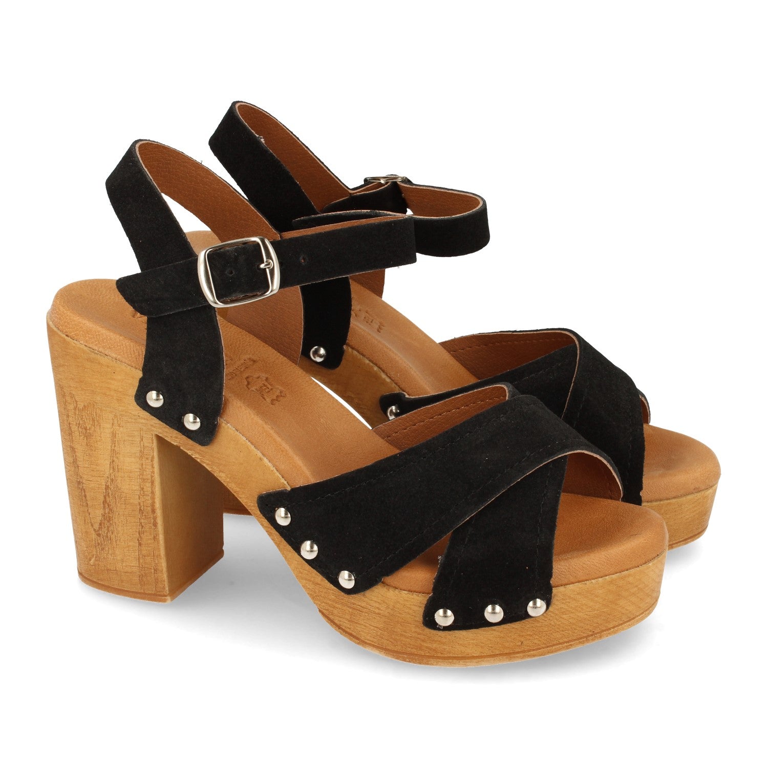 Sandalia de Tacón para Mujer Comodas con Palas Cruzadas Tachuelas de Sujeción y Cierre de Hebilla Fabricado con Piel Primavera Verano 2021