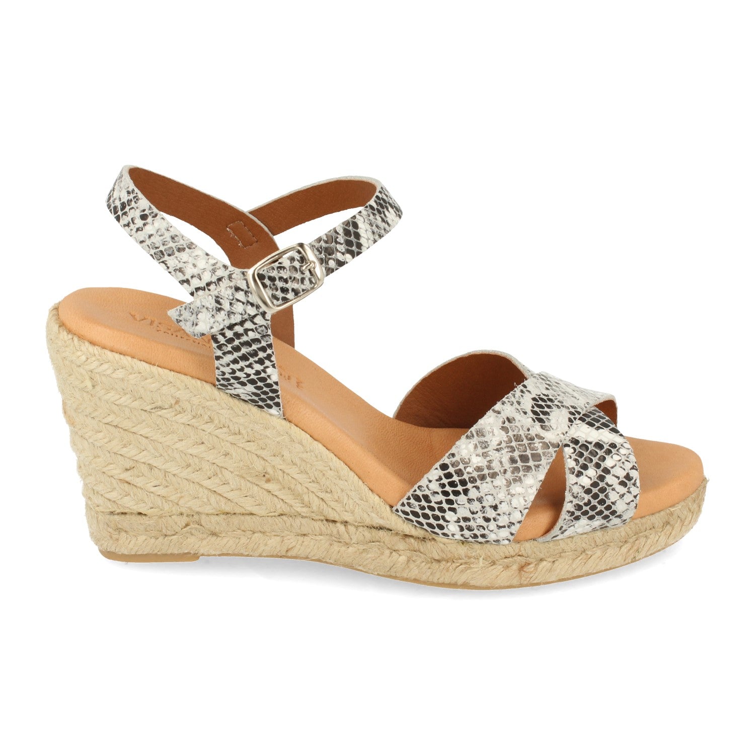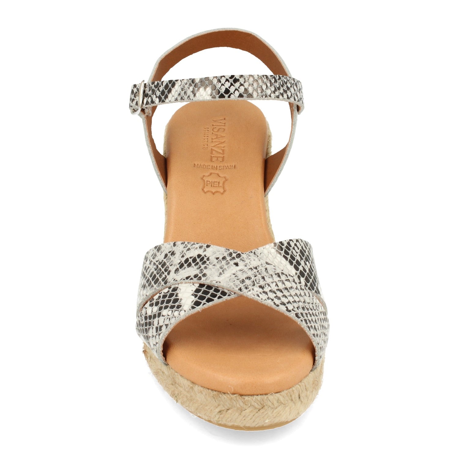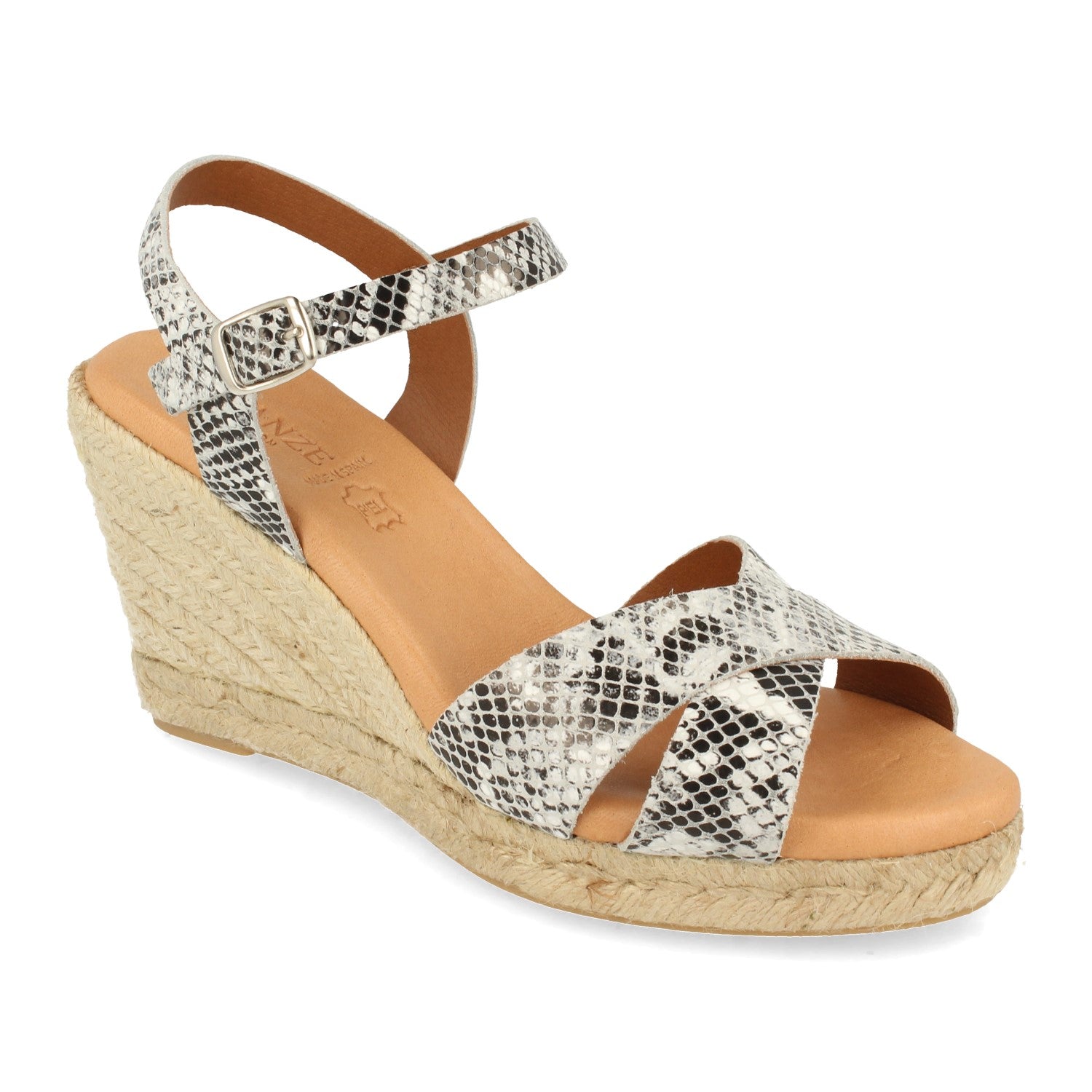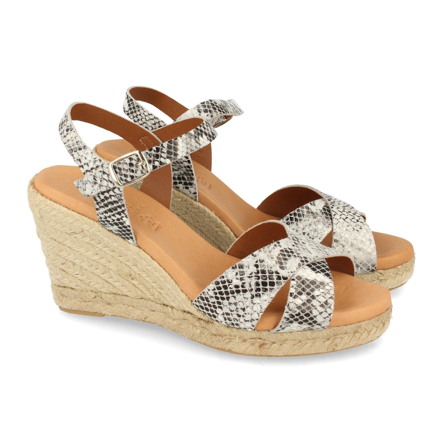 Sandalia de Cuña para Mujer Forrado con Yute Pala Cruzada Estampado de Serpiente y Cierre de Hebilla Fabricado con Piel Primavera Verano 2021