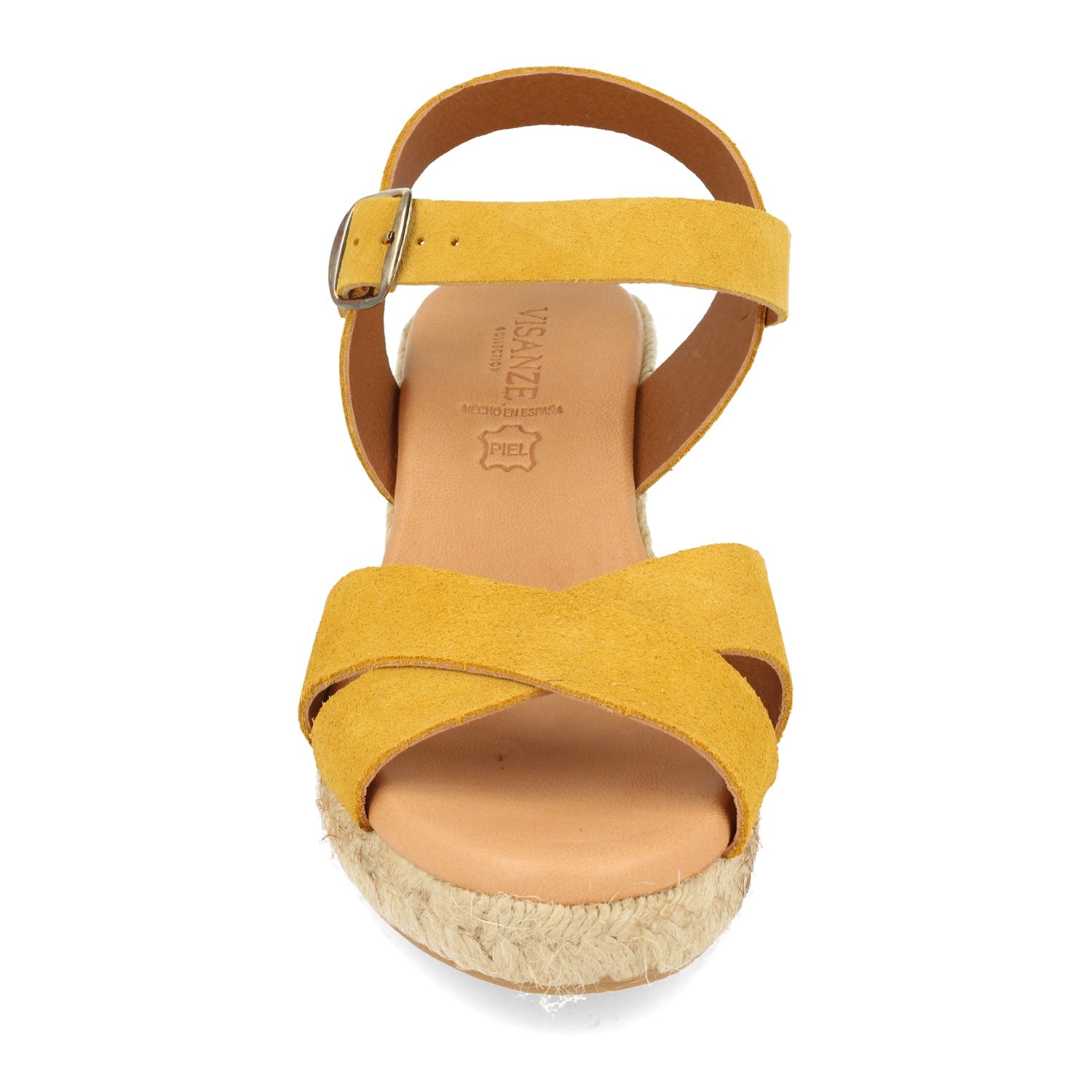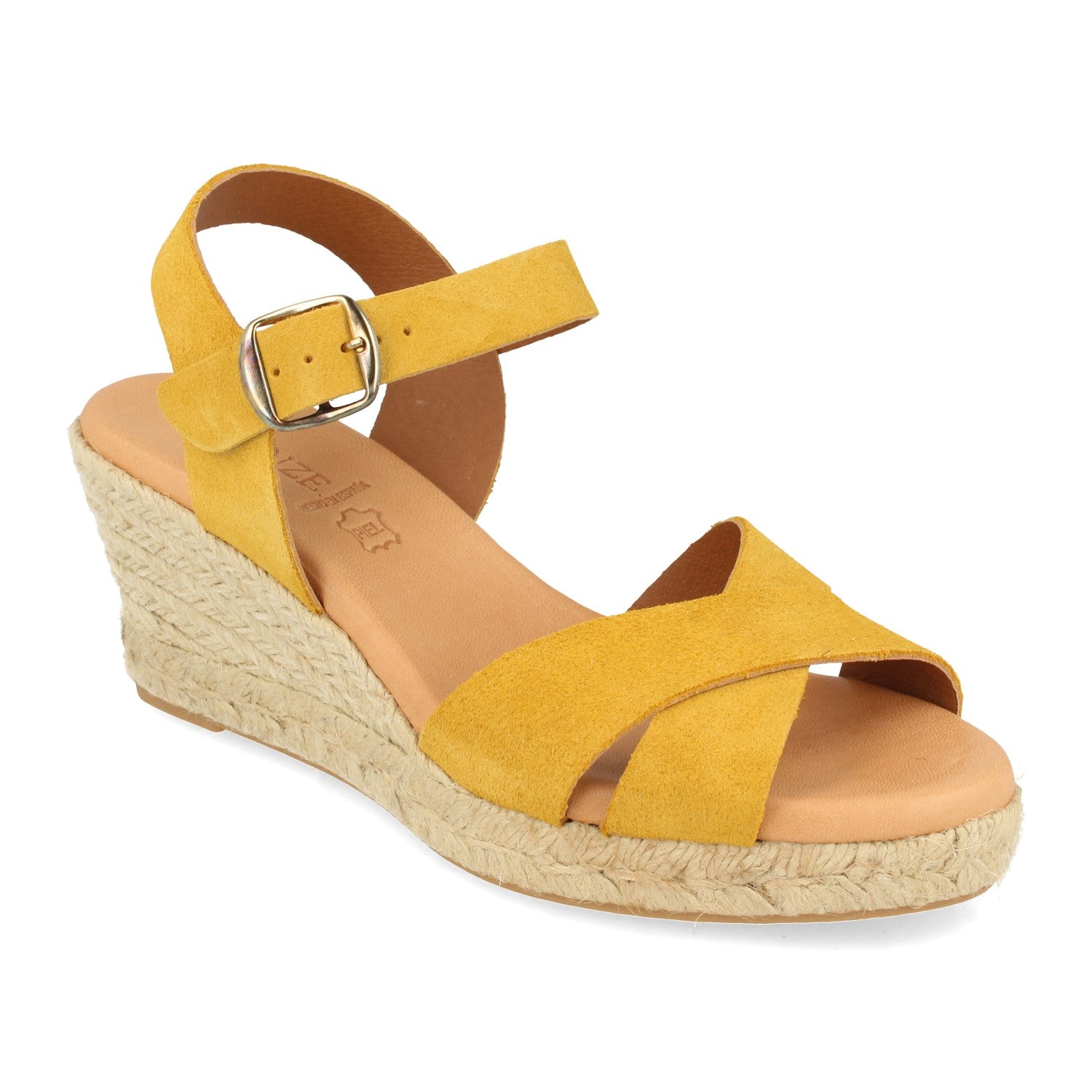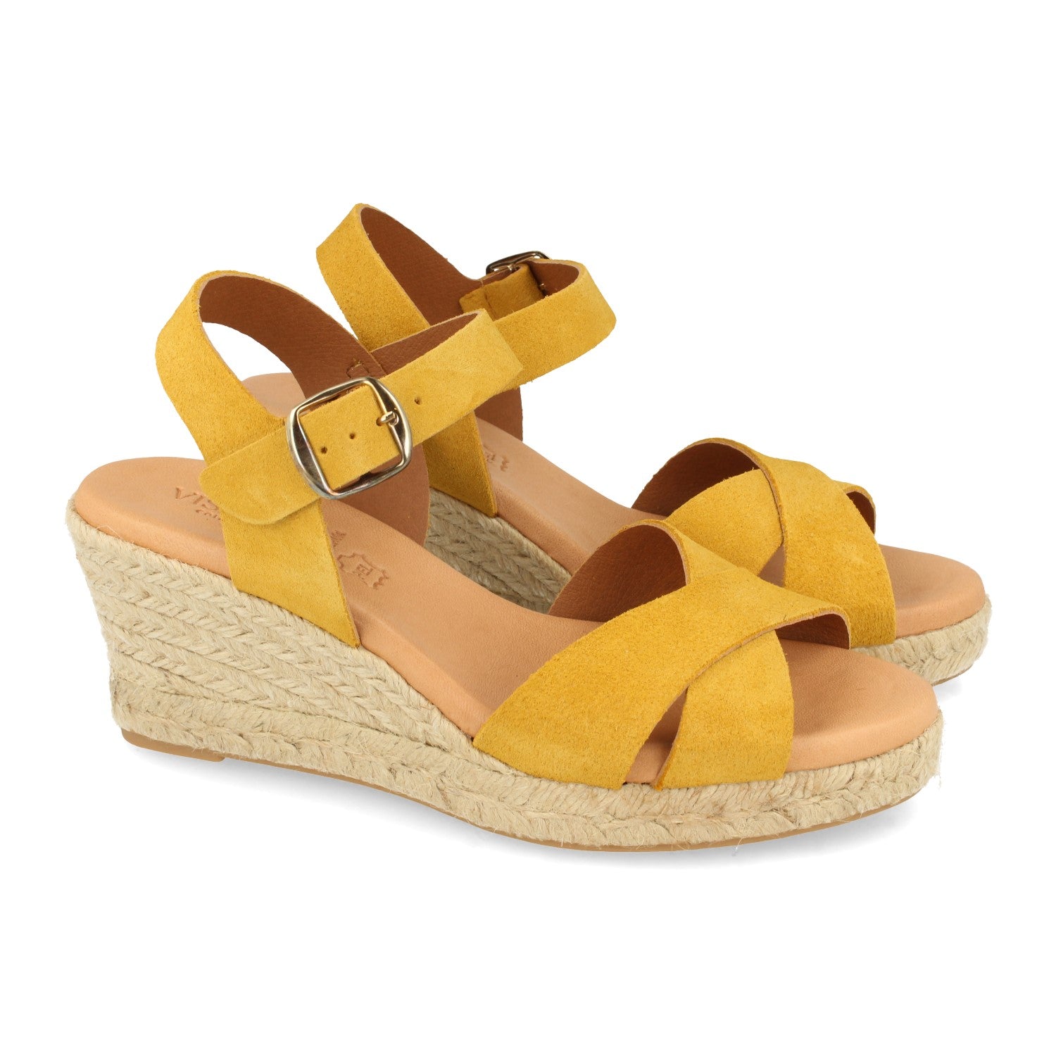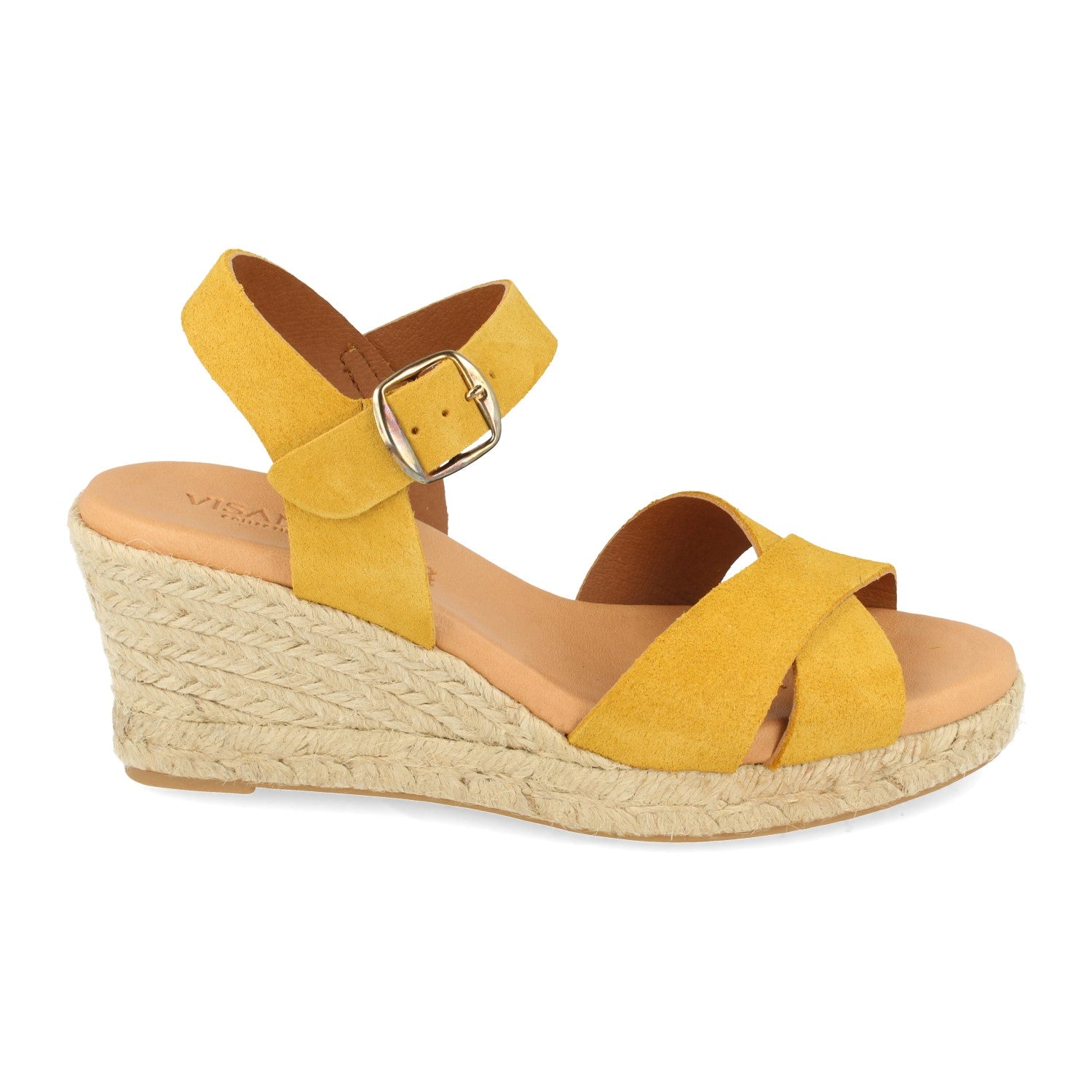 Sandalia de Cuña para Mujer Comodas Forrado con Yute Palas Cruzadas y Cierre de Hebilla Fabricado con Piel Primavera Verano 2021
