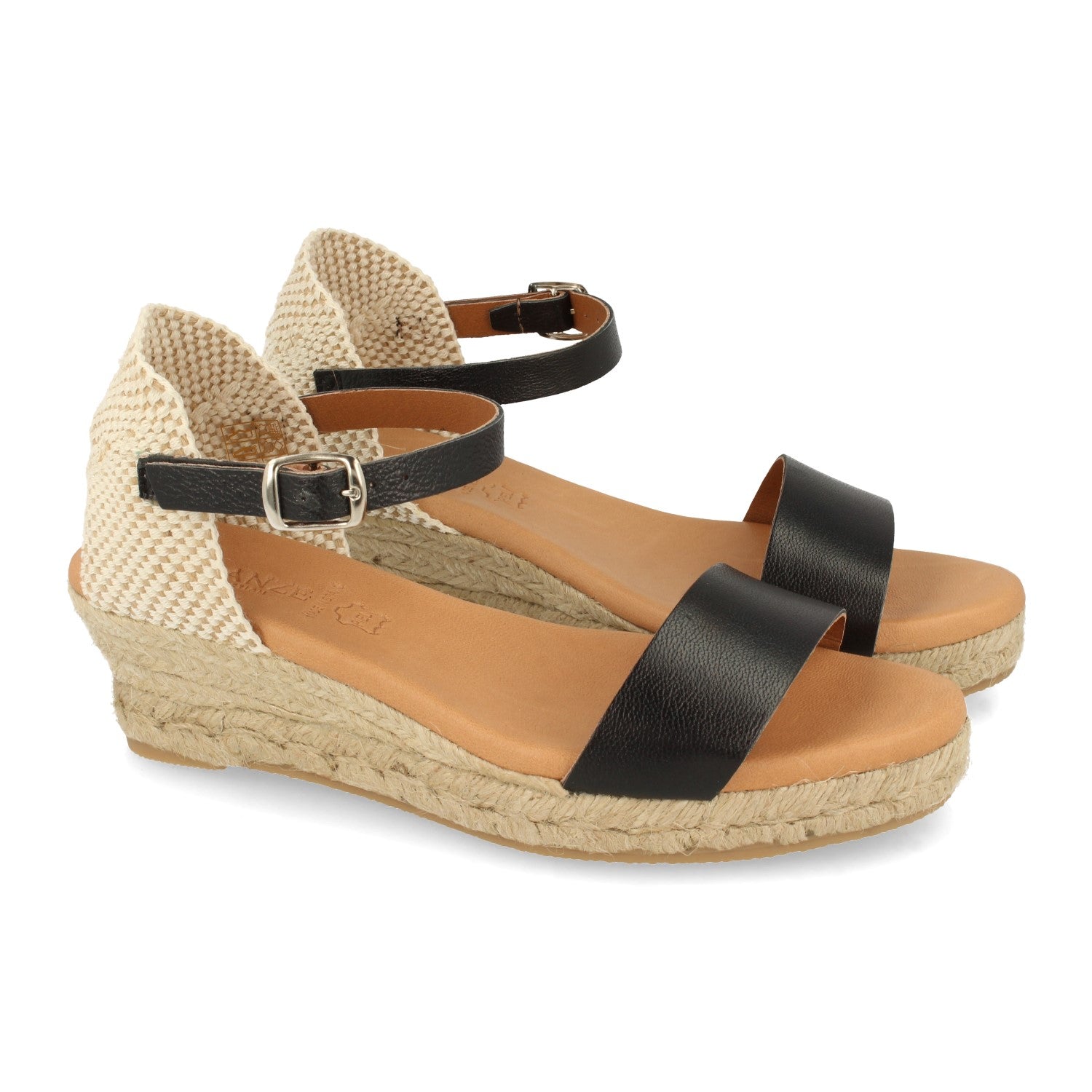 Sandalia de Cuña para Mujer Comodas Forrado con Yute Pala Simple y Talón de Rafia con Cierre de Hebilla Fabricado con Piel Primavera Verano 2021