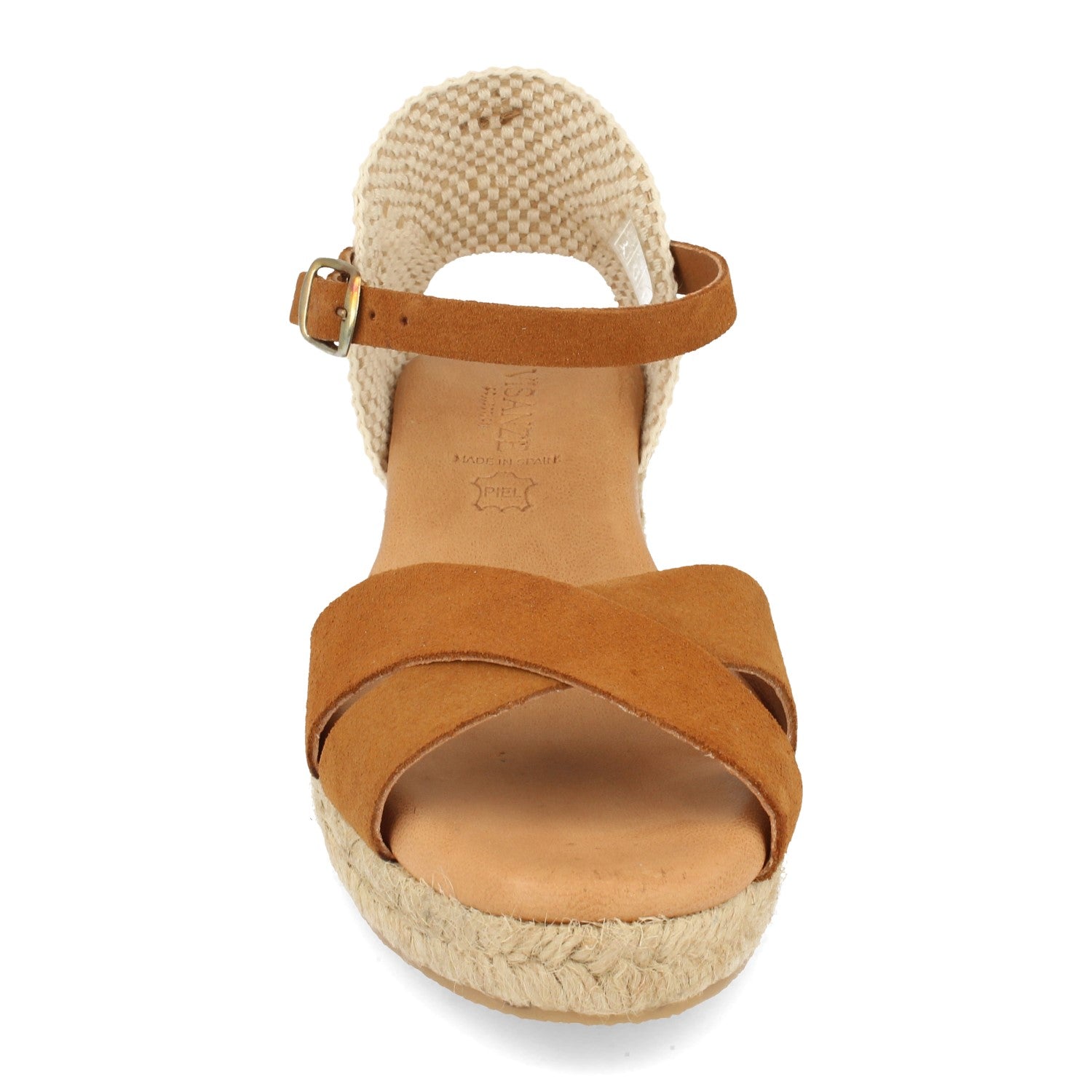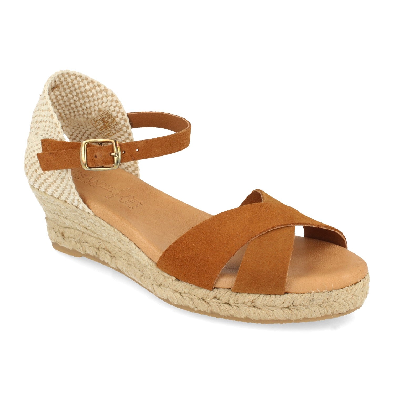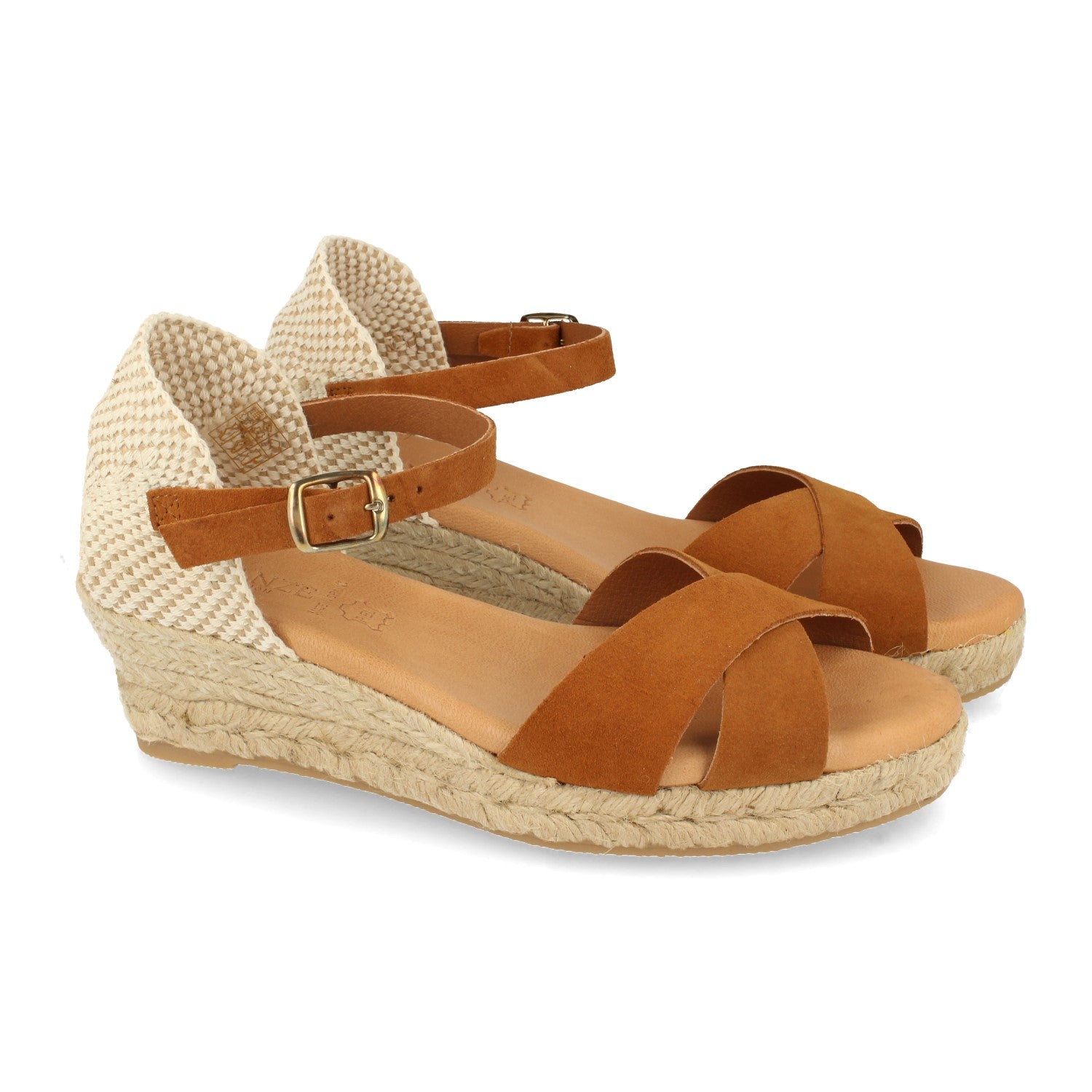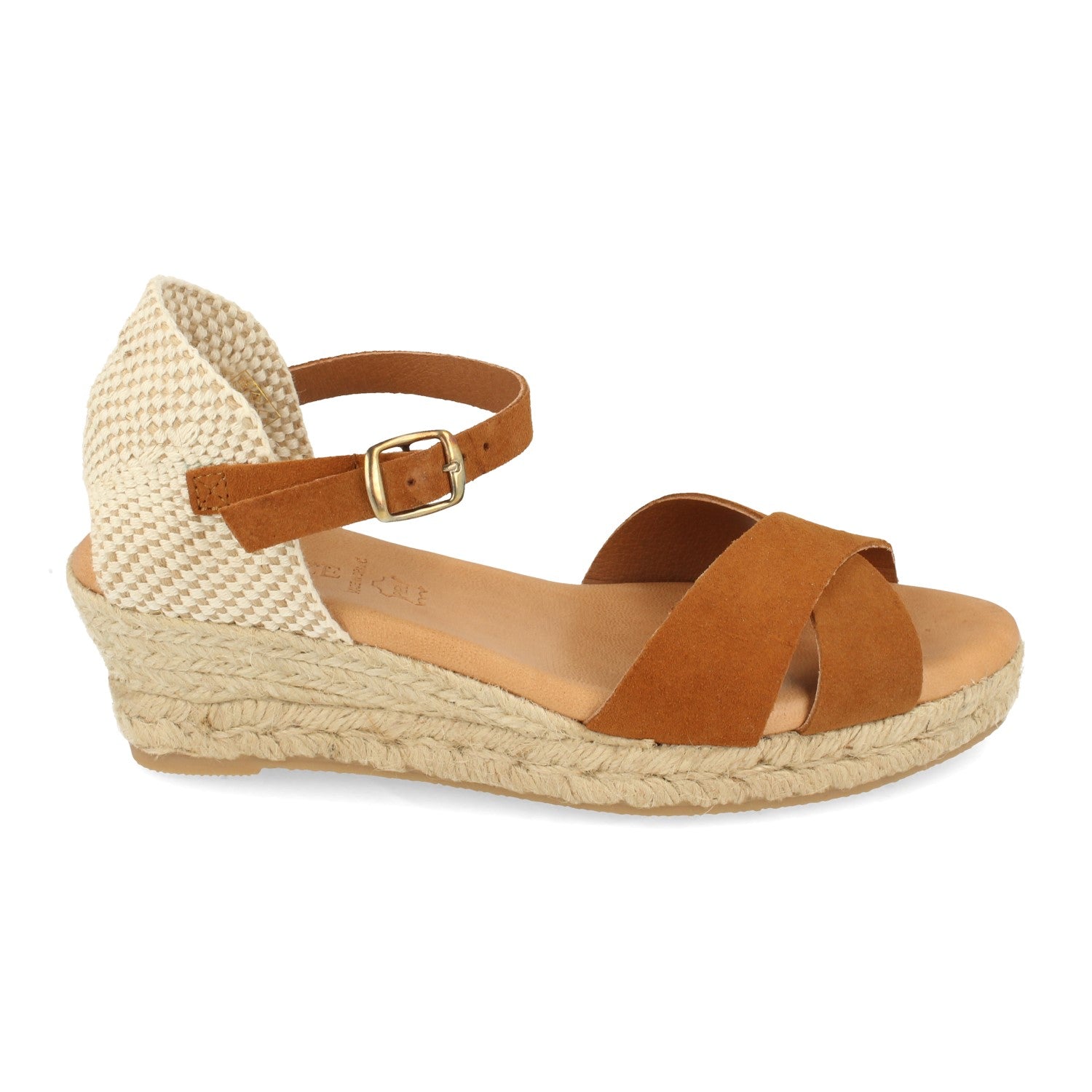 Sandalia de Cuña para Mujer Comodas Forrado con Yute Palas Cruzadas y Talón de Rafia con Cierre de Hebilla Fabricado con Piel Primavera Verano 2021