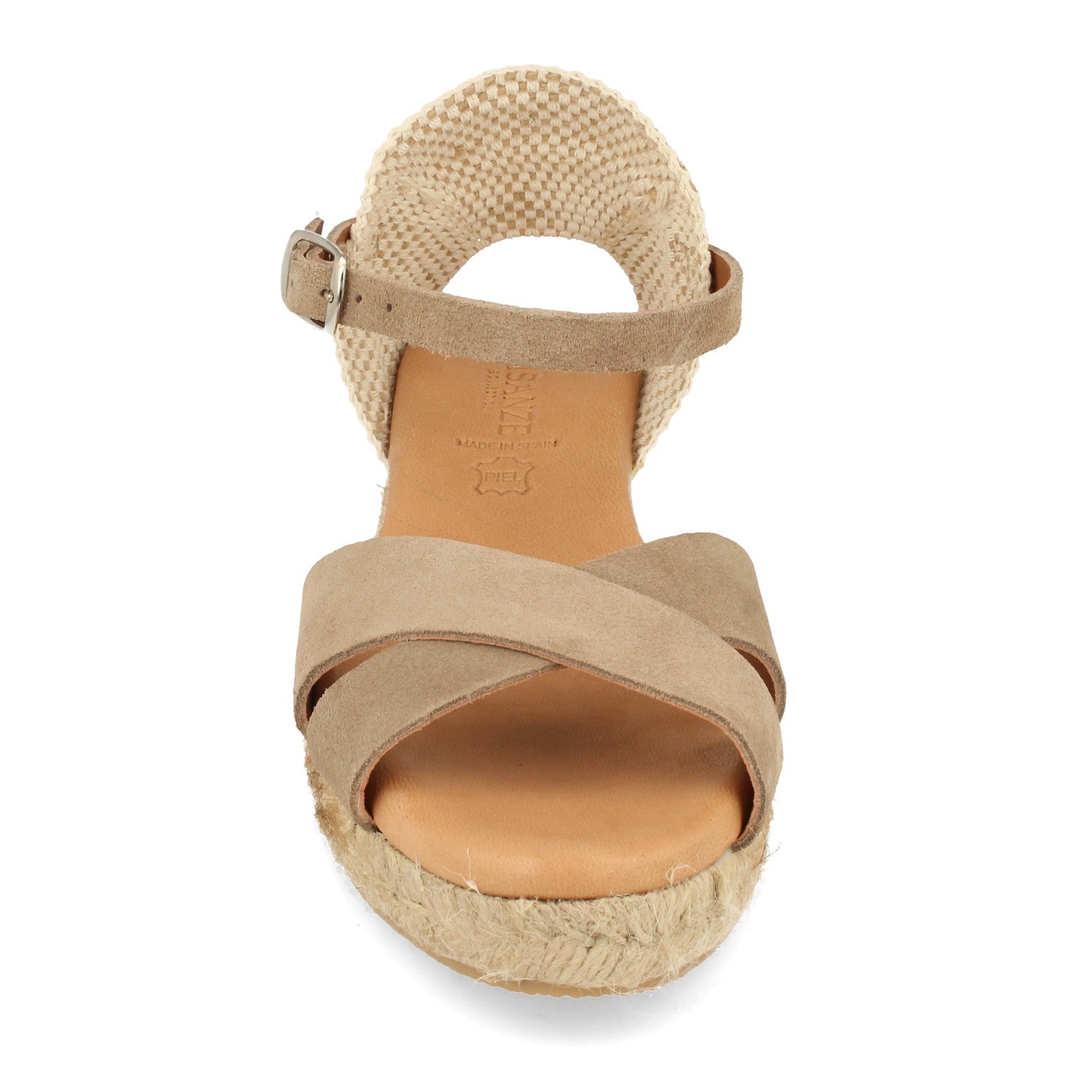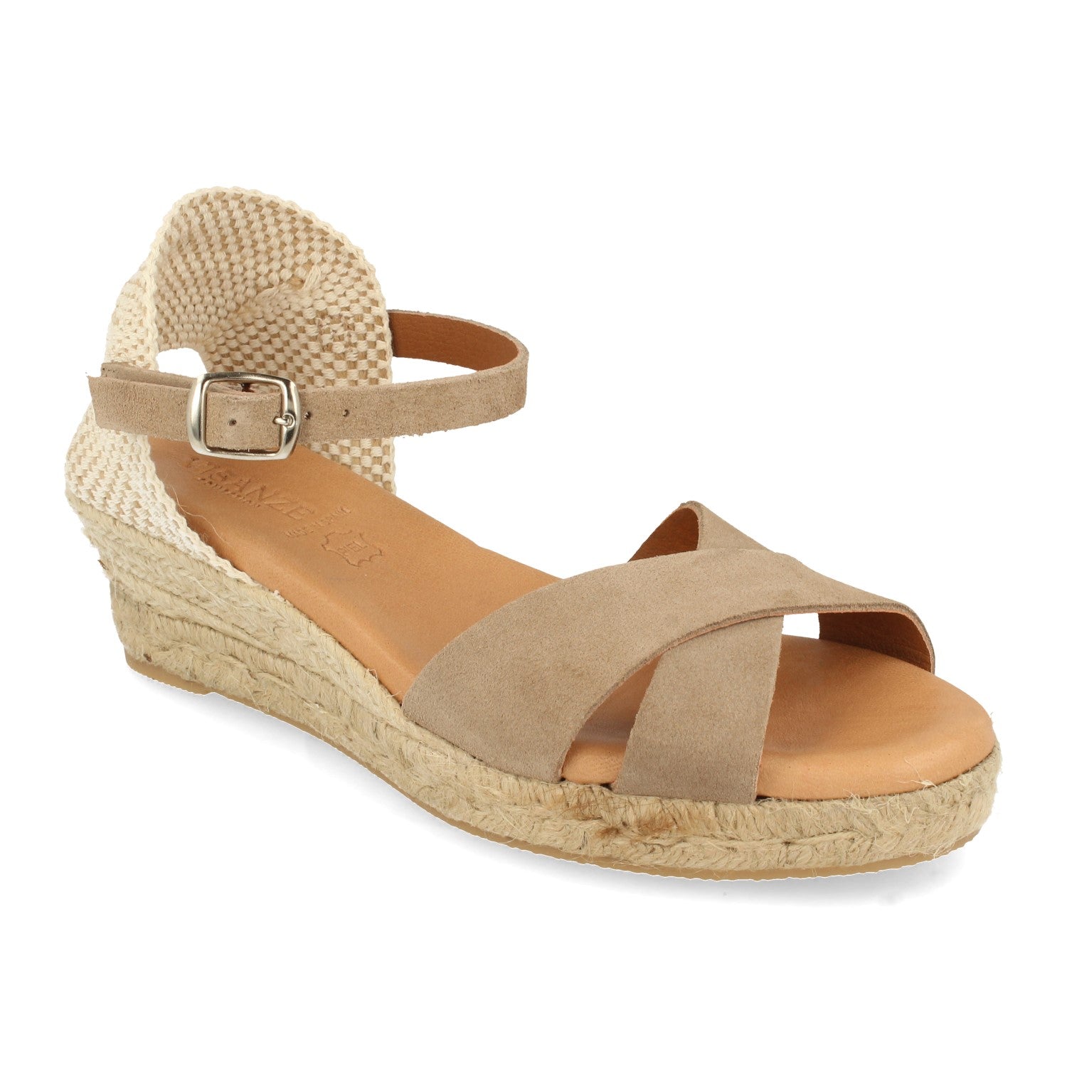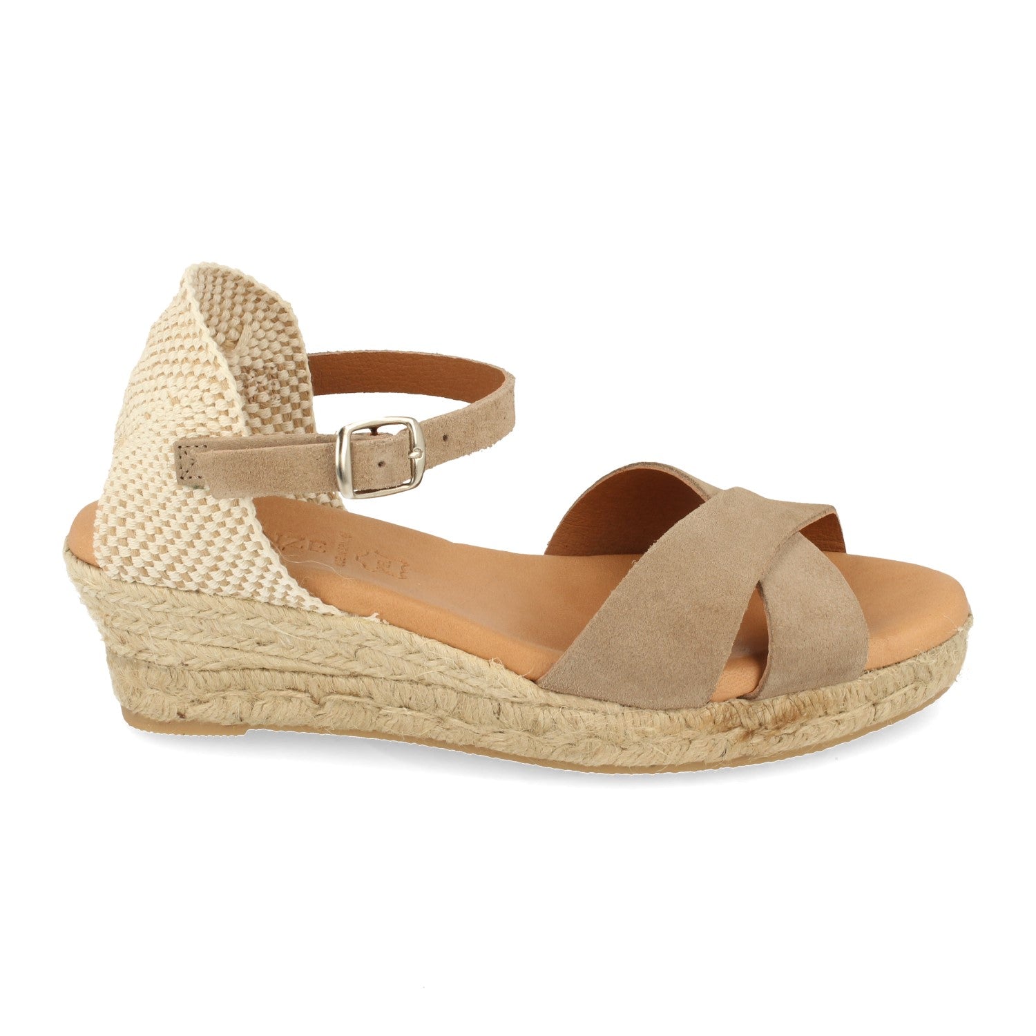 Sandalia de Cuña para Mujer Comodas Forrado con Yute Palas Cruzadas y Talón de Rafia con Cierre de Hebilla Fabricado con Piel Primavera Verano 2021