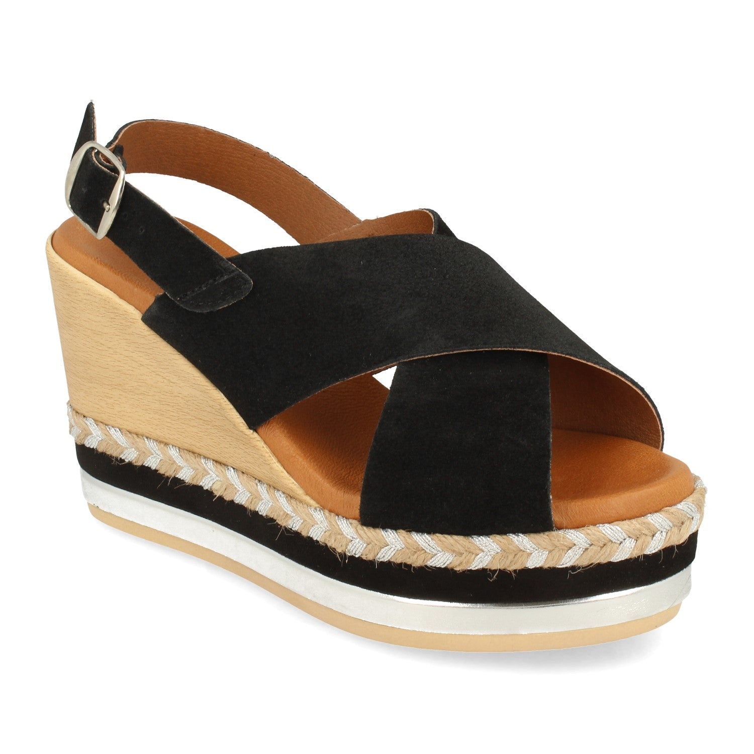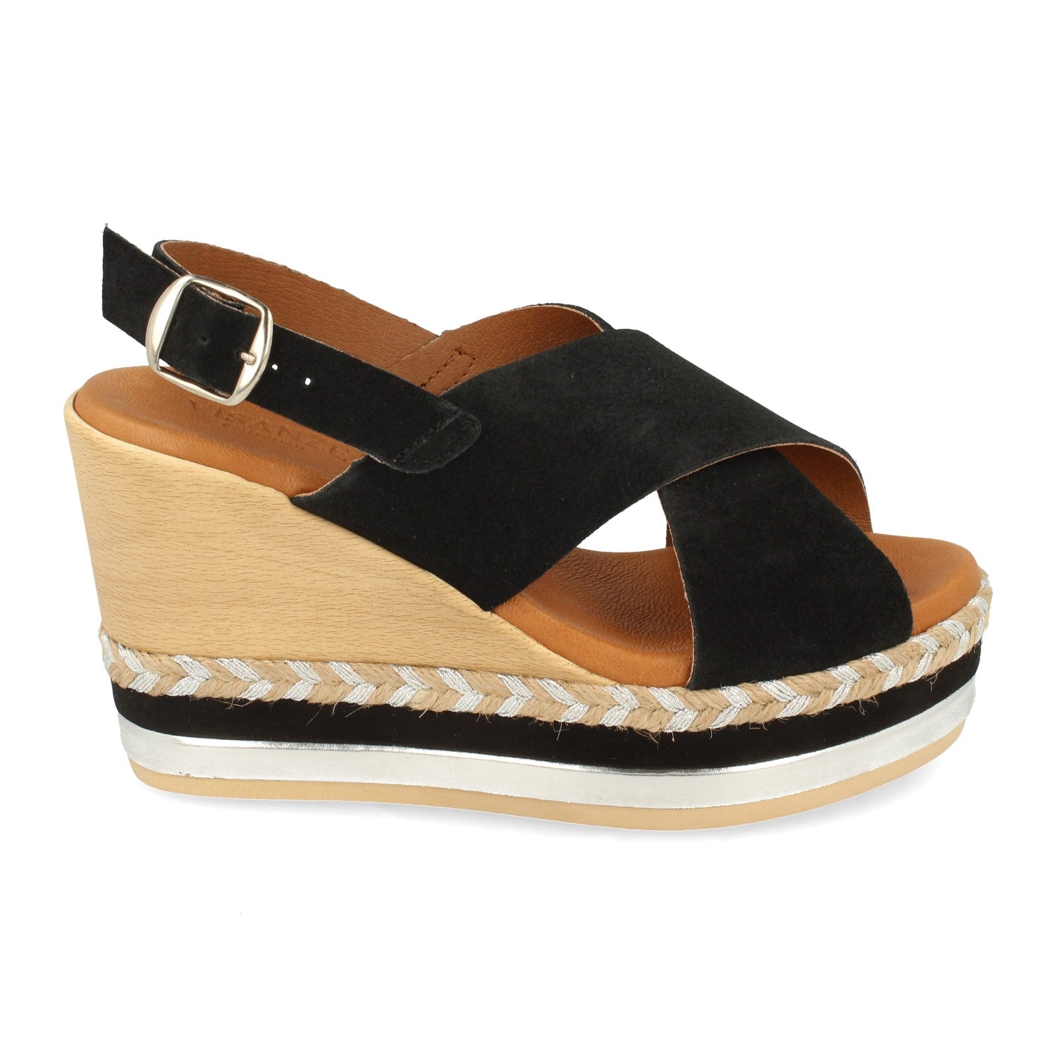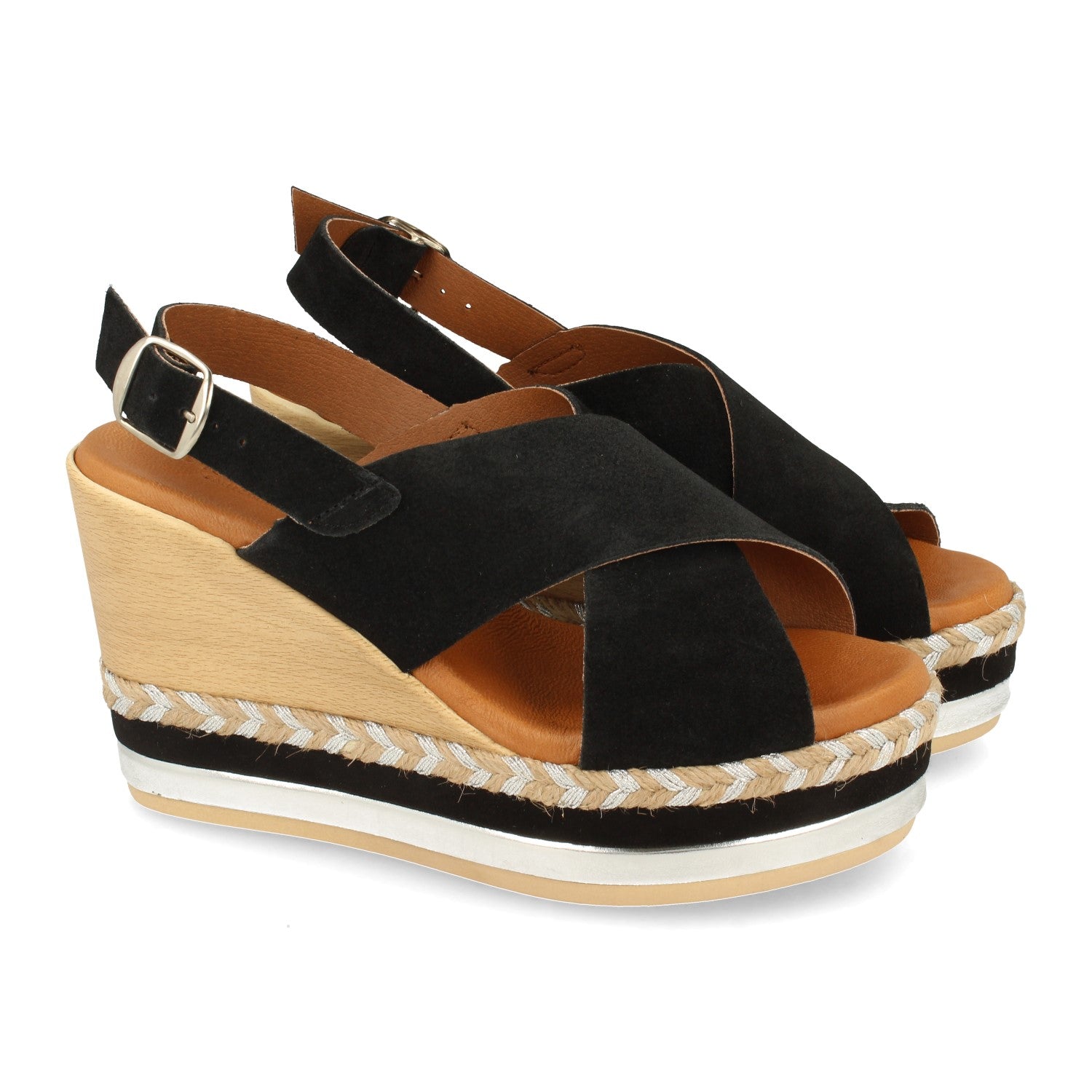 Sandalia de Cuña para Mujer Comodas Forrado Multicolor Palas Cruzadas y Cierre de Hebilla Fabricado con Piel Primavera Verano 2021