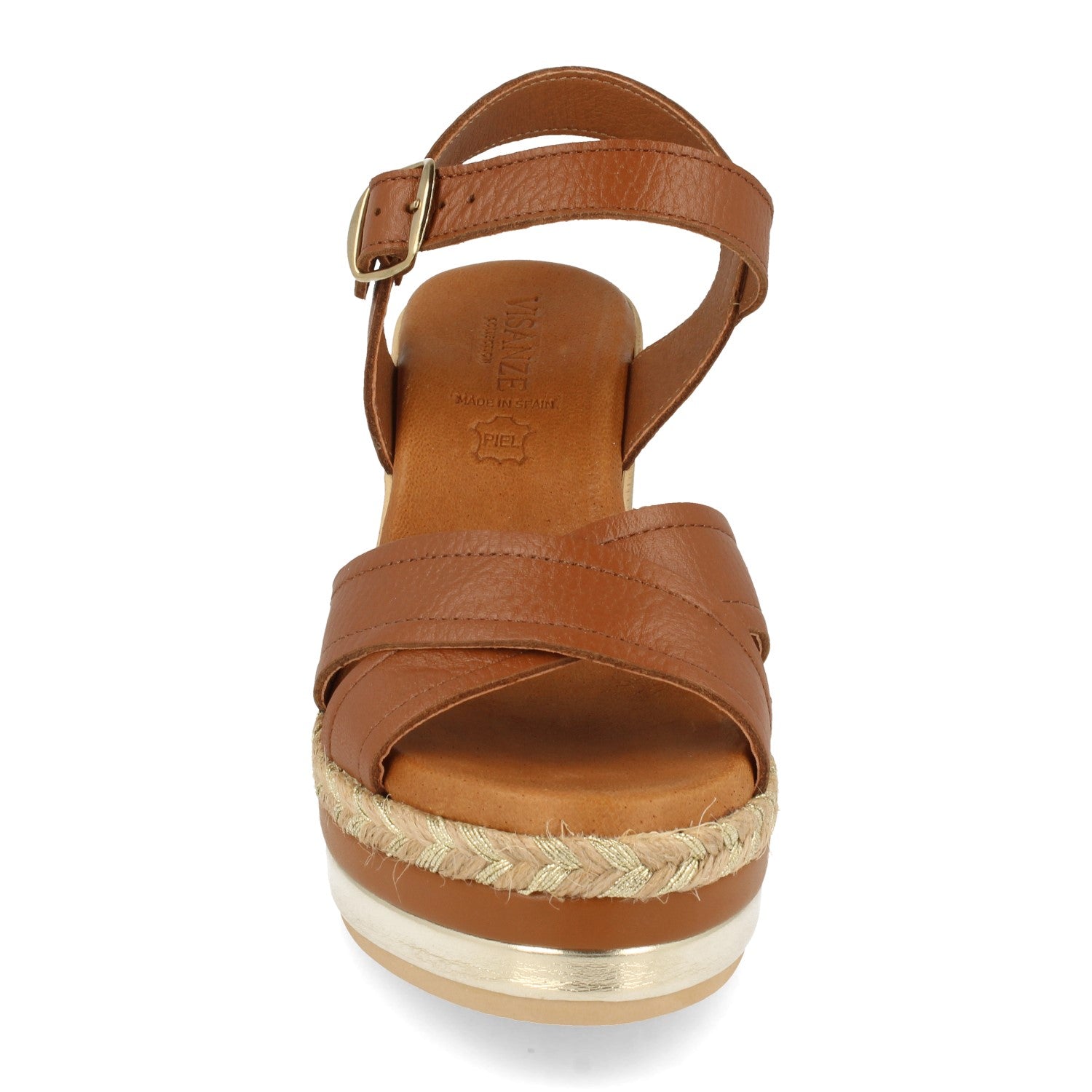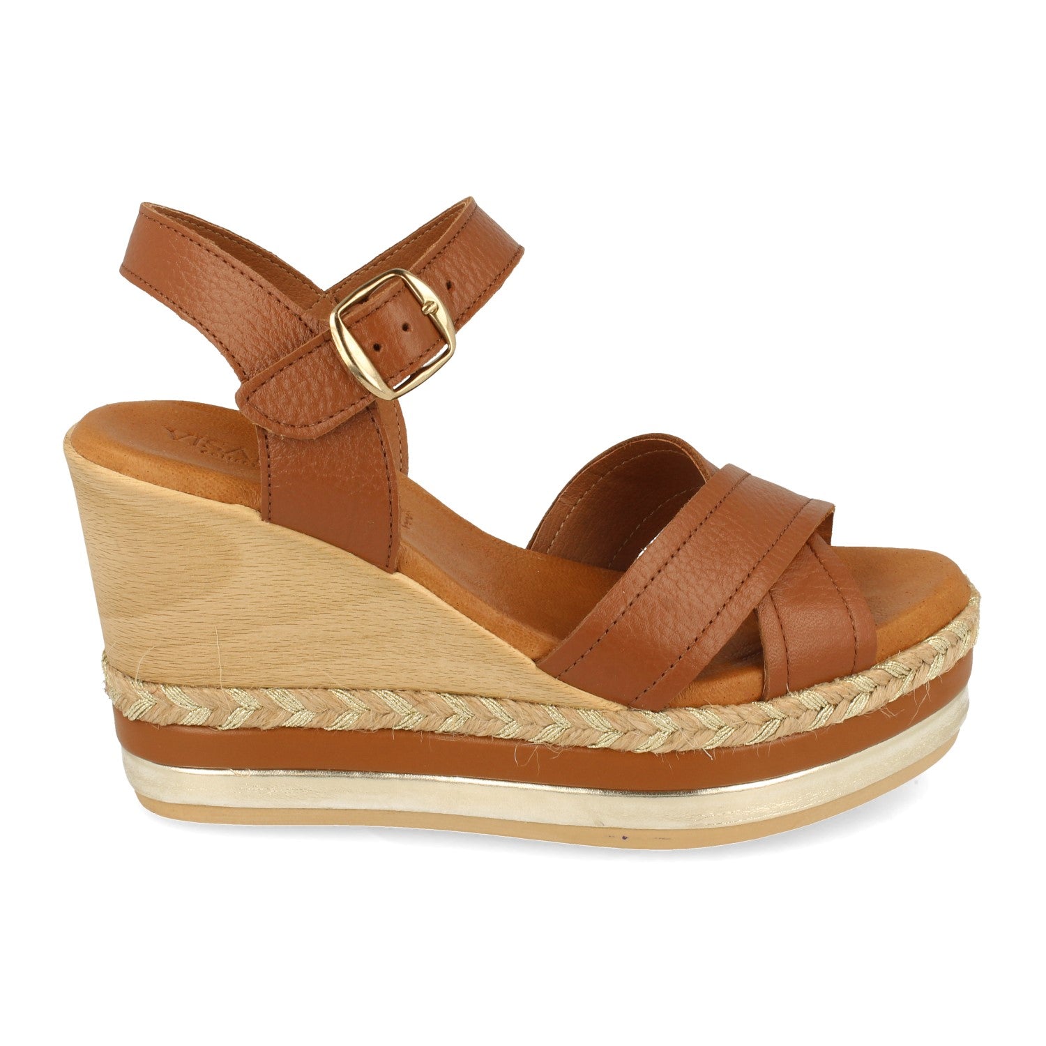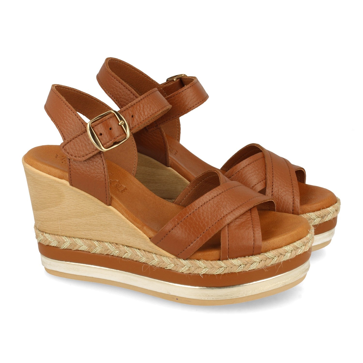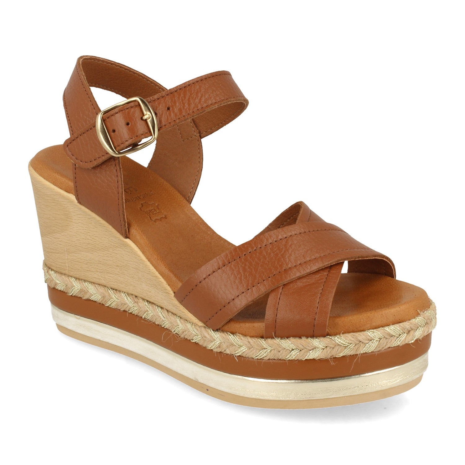 Sandalia de Cuña para Mujer Comodas Forrado Multicolor Palas Cruzadas y Cierre de Hebilla Fabricado con Piel Primavera Verano 2021