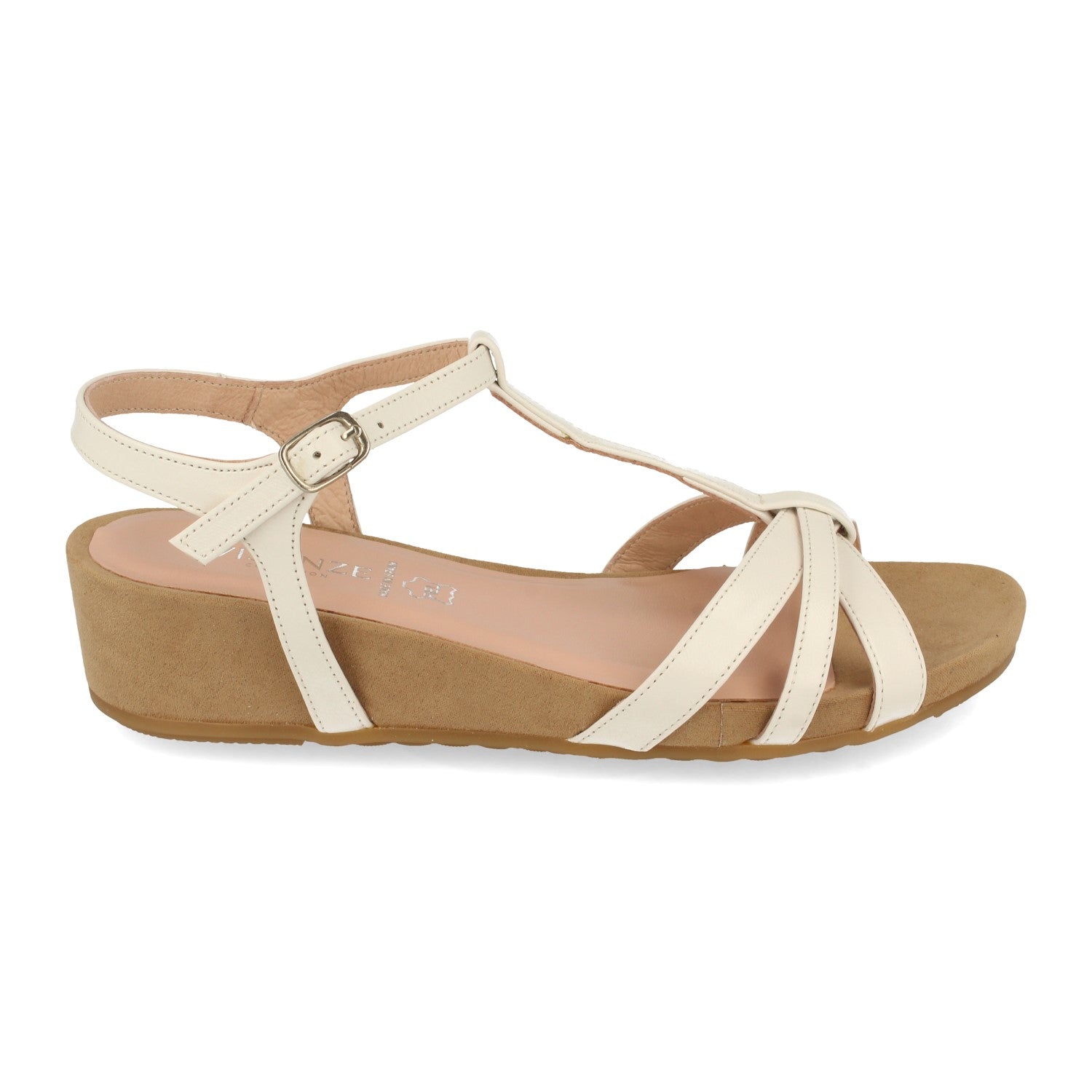 Sandalia de Cuña para Mujer Comodas con Triple Pala Fina y Cierre de Hebilla Fabricado con Piel Primavera Verano 2021