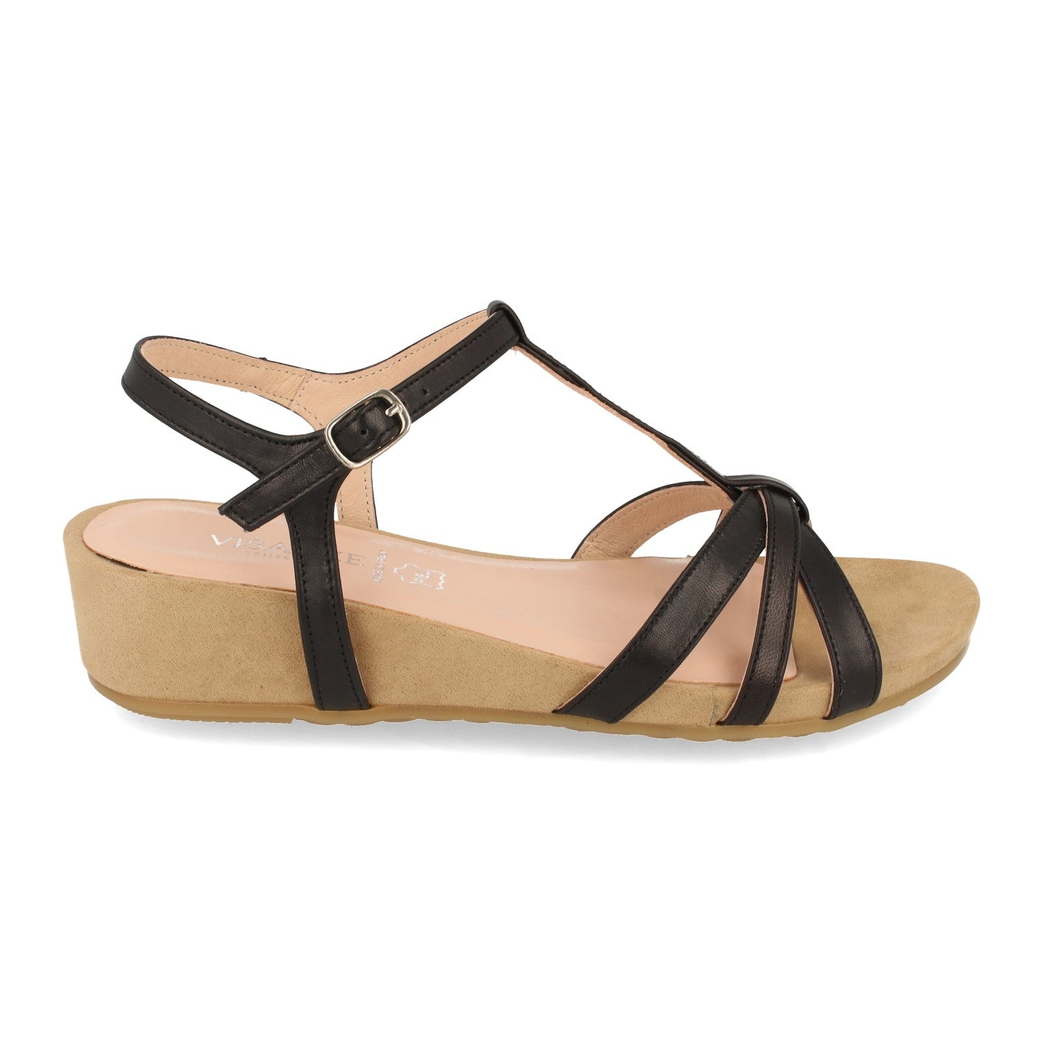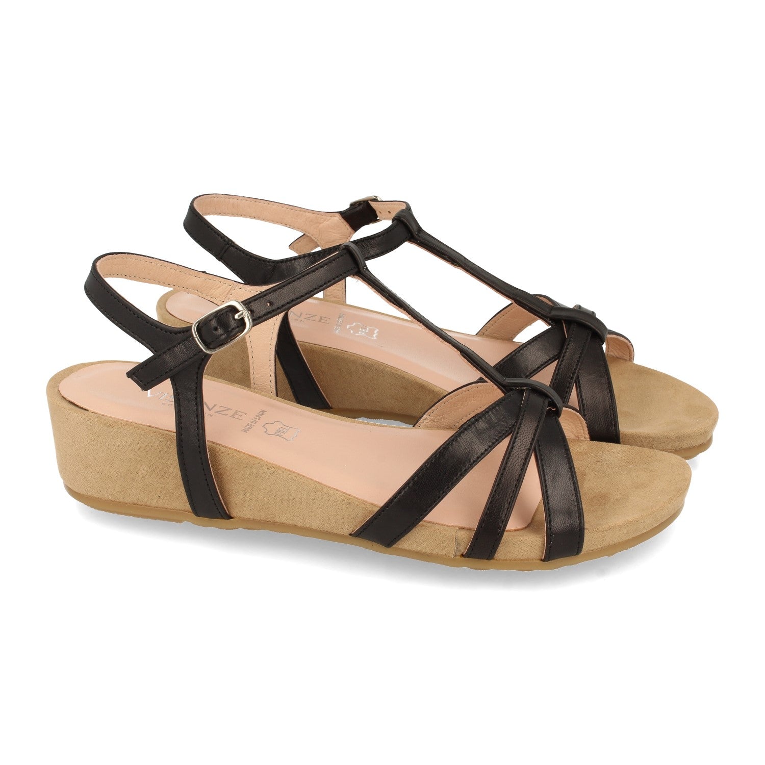 Sandalia de Cuña para Mujer Comodas con Triple Pala Fina y Cierre de Hebilla Fabricado con Piel Primavera Verano 2021