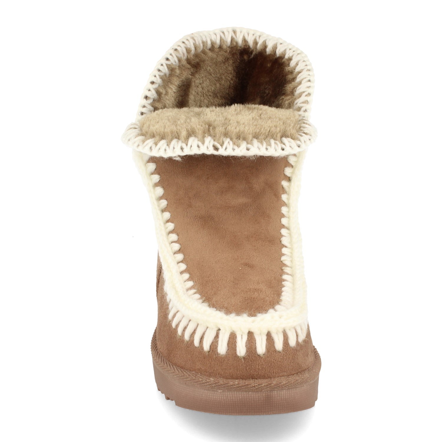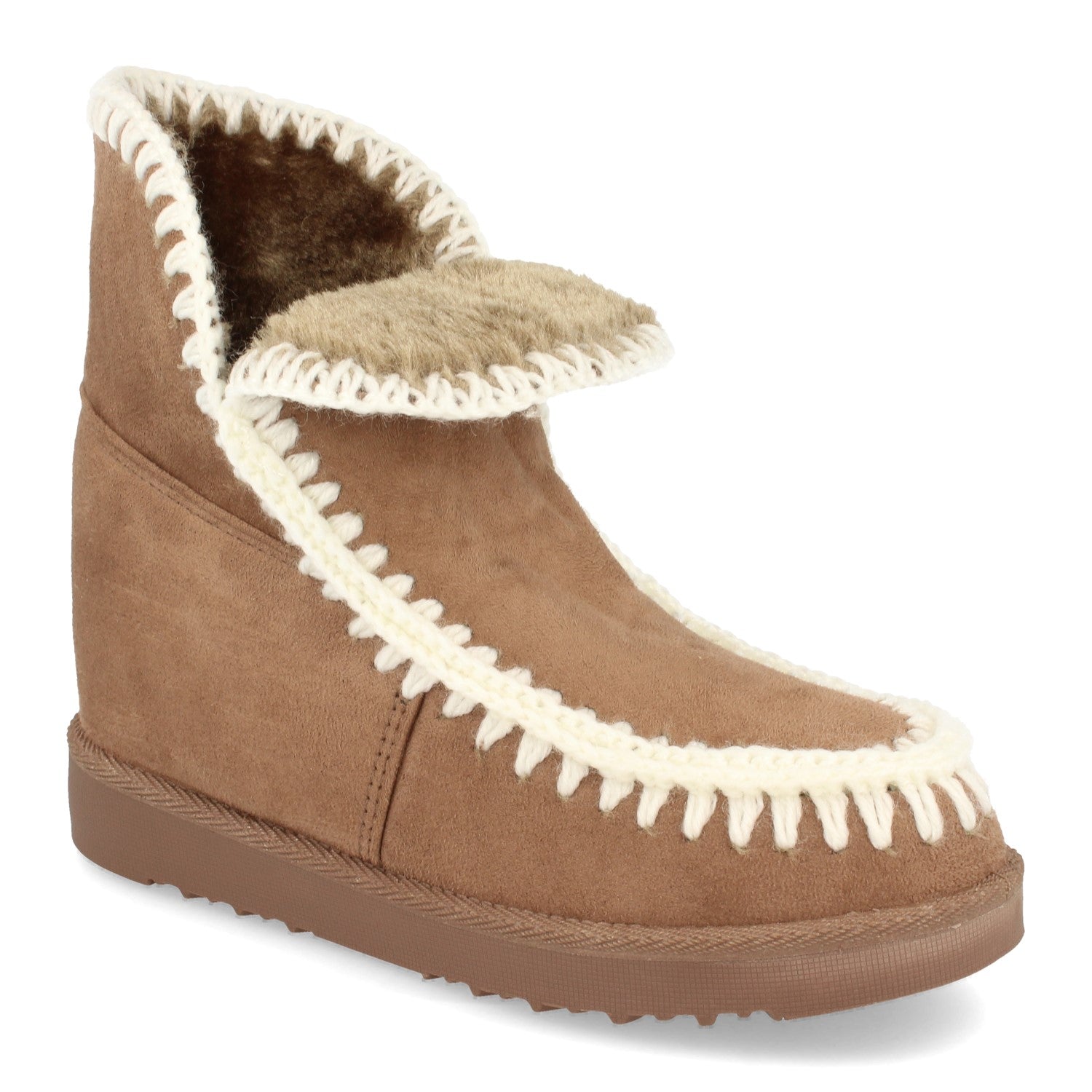 Botín estilo australiano con pespuntes bordados forrados con pelo y cuña interior.