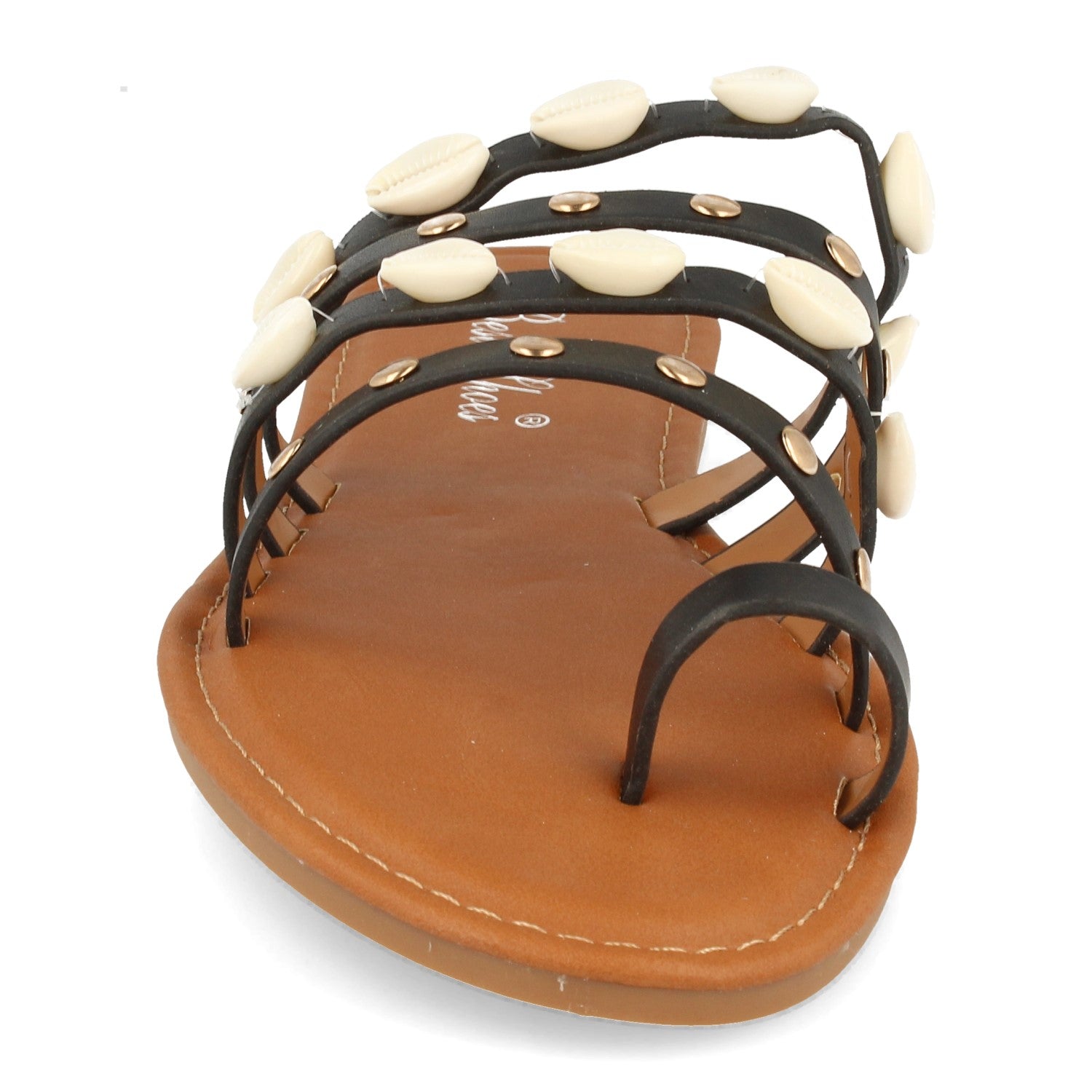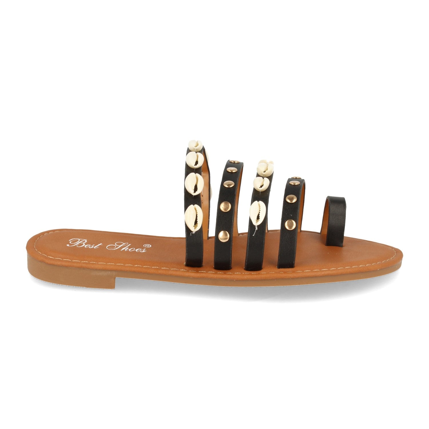 Sandalia Plana de Esclava Estilo Casual Adornado con Conchas Talon Abierto Primavera Verano 2020