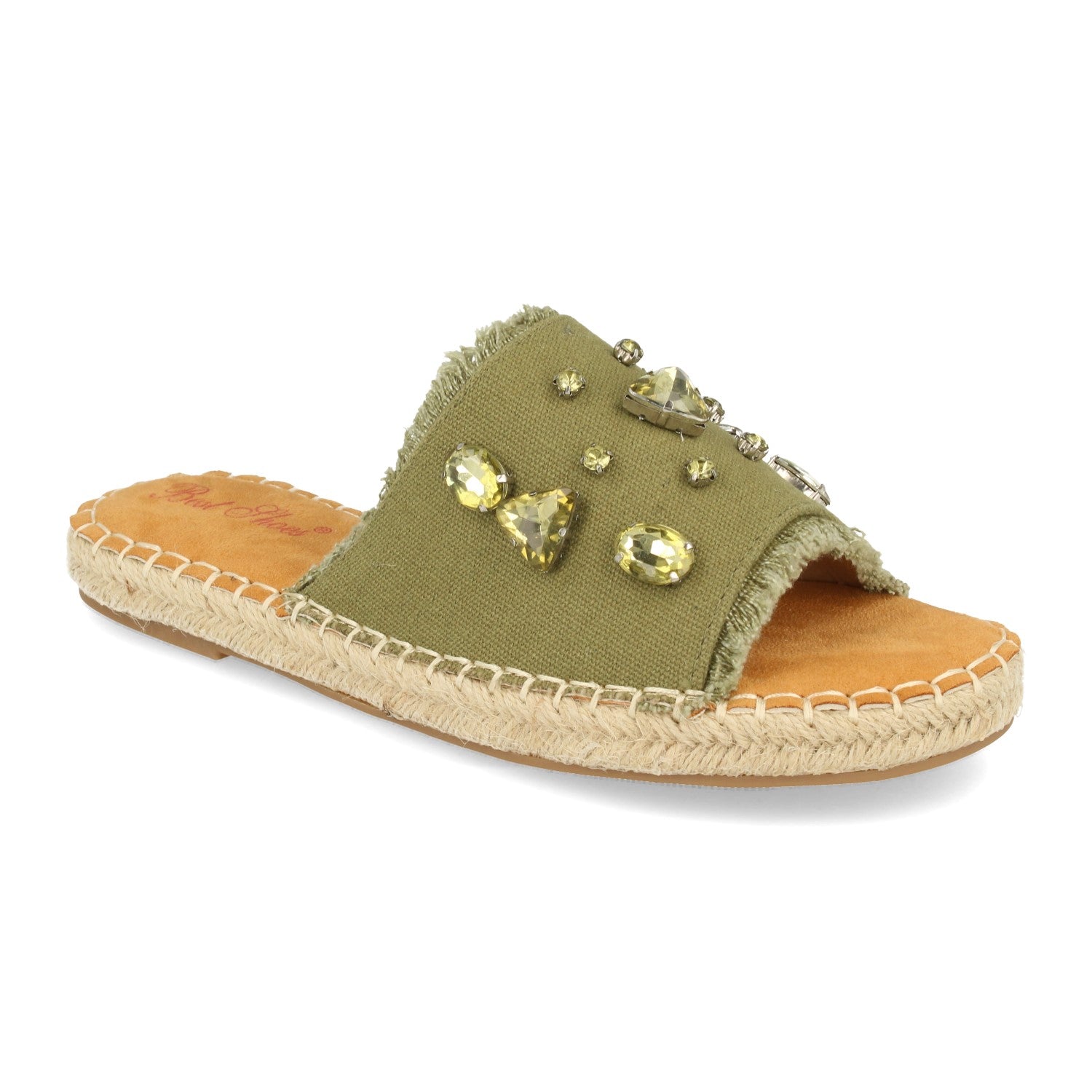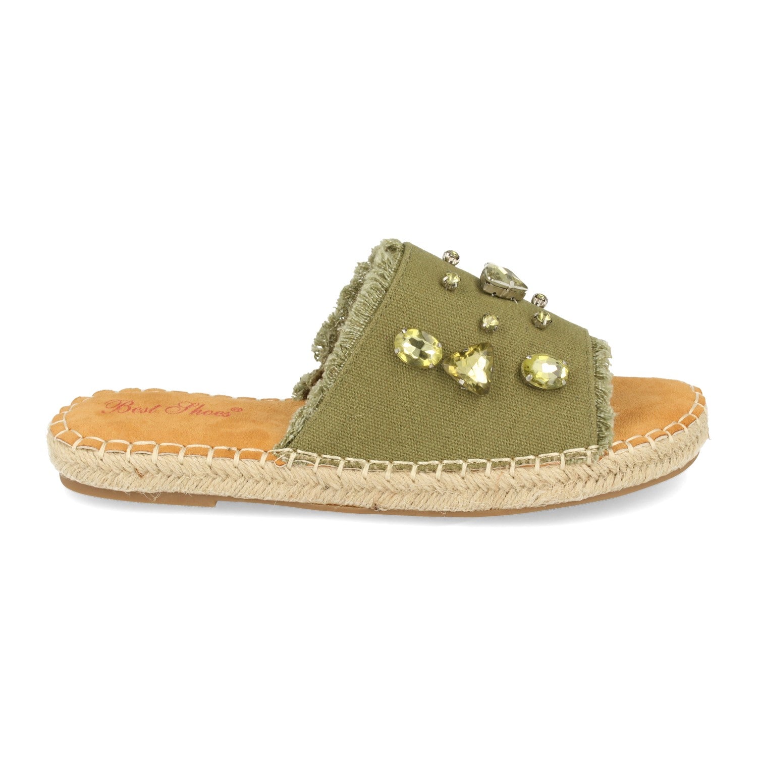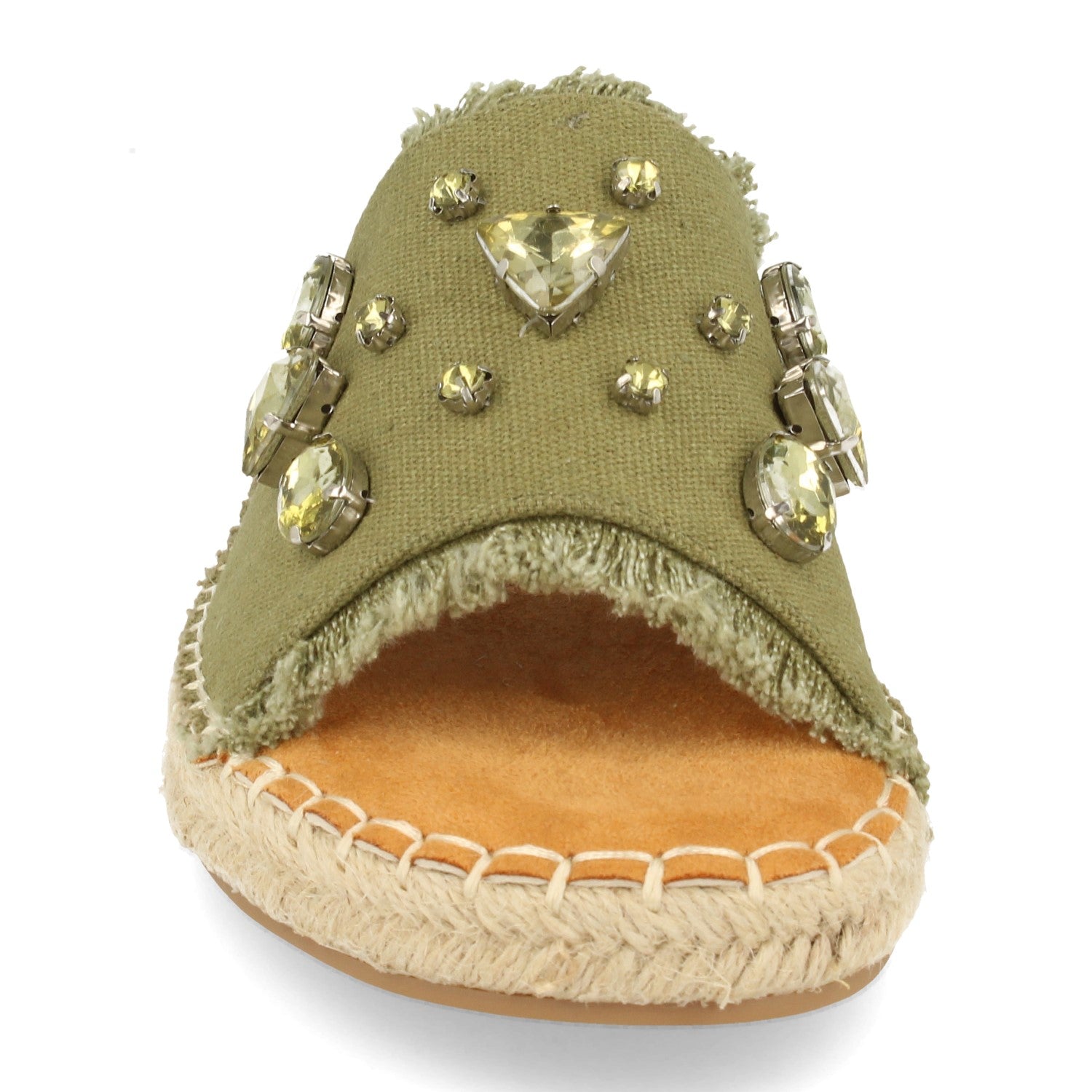 Sandalia Plana de Mujer con Adornos Cristalizados en Pala Yute Primavera Verano 2020