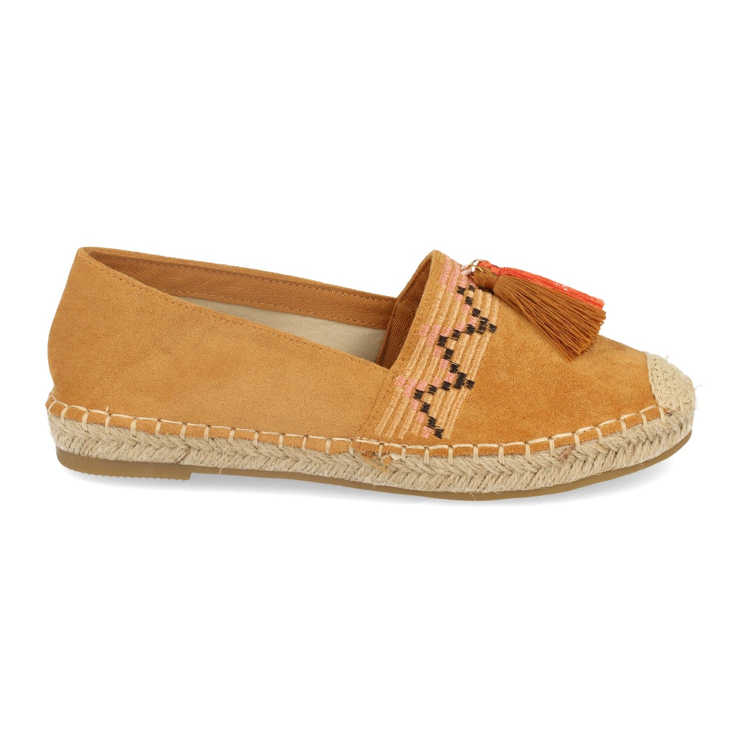 Alpargata Plana con Yute para Mujer Adorno Cosido Borlas Puntera Crochet y Piso de Crepelina Primavera Verano 2020