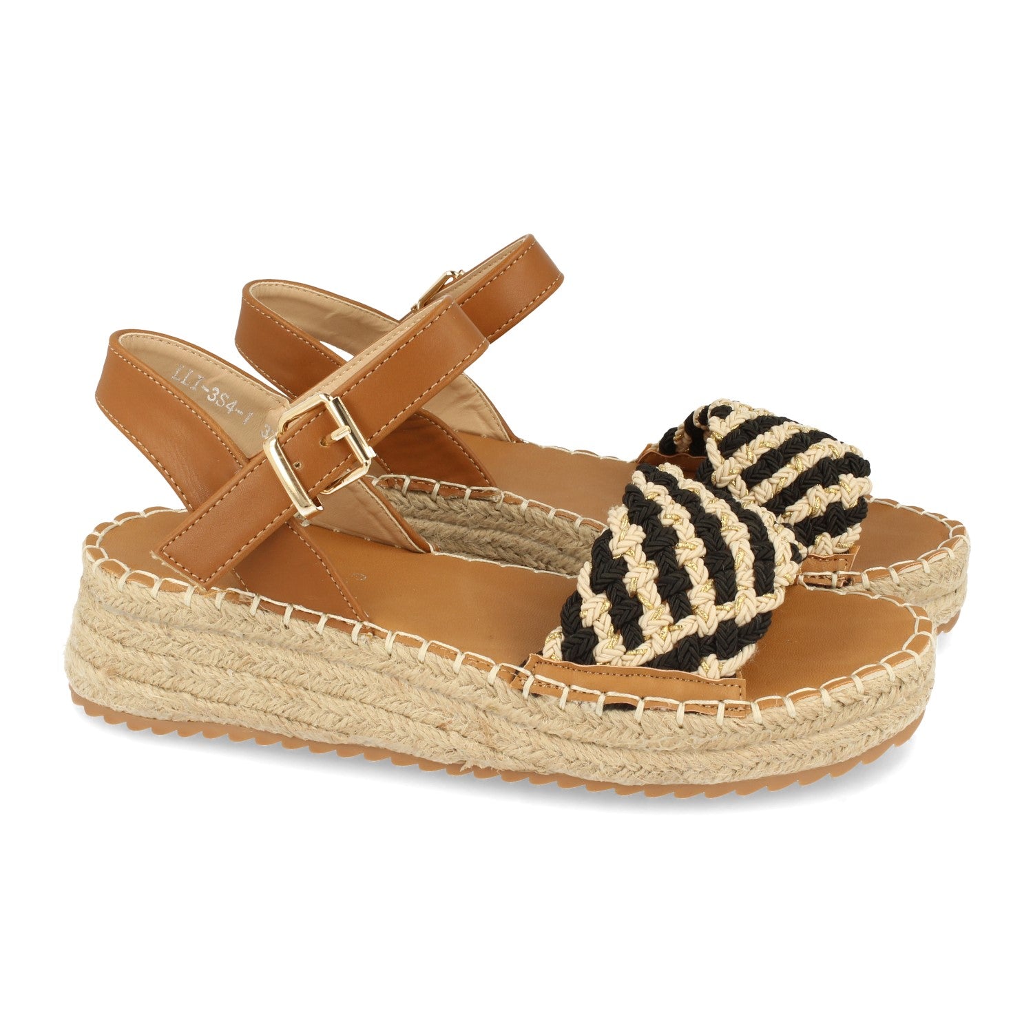 Sandalia Plana de Mujer Forrado de Yute Estilo Casual con Pala de Rafia Trenzada y Cierre de Hebilla Primavera Verano 2021