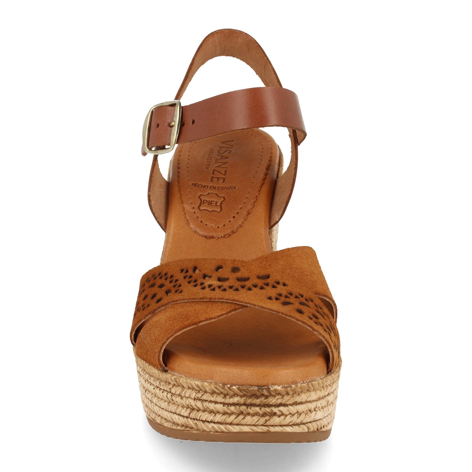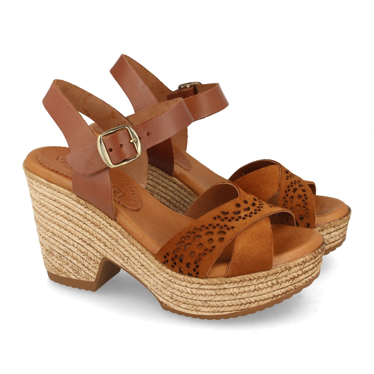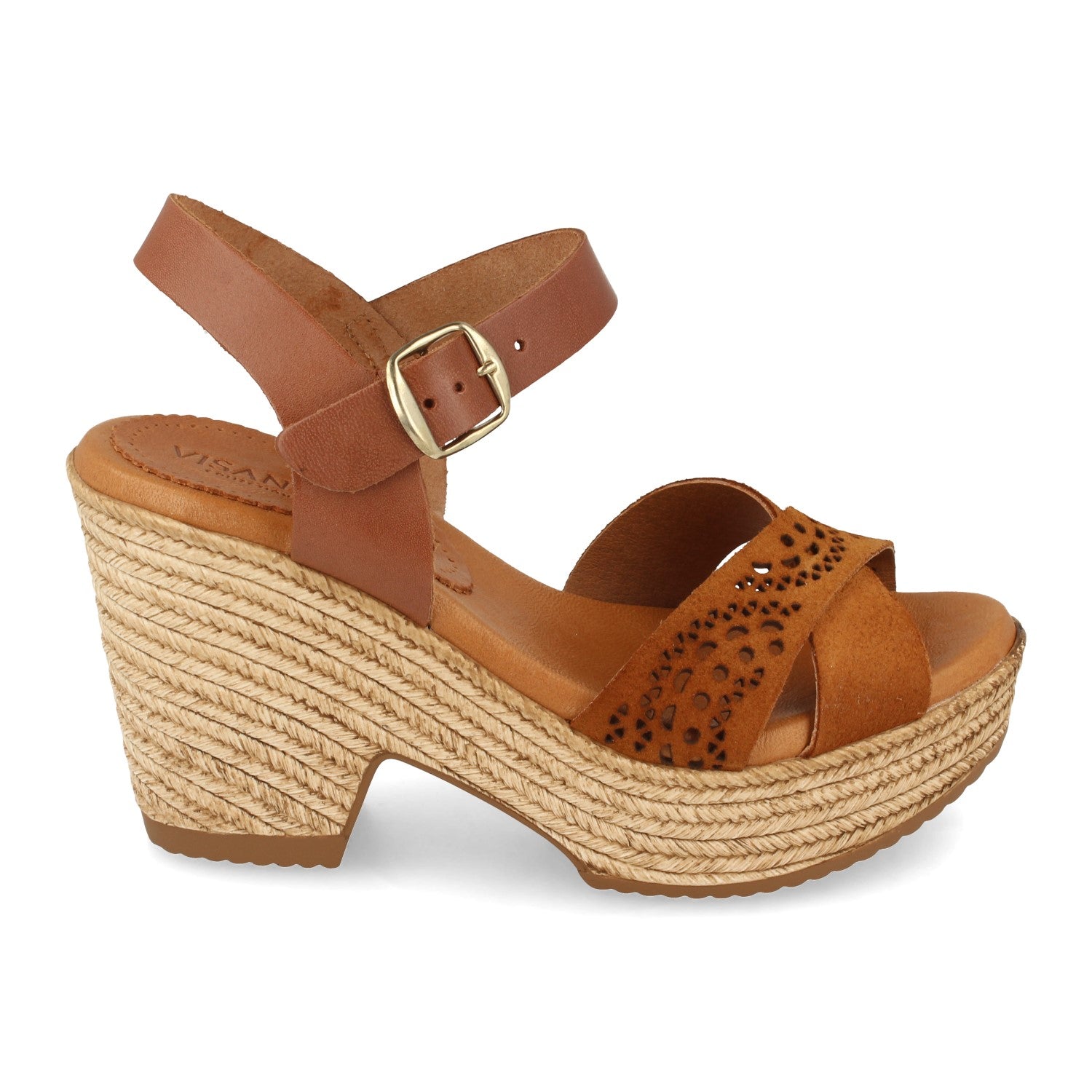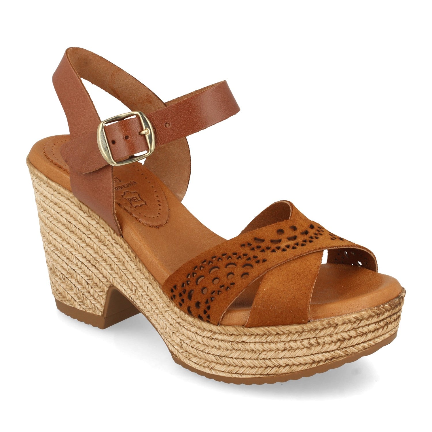 Sandalia de Tacón para Mujer Comodas Palas Cruzadas con Calados y Cierre de Hebilla Fabricado con Piel Primavera Verano 2021