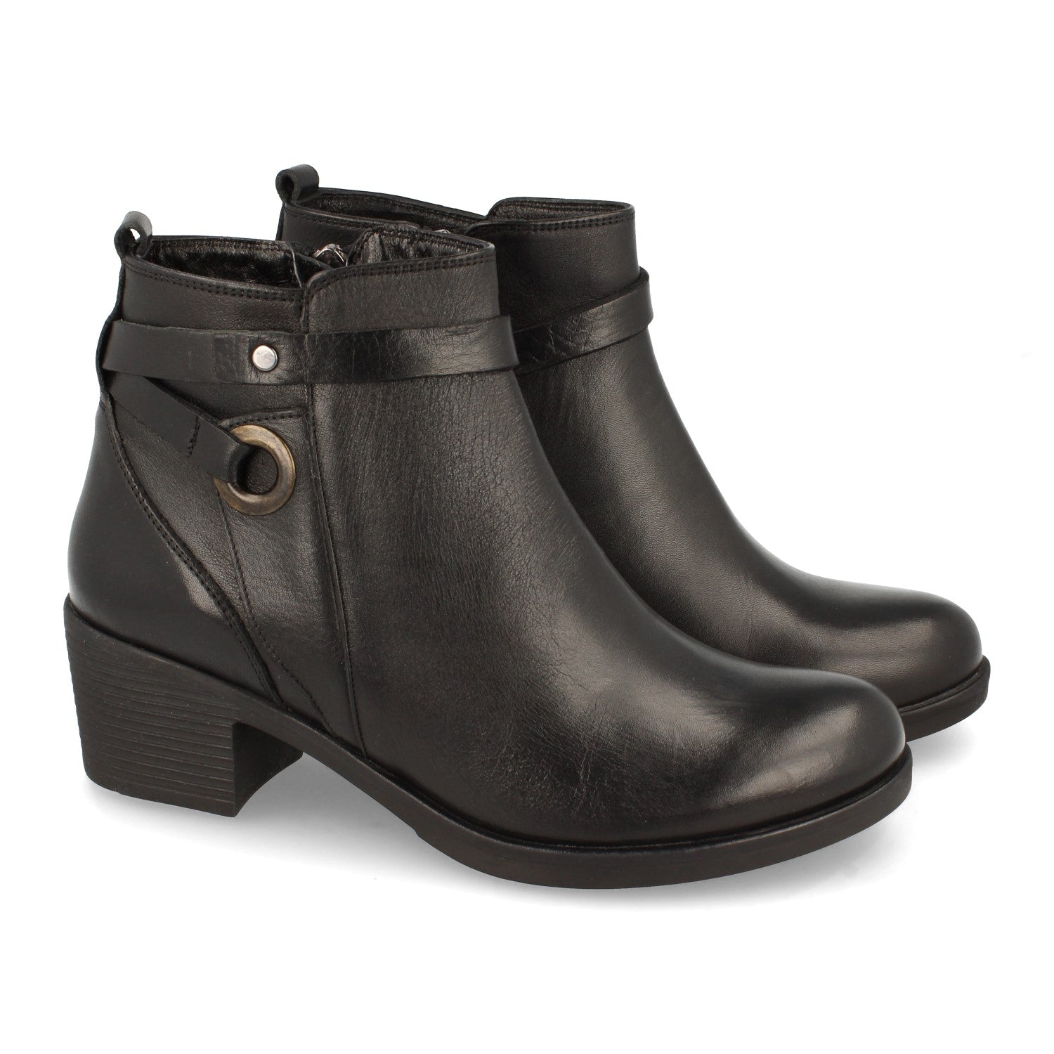 Botín de Mujer con Tacón Fabricado en Piel Detalle Metalico y Tira Cierre de Cremallera Otoño Invierno 2020