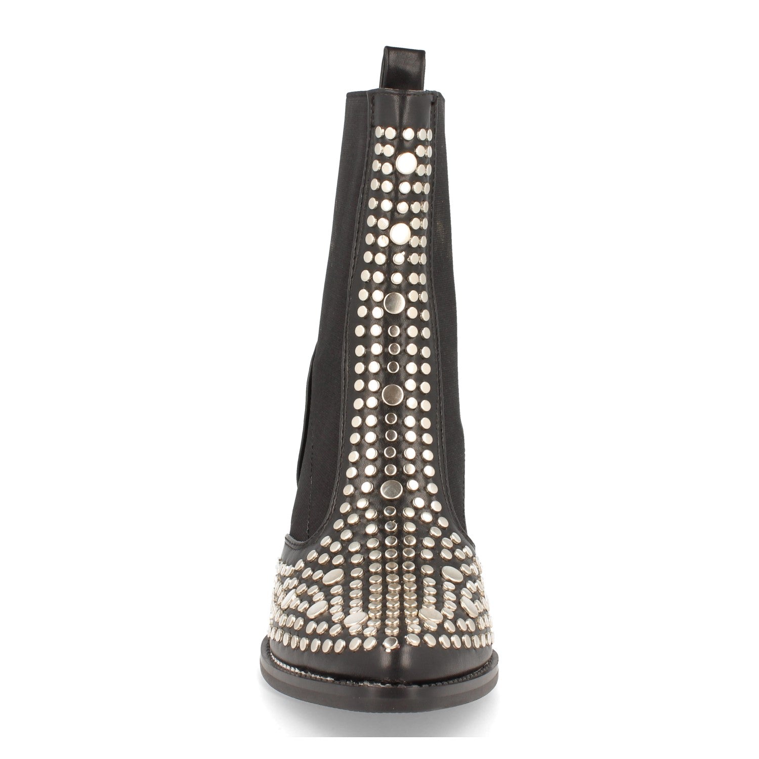 Botin de Mujer con Tacon y Elastico en el Tobillo de Punta Fina Adornado con Tachuelas Metalicas Otoño Invierno 2020