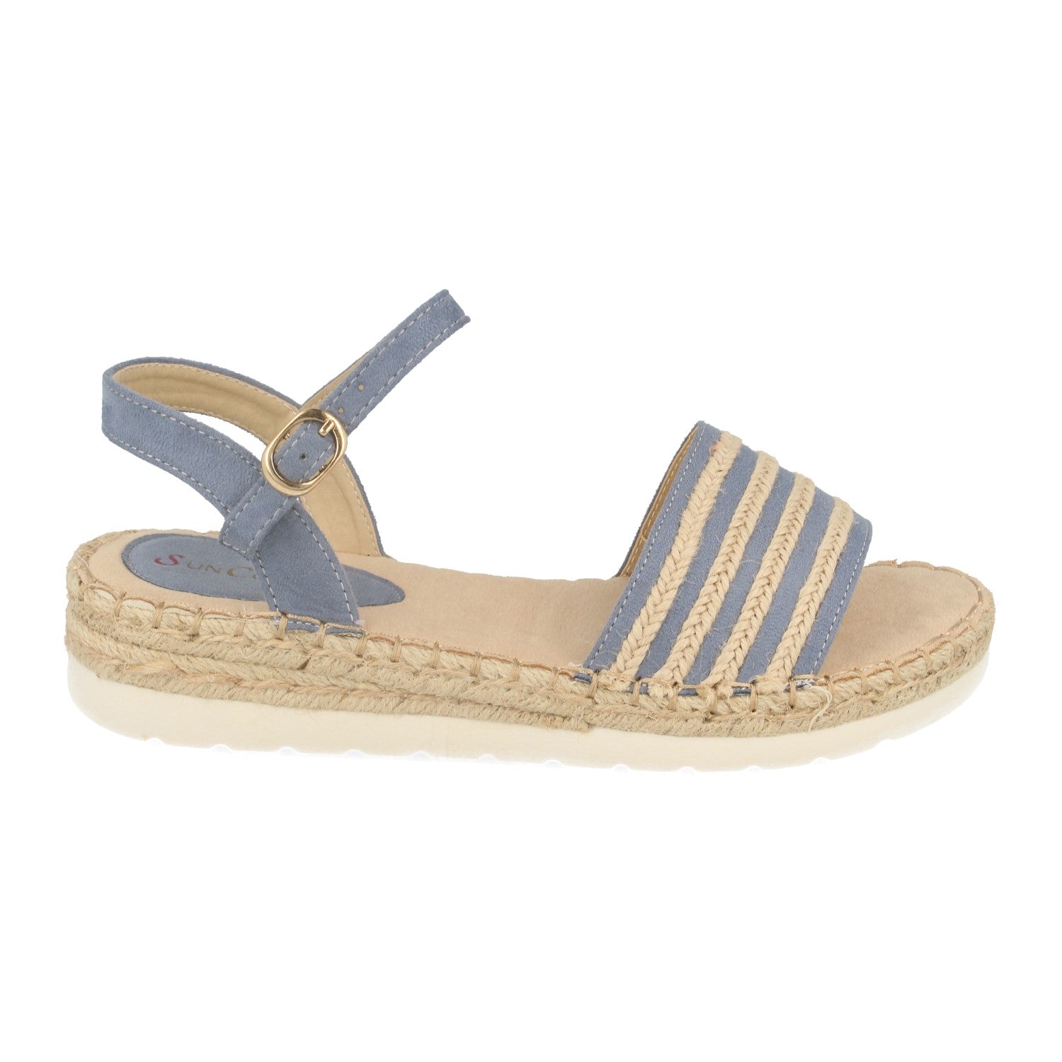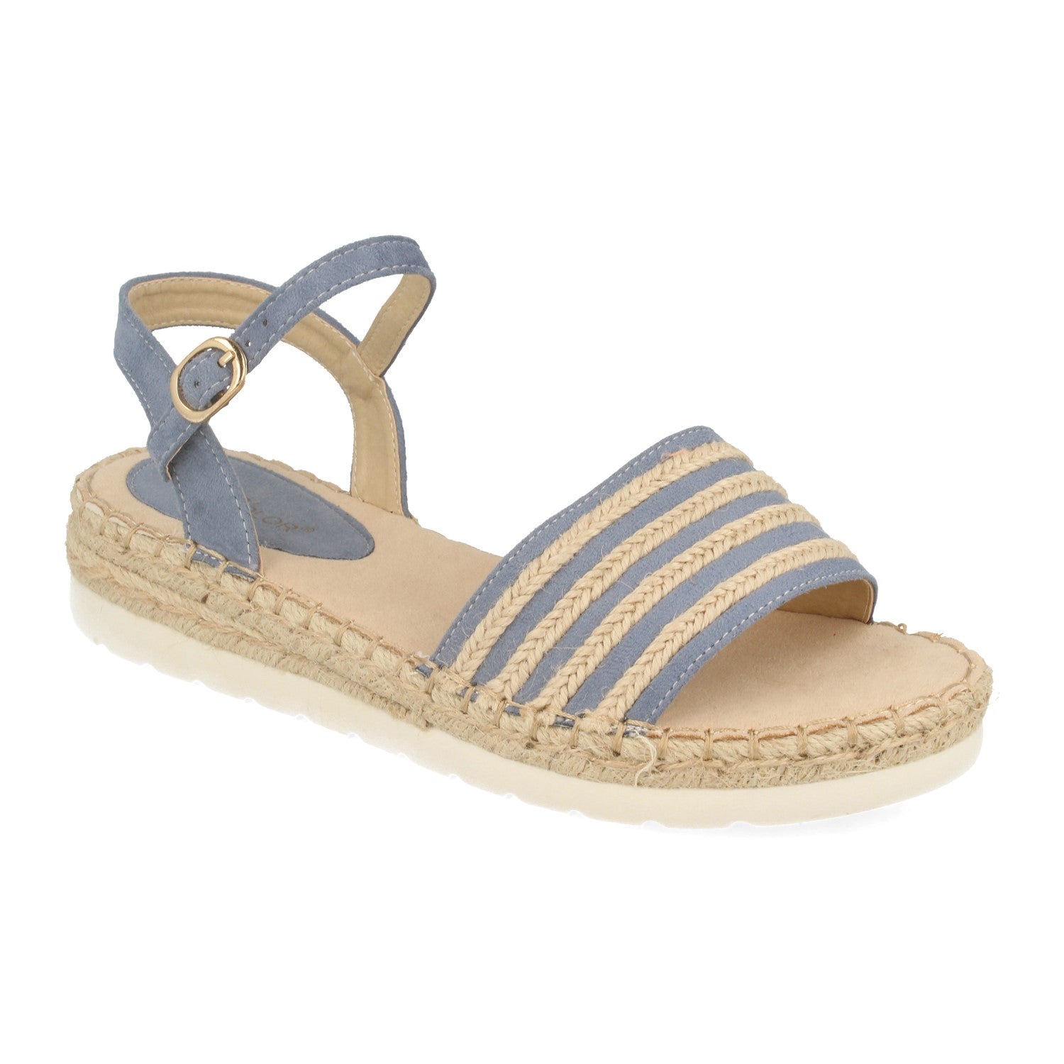 Sandalia Plana con Mini Cuña Estilo Ankle Strap Pala con Tiras de Yute y Cierre de Hebilla Primavera Verano 2020