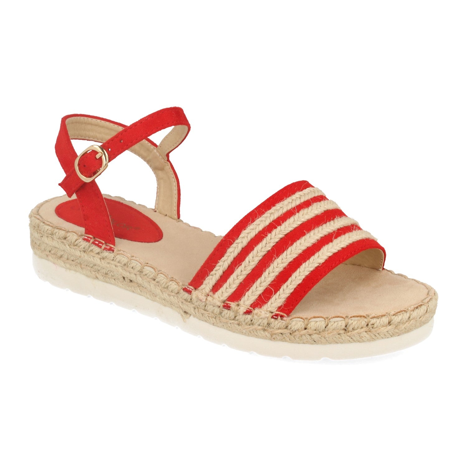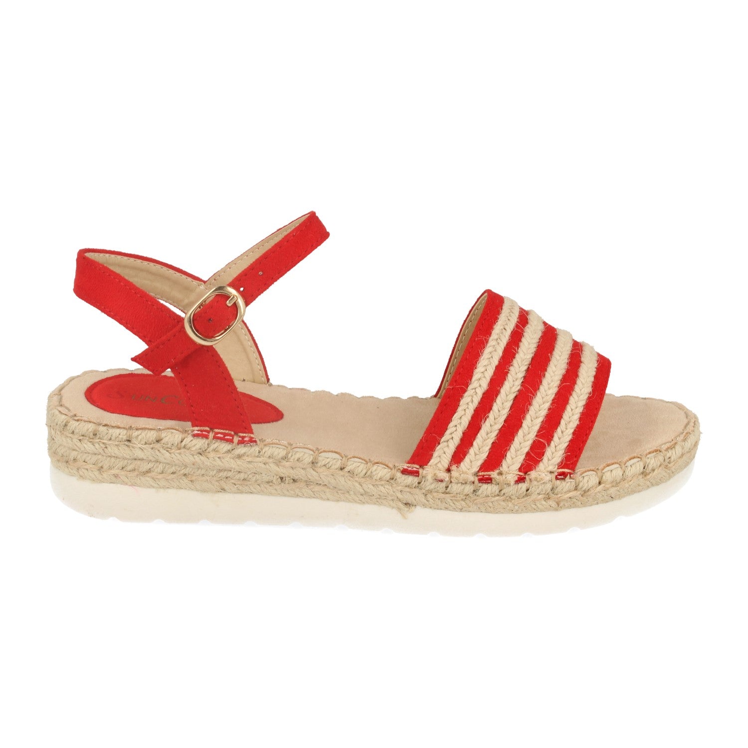 Sandalia Plana con Mini Cuña Estilo Ankle Strap Pala con Tiras de Yute y Cierre de Hebilla Primavera Verano 2020