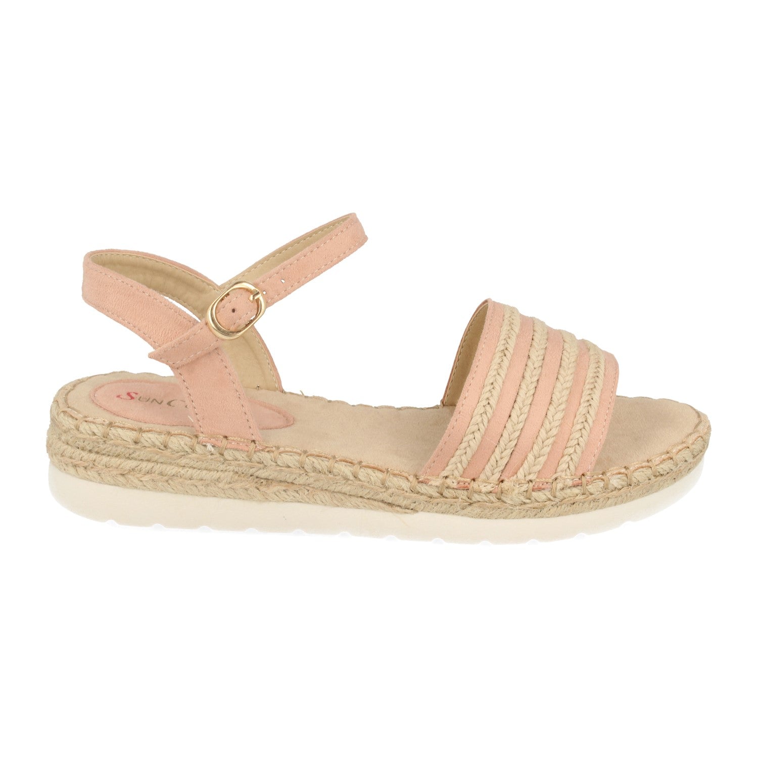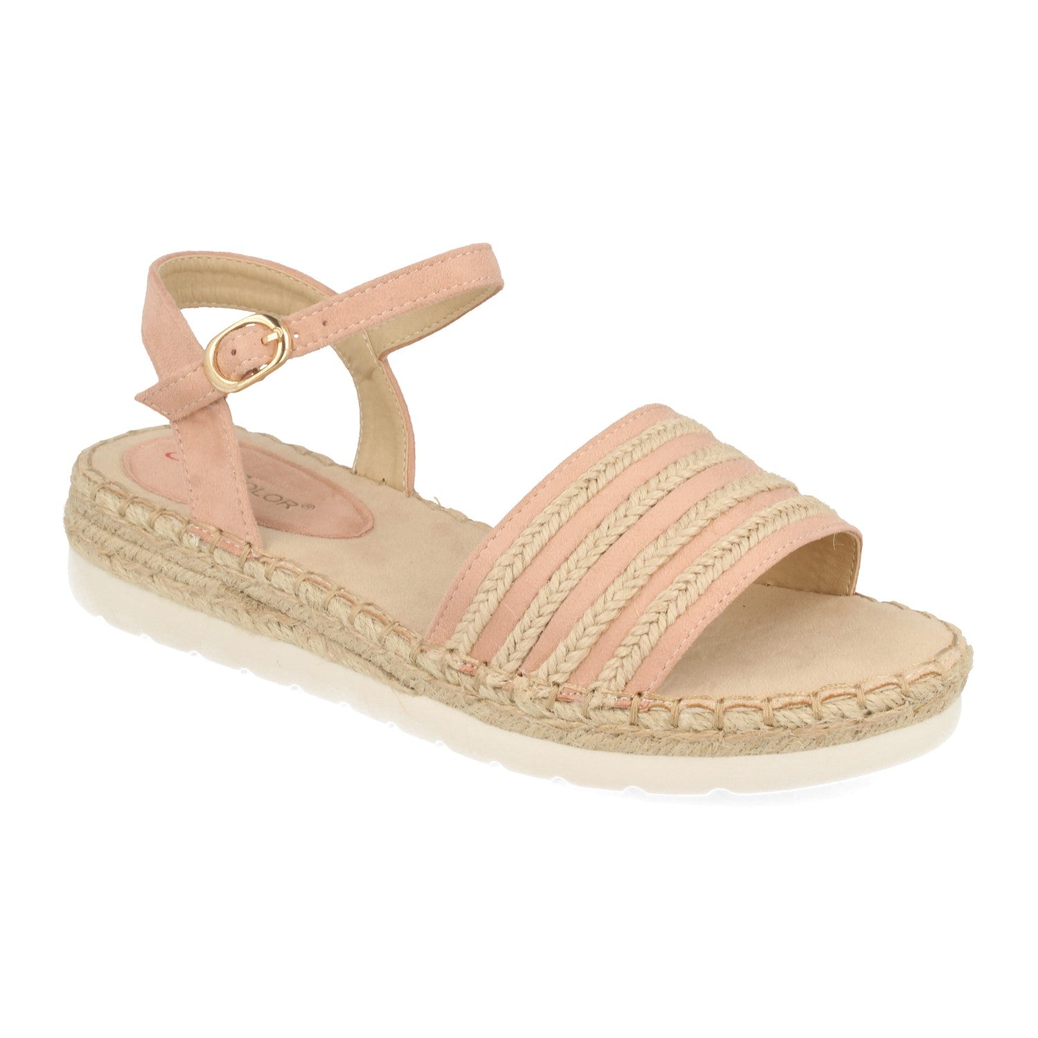 Sandalia Plana con Mini Cuña Estilo Ankle Strap Pala con Tiras de Yute y Cierre de Hebilla Primavera Verano 2020