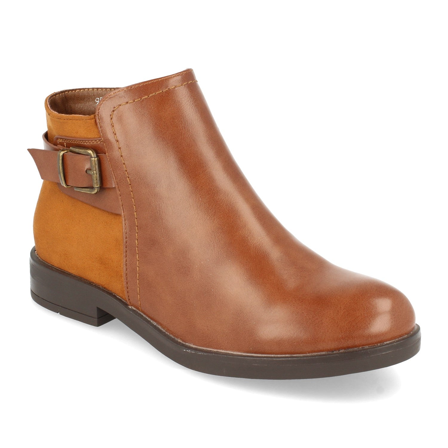 Botín Plano de Mujer Decorado con Hebilla Estampado Liso y Cierre de Cremallera Otoño Invierno 2020