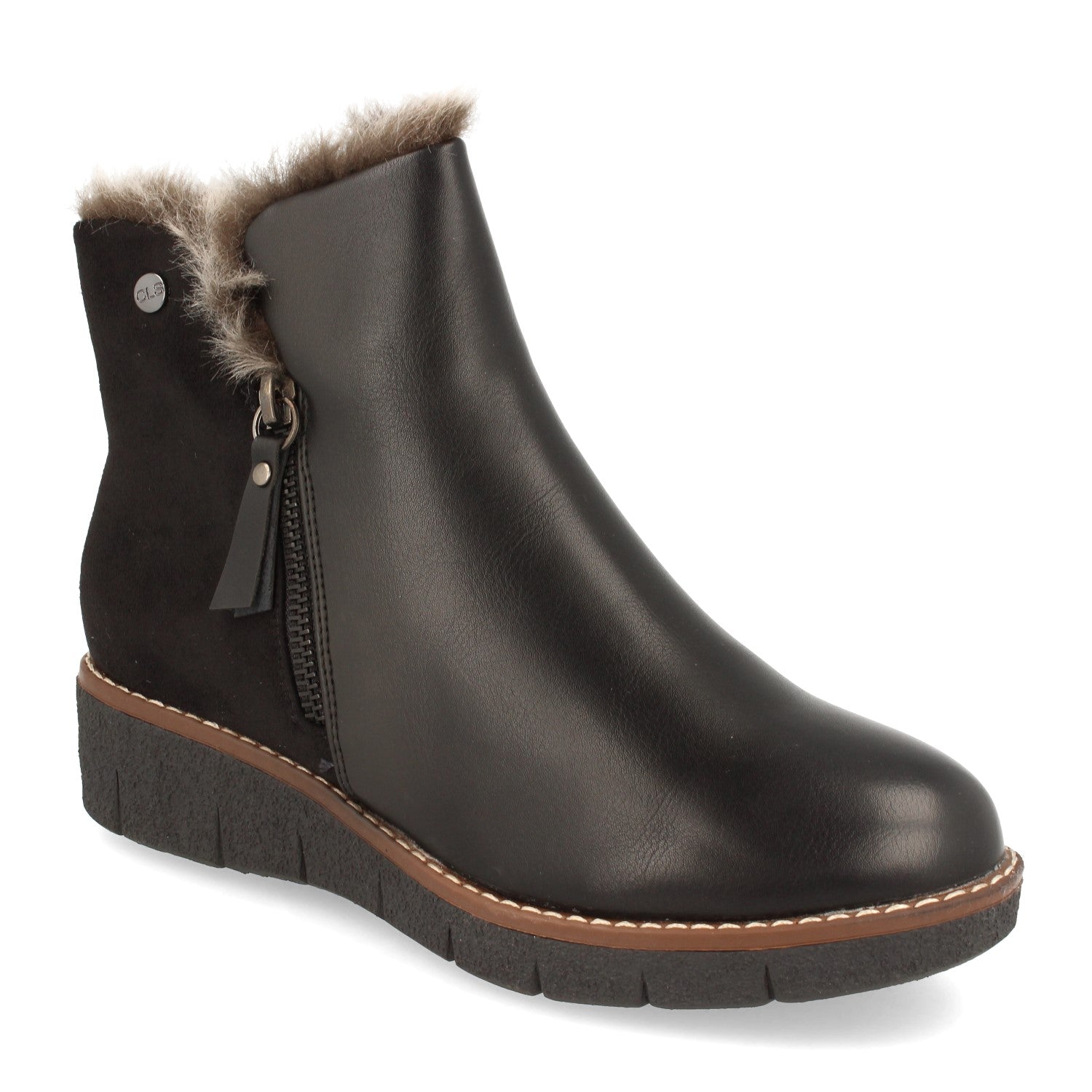Botin de Mujer con Cuña Baja Forrado de Pelo en el Interior y Cierre de Cremallera Otoño Invierno 2020