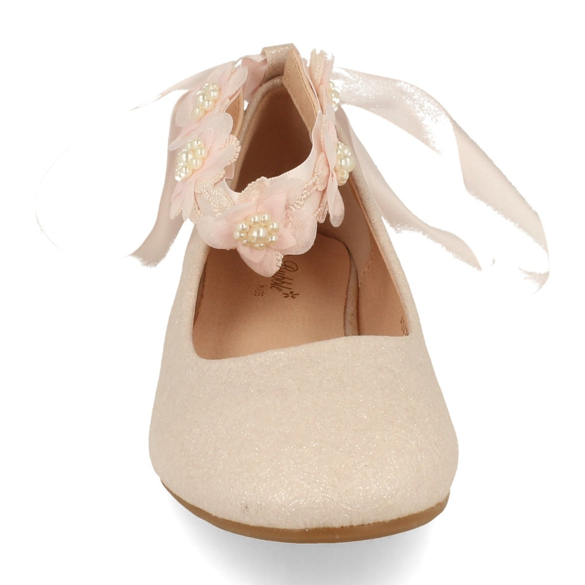 Sandalia Plana de Comunión para Niña Estilo Bailarina Decorada con Lazo y Flores Otoño Invierno 2020