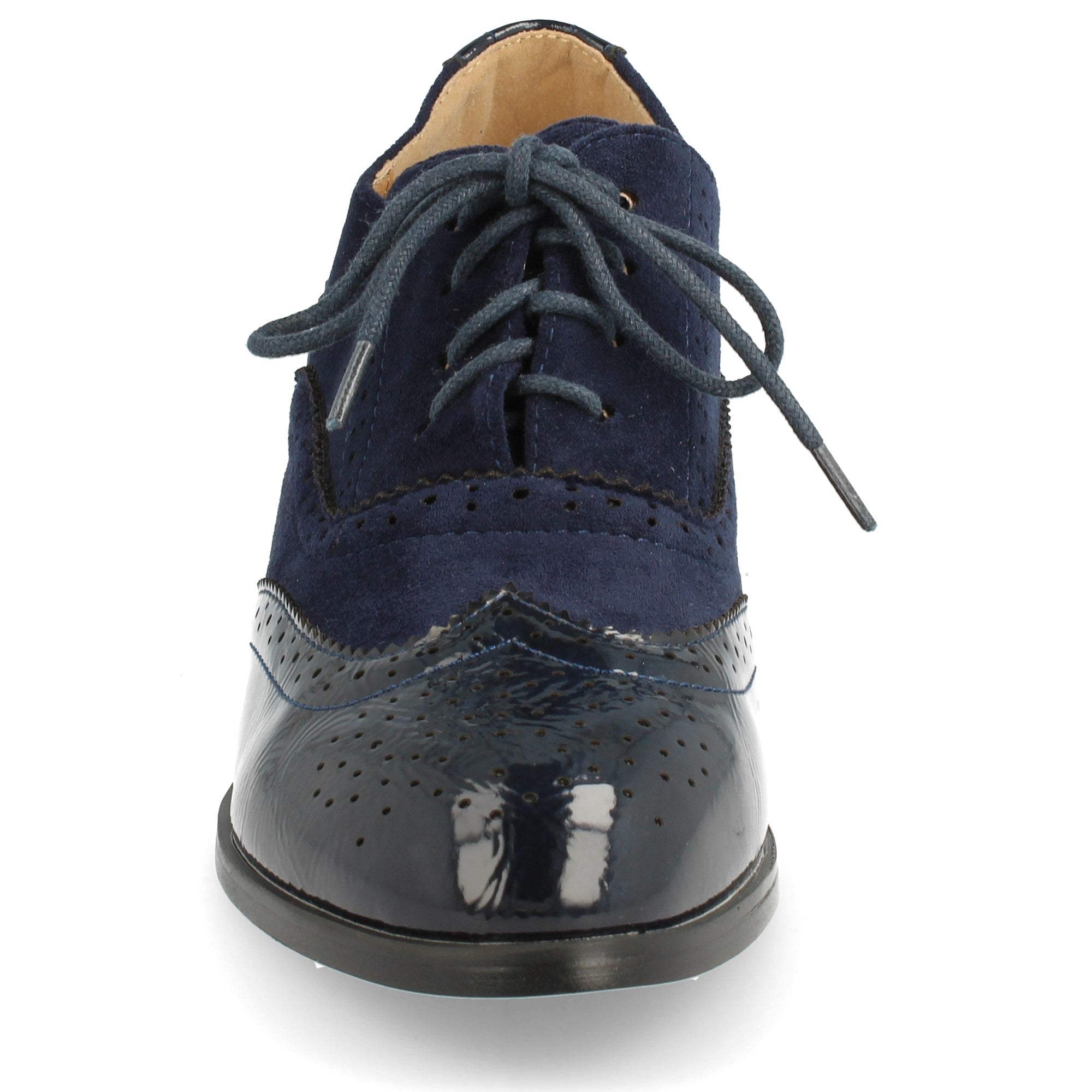 Zapato de tacón cuadrado con cordones redondos y patrón calado tipo oxford. Altura del tacón: 6 cm.